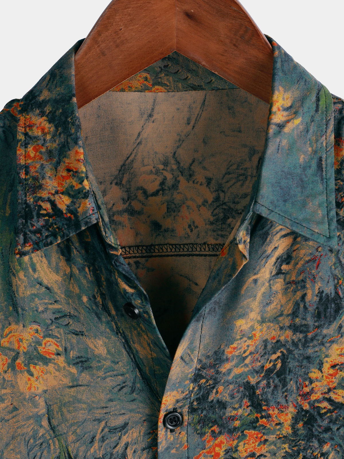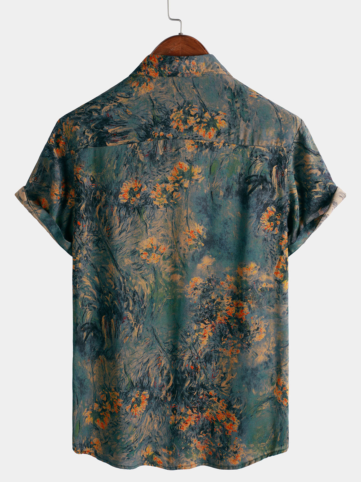 Men's Floral Print Vintage Holiday Breathable Hawaiian Short Sleeve Shirt