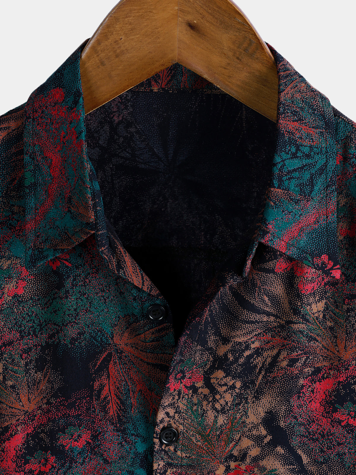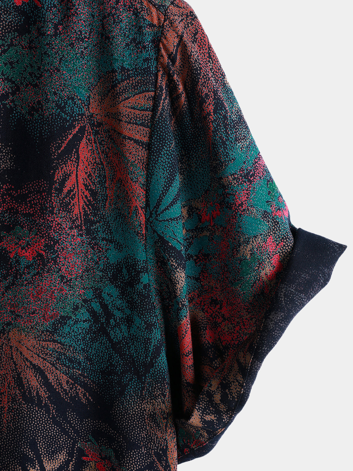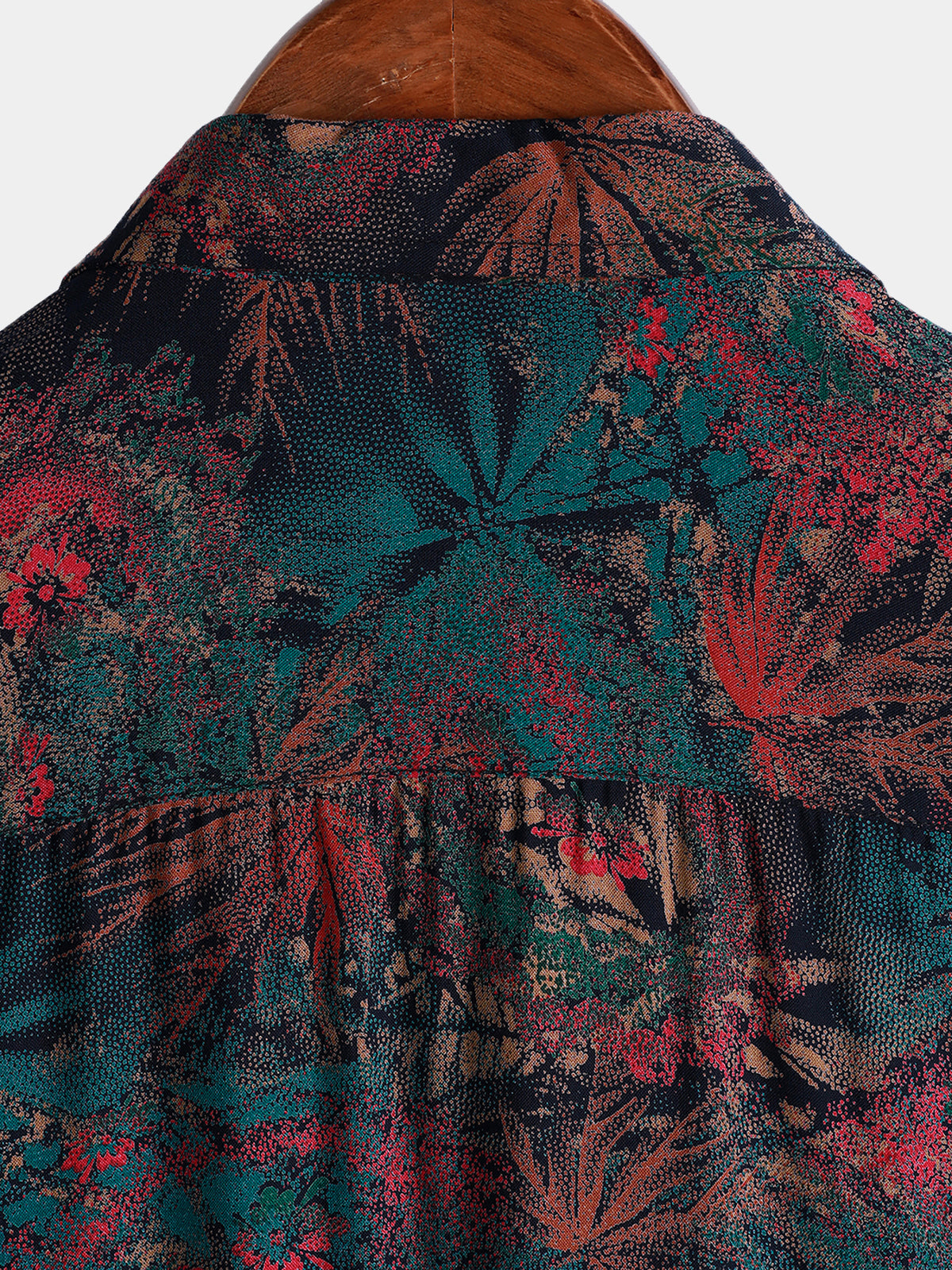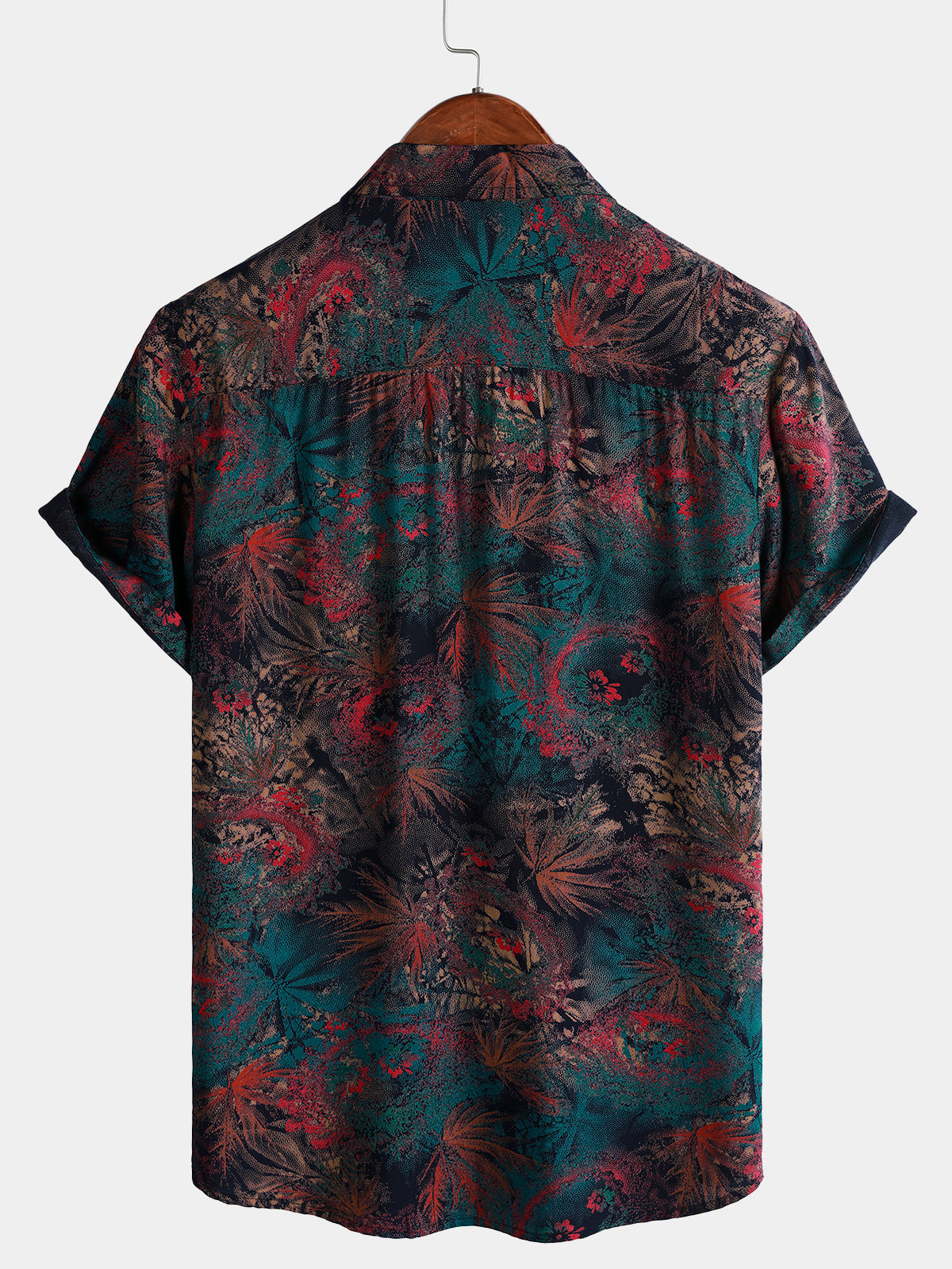 Men's Watercolor Botanical Leaf Print Resort Short Sleeve Shirt