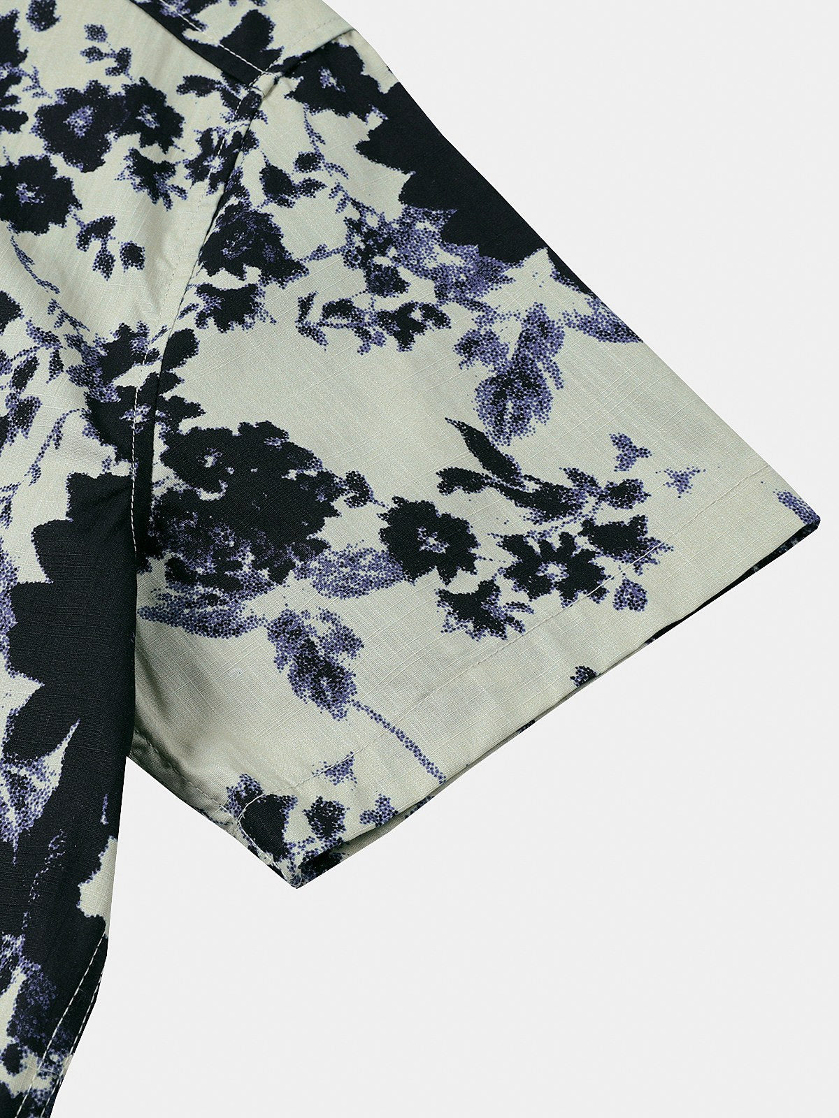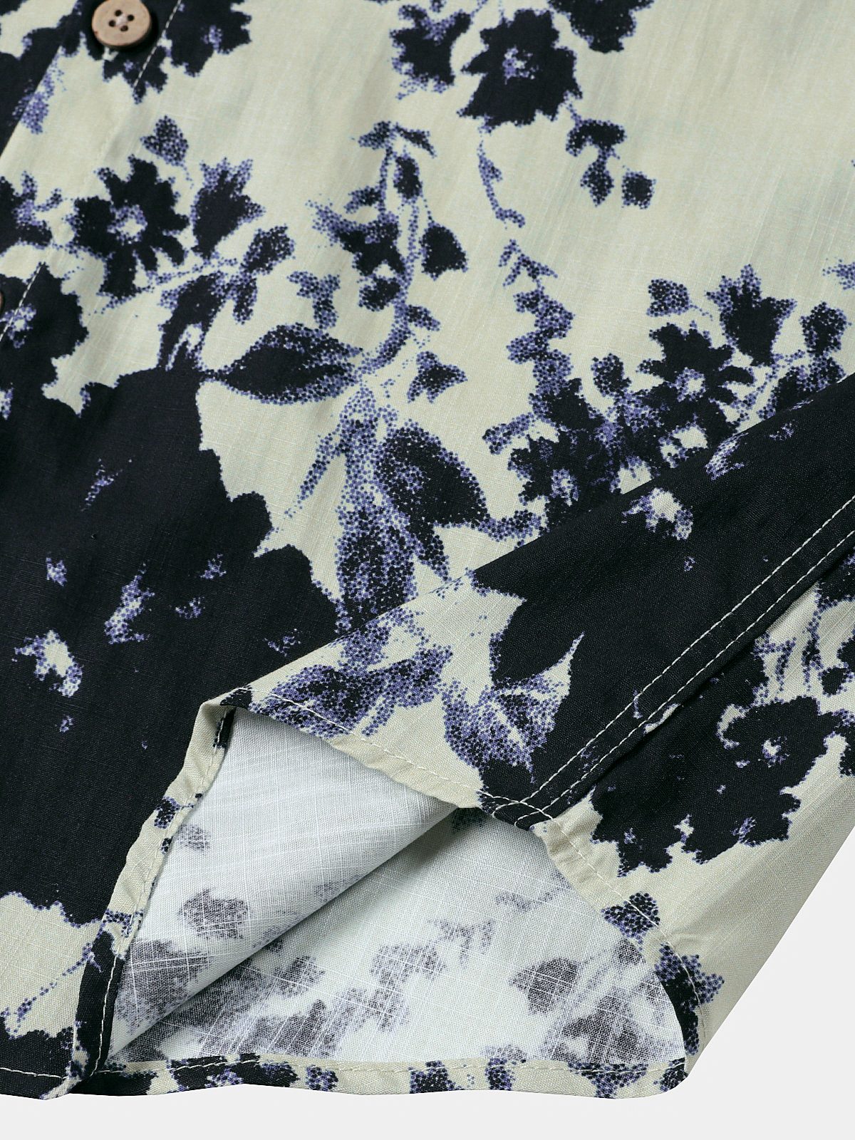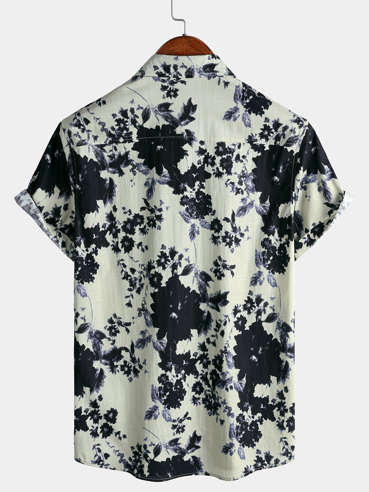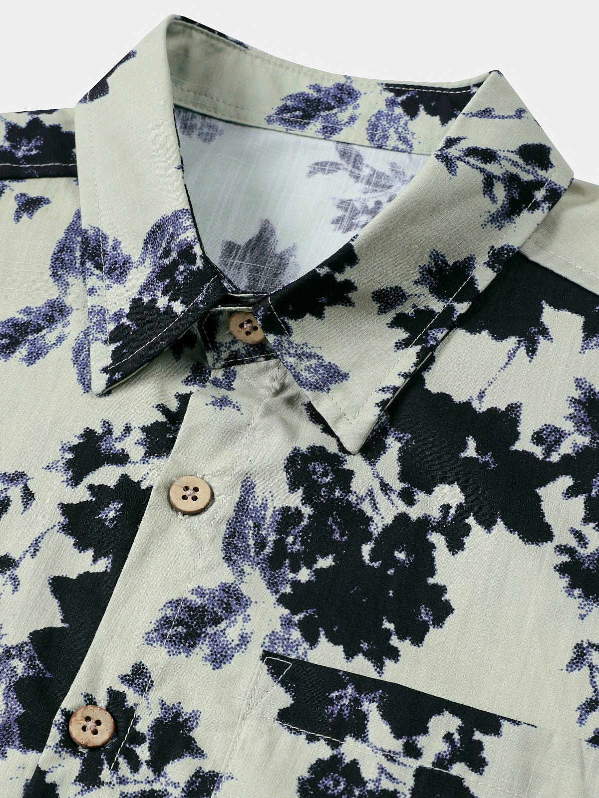 Men's Watercolor Botanical Leaf Print Resort Short Sleeve Shirt