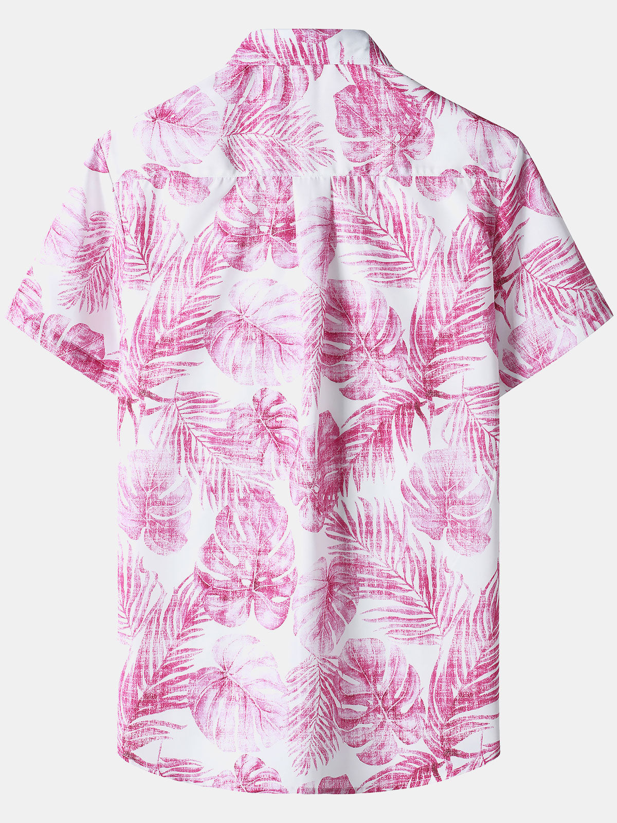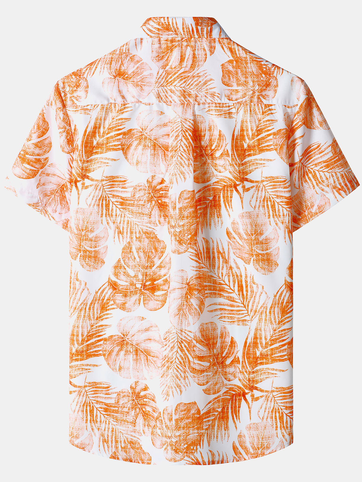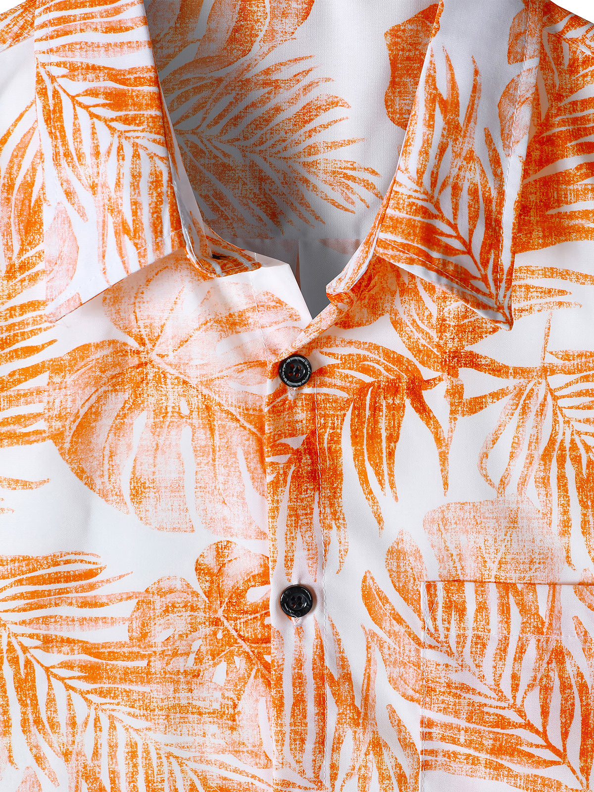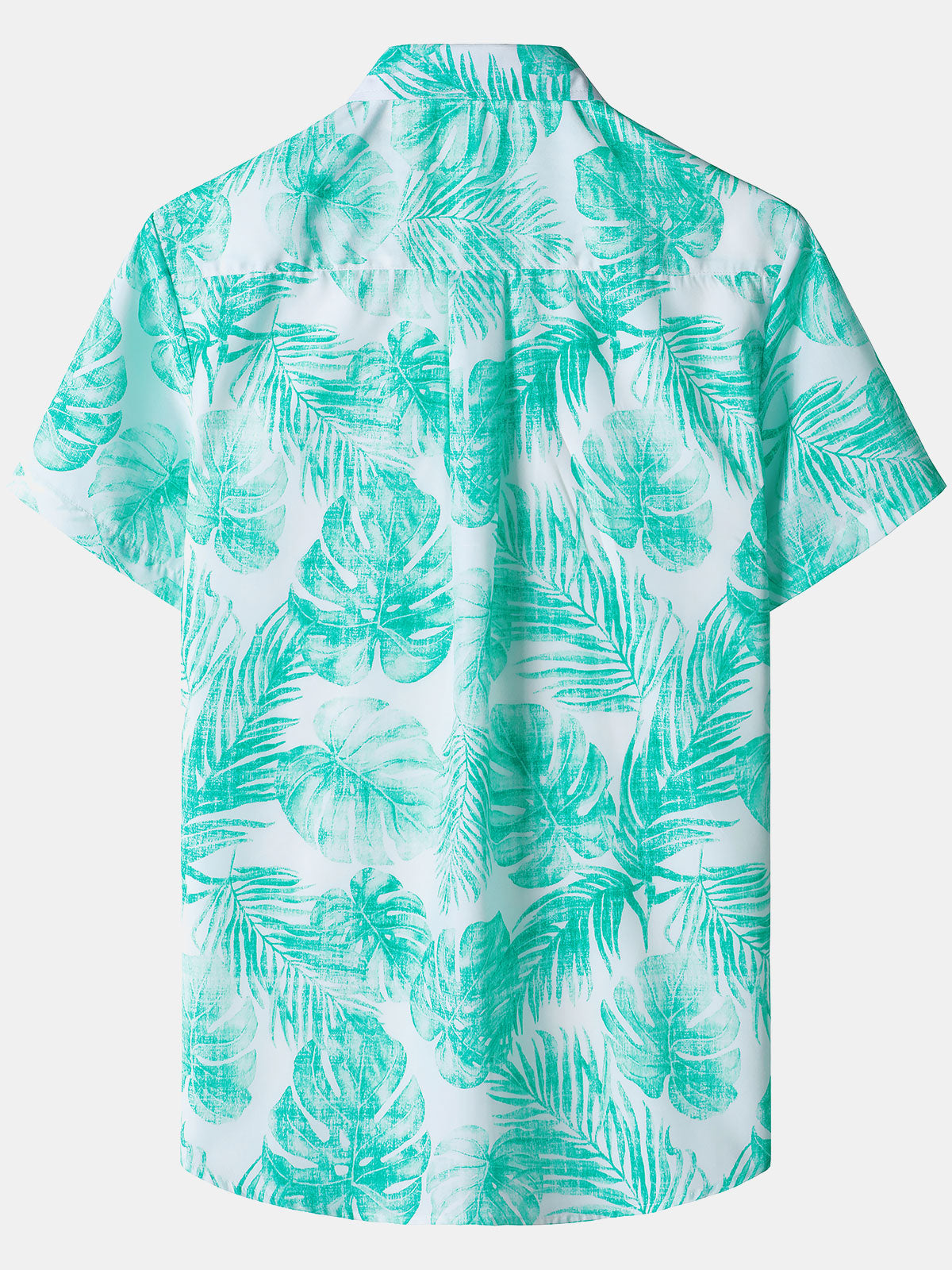 Men‘s Leaves Print Hawaiian Pocket Casual Aloha Shirts