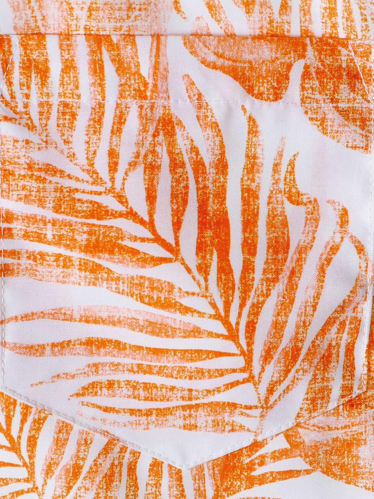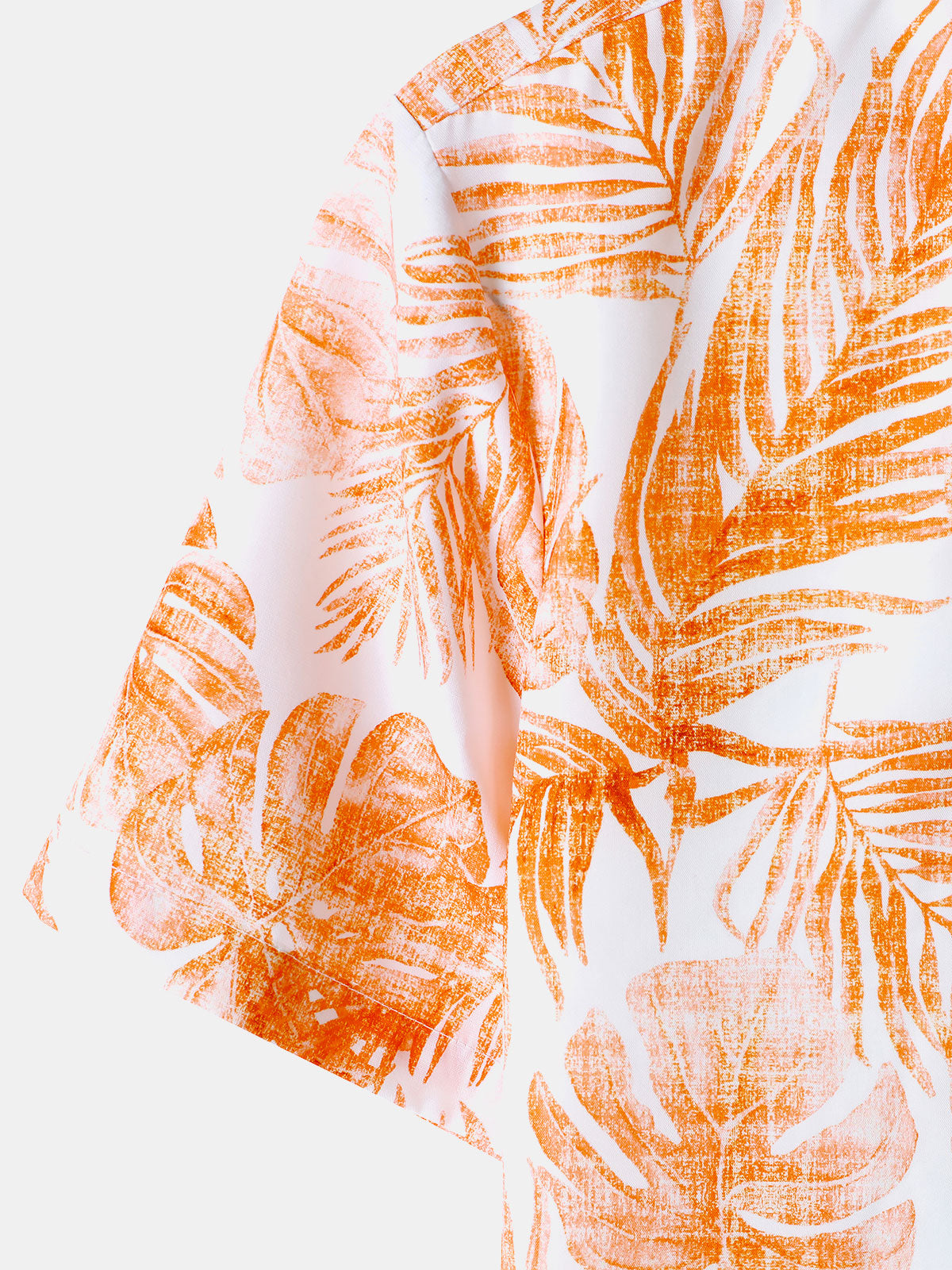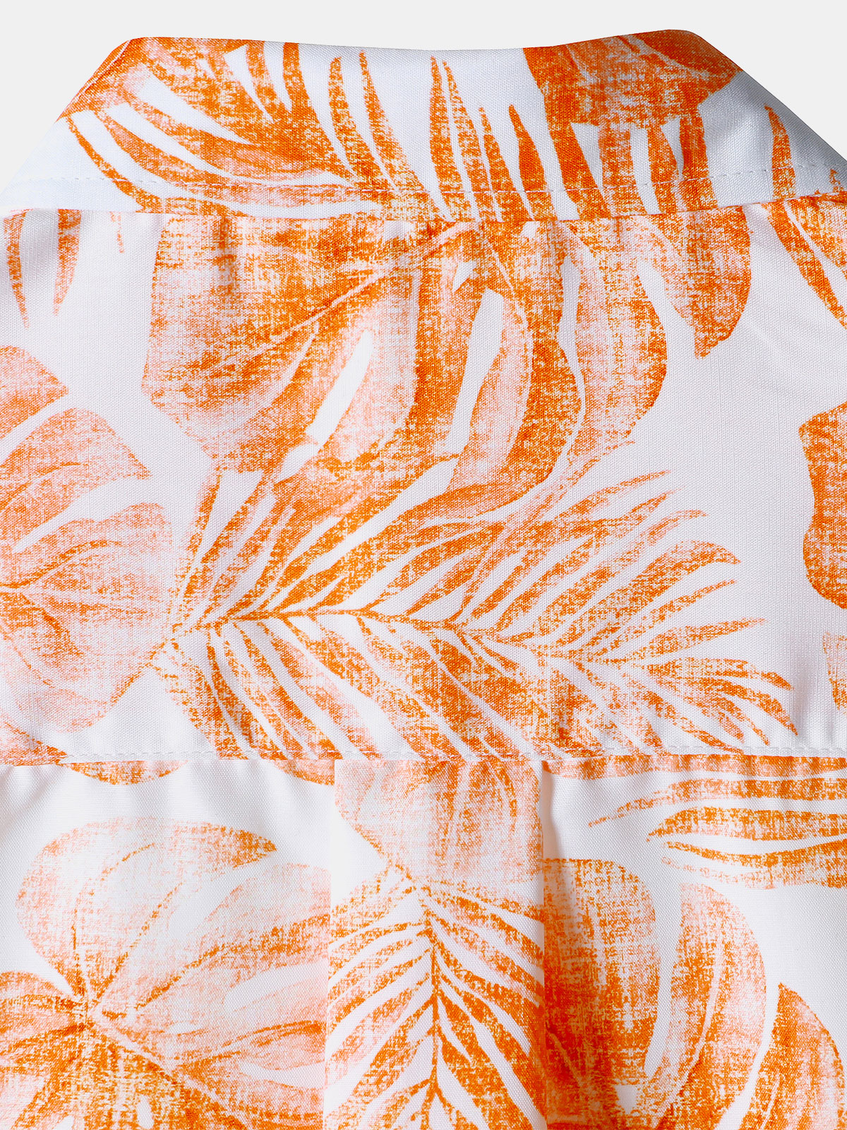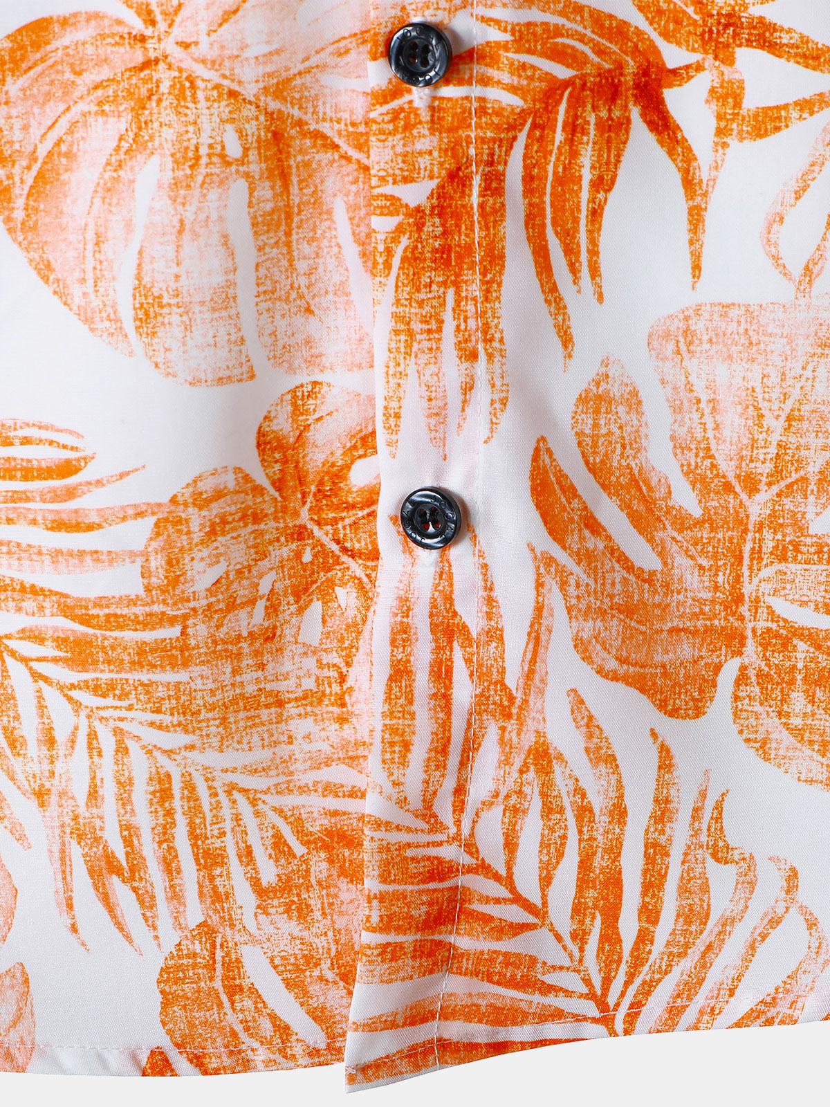Men‘s Leaves Print Hawaiian Pocket Casual Aloha Shirts