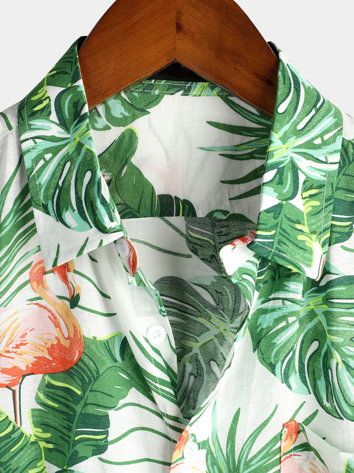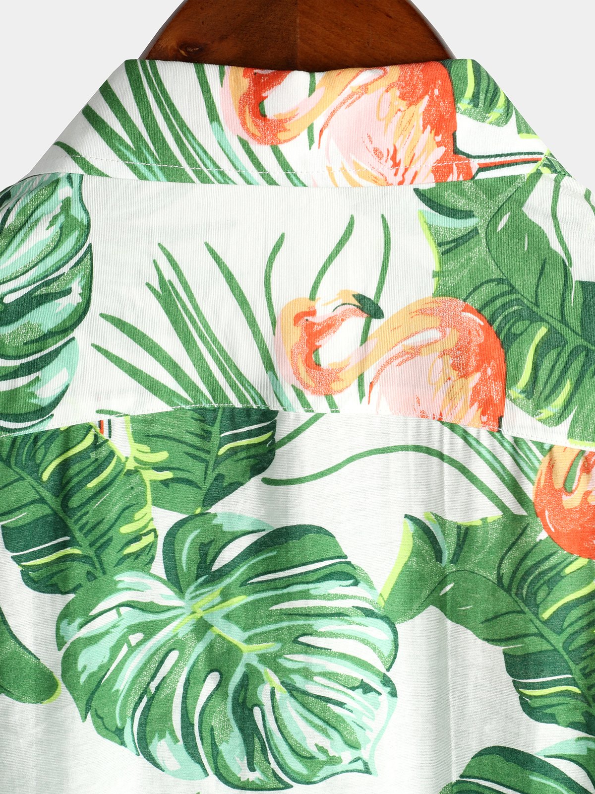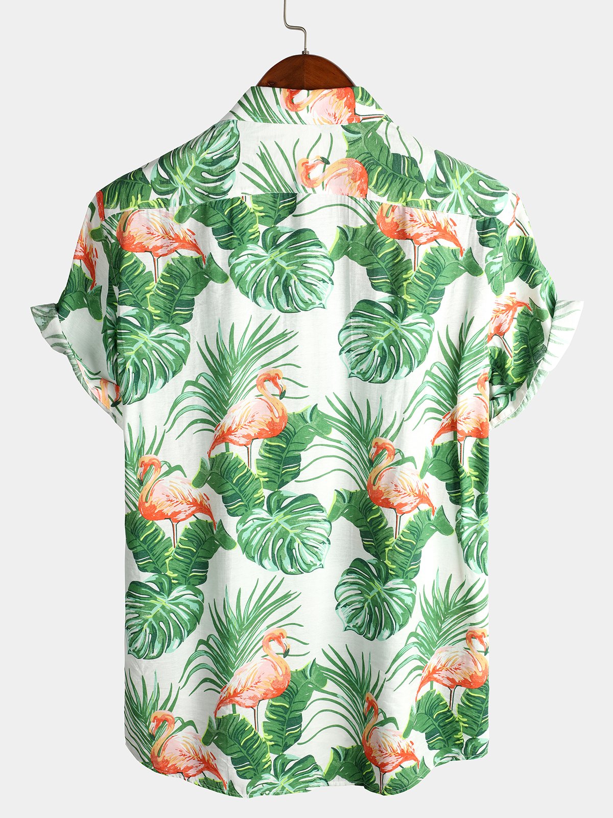 Men' Holiday Flamingo Short Sleeve Cotton Shirt
