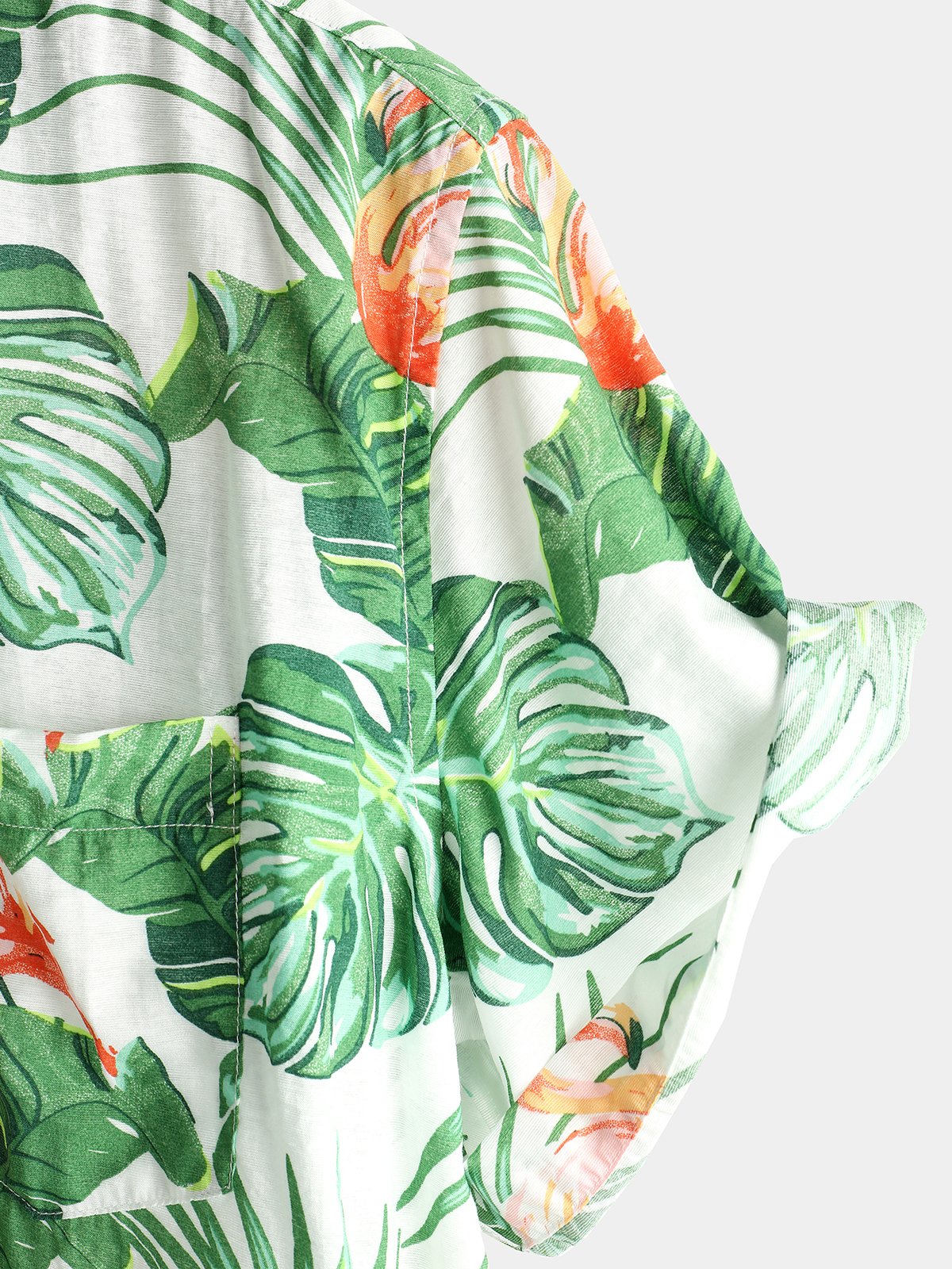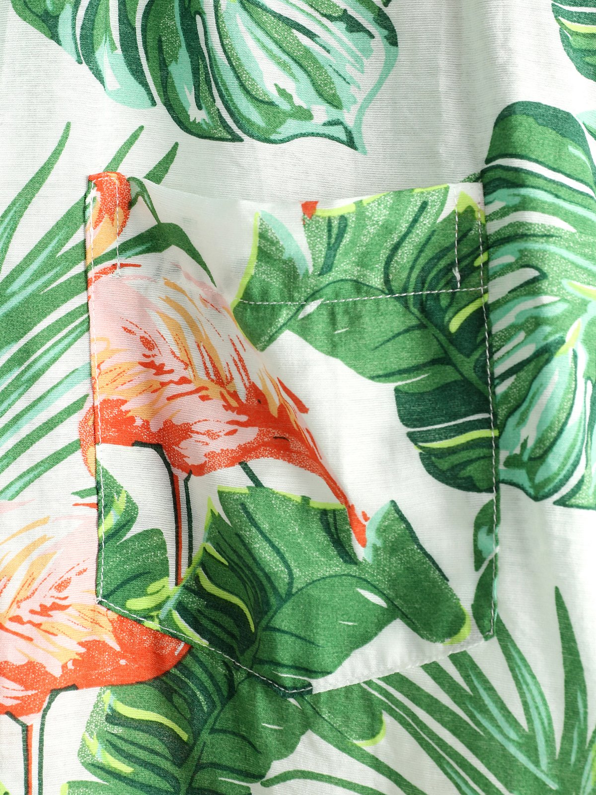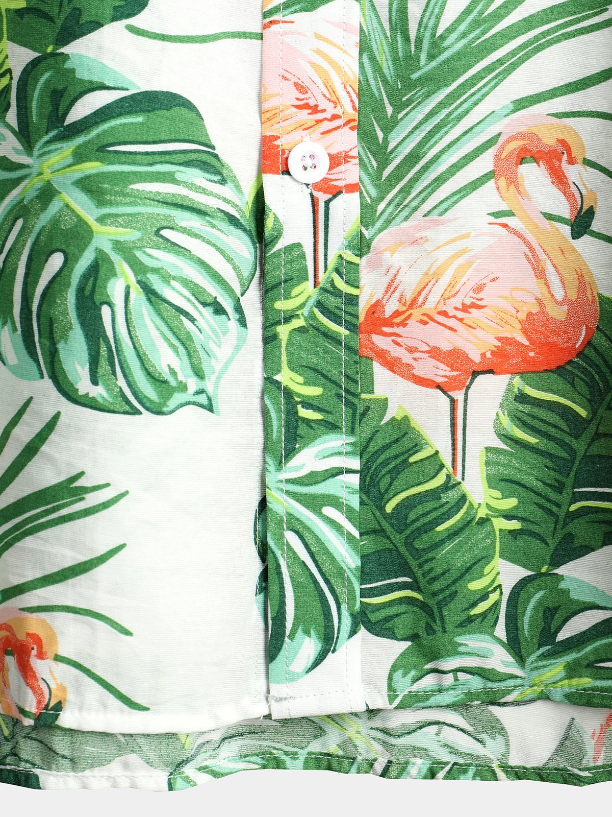 Men' Holiday Flamingo Short Sleeve Cotton Shirt