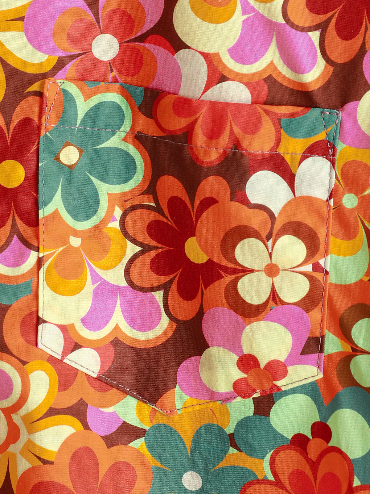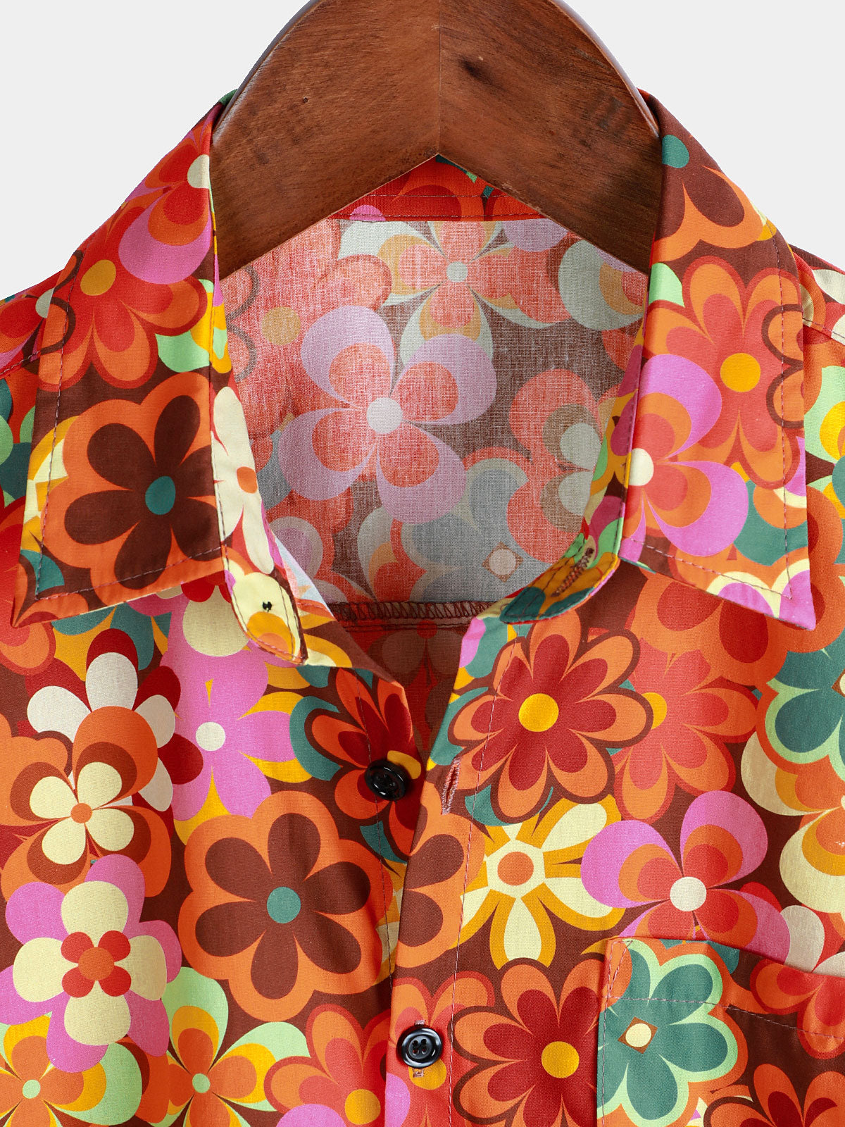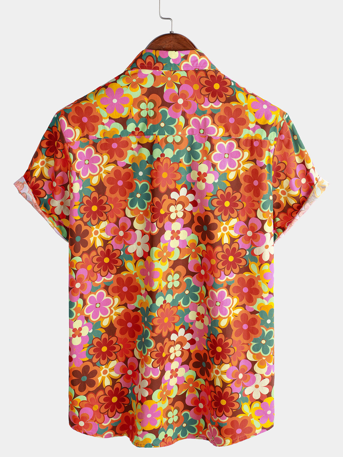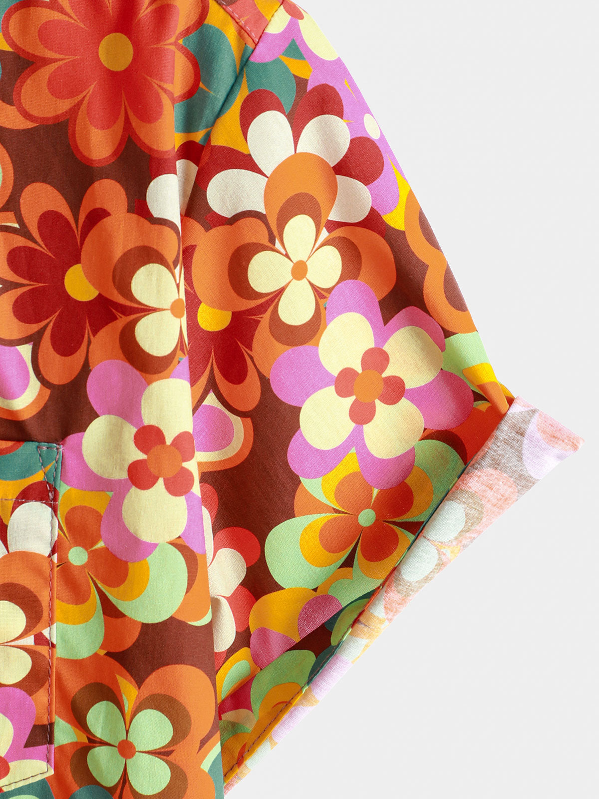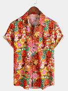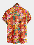 Men's 70s Floral Print Breathable Cotton Pocket Short Sleeve Shirt