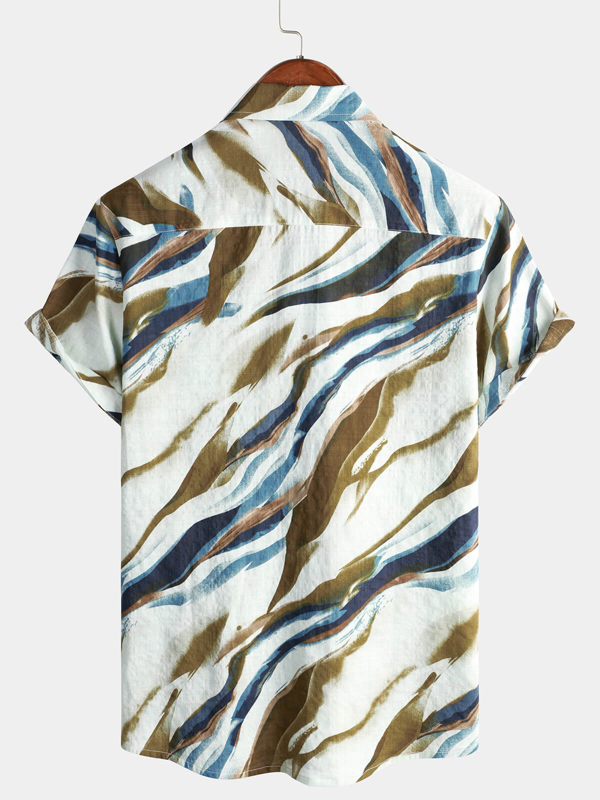 Men's Abstract Graphic Print Cotton Summer Short Sleeve Button Up Shirt