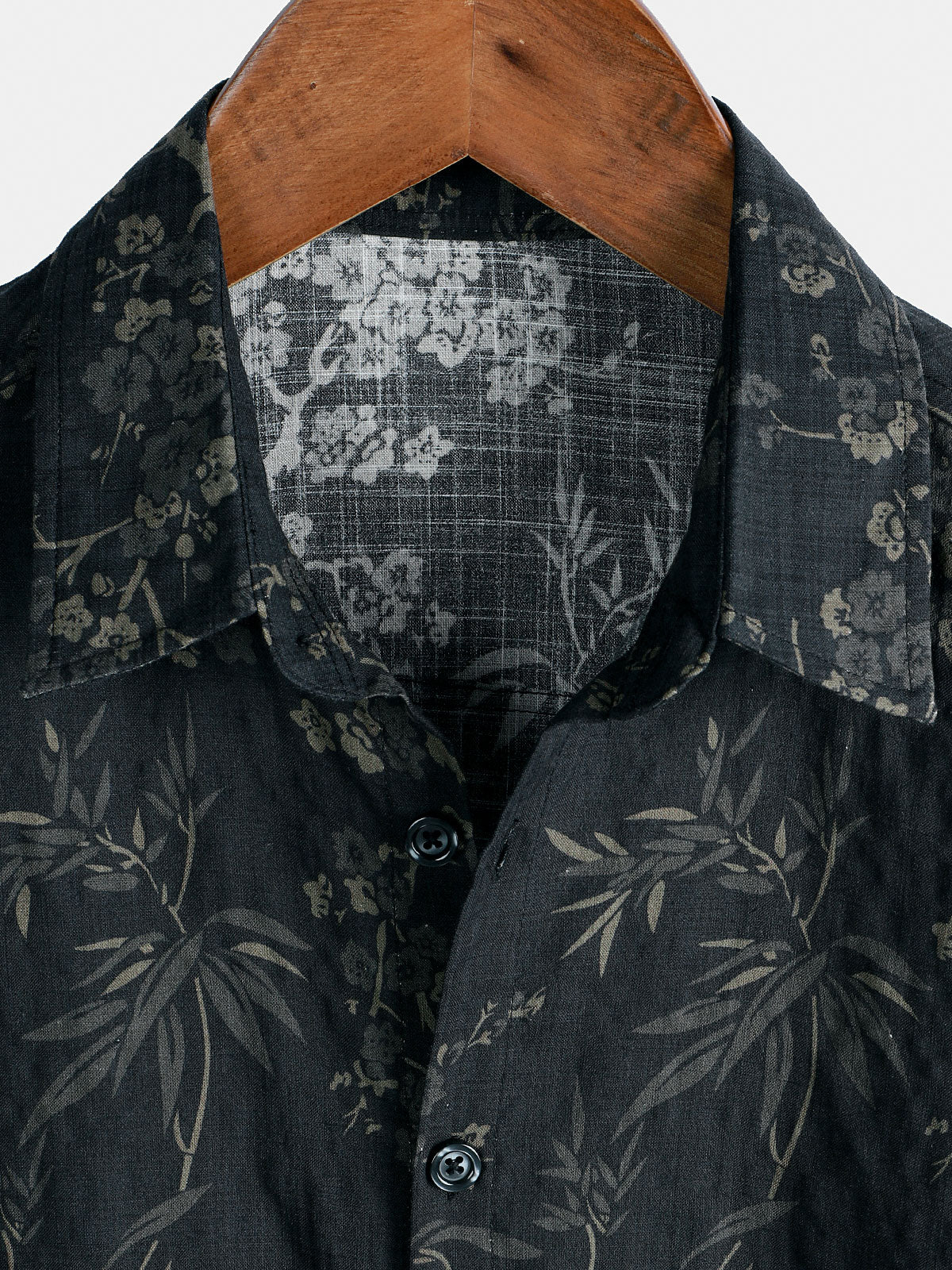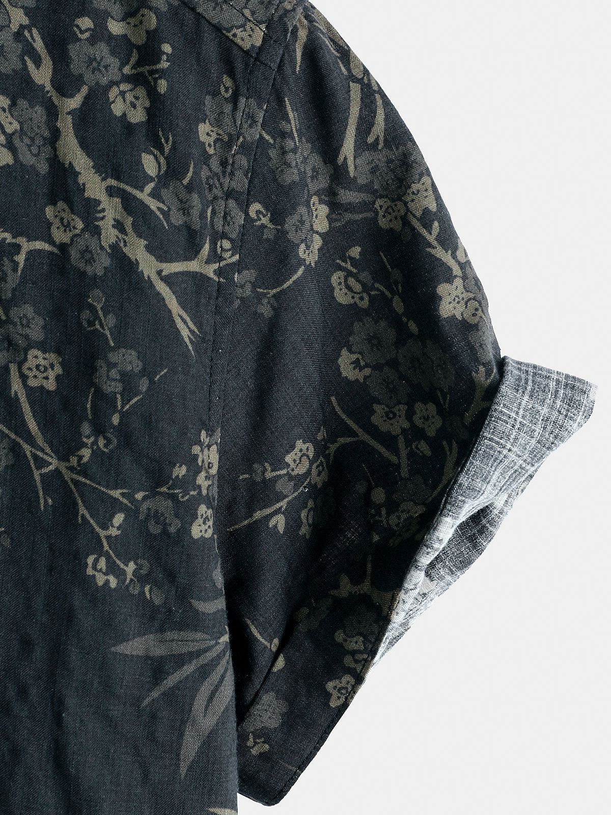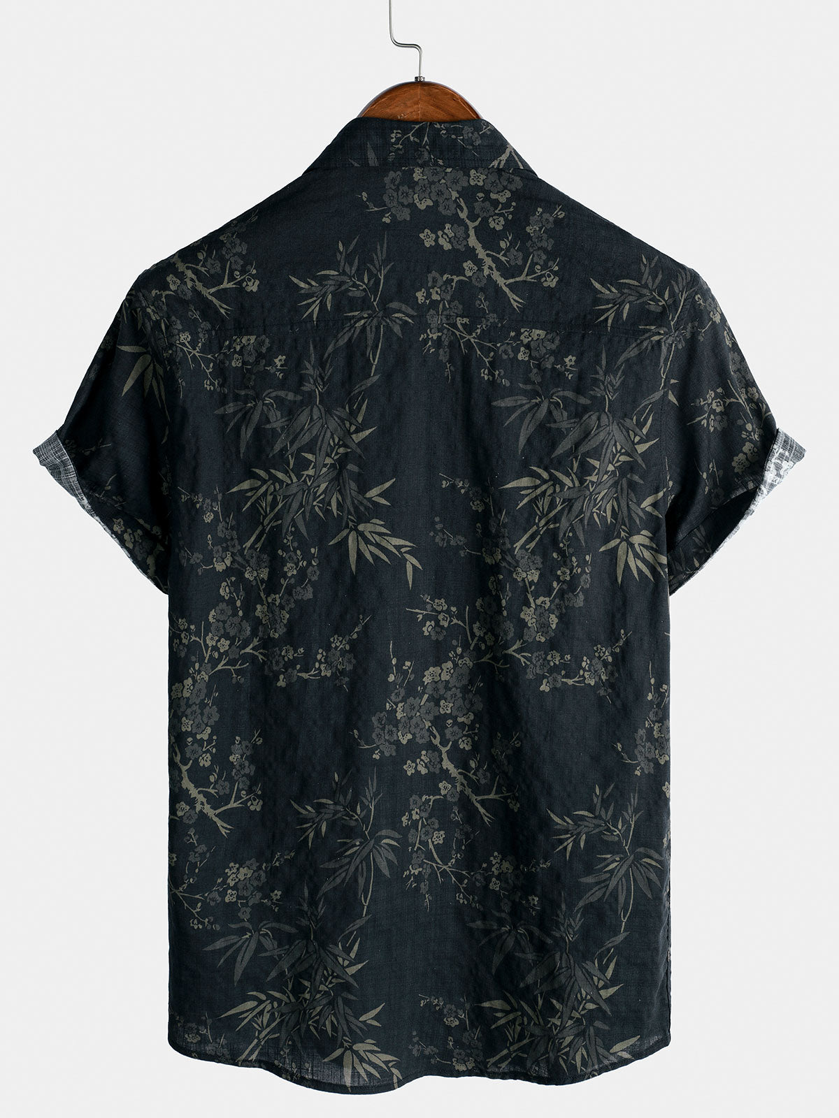 Men's Casual Elegant Blossom Print Retro Short Sleeve Shirt