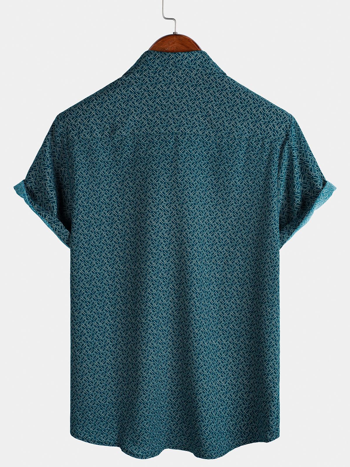 Men's Casual Geometric Print Holiday Pocket Short Sleeve Shirt
