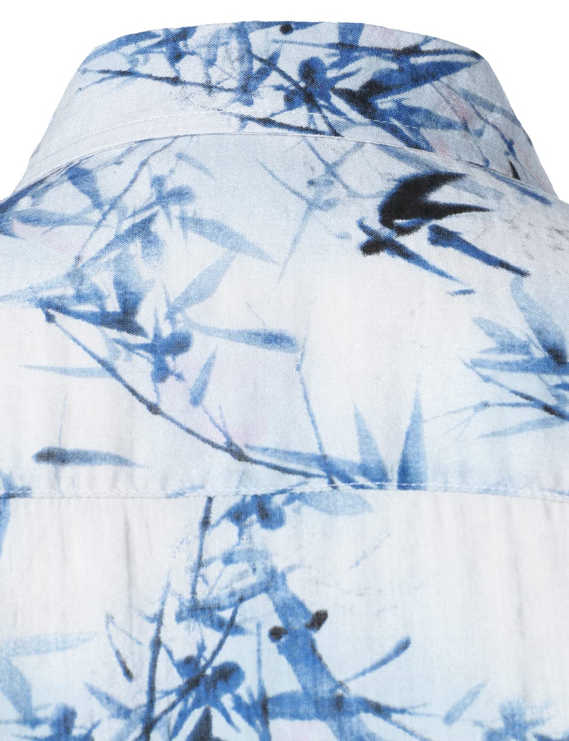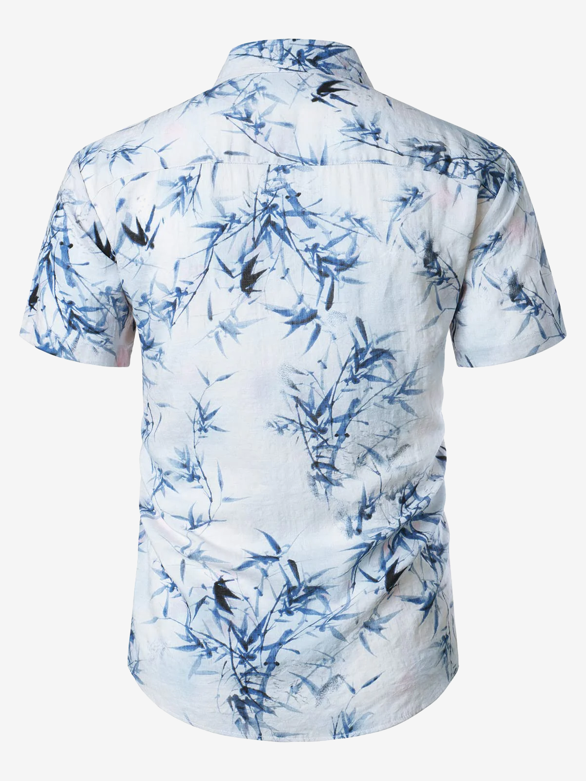 Men's Cotton Bamboo Art Print Button Summer Casual Short Sleeve Light Blue Hawaiian Shirt
