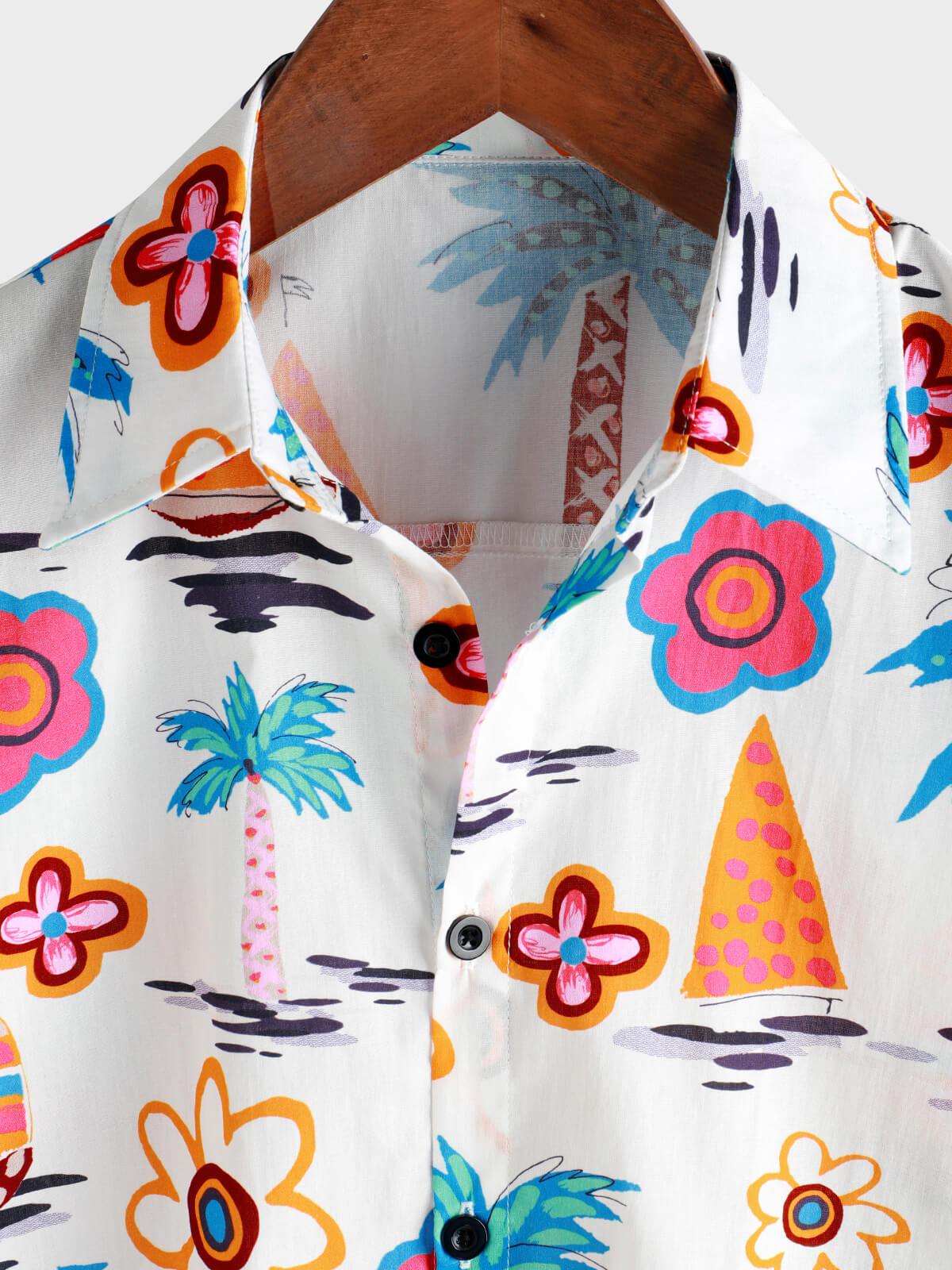 Men's Cotton Tropical Print Summer Hawaiian Button Up Short Sleeve Shirt