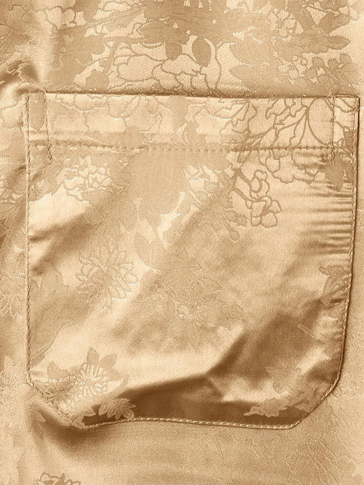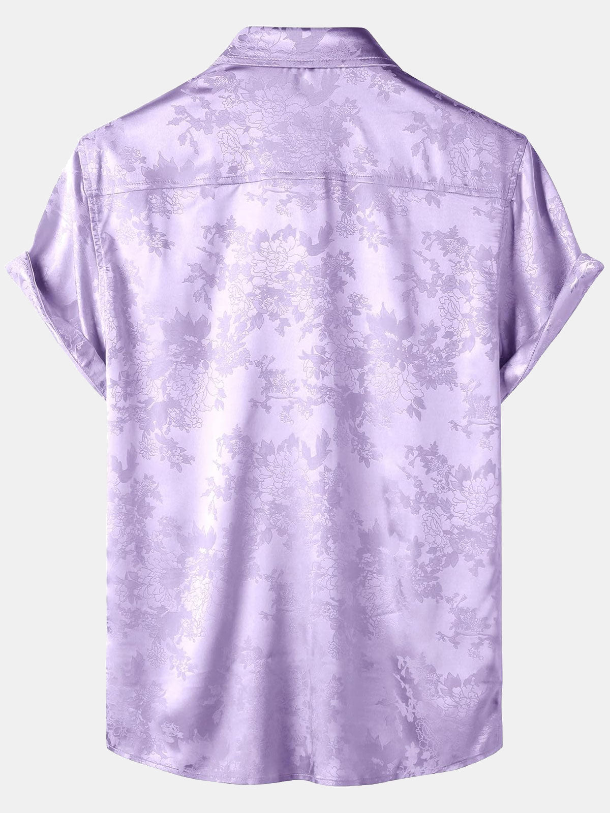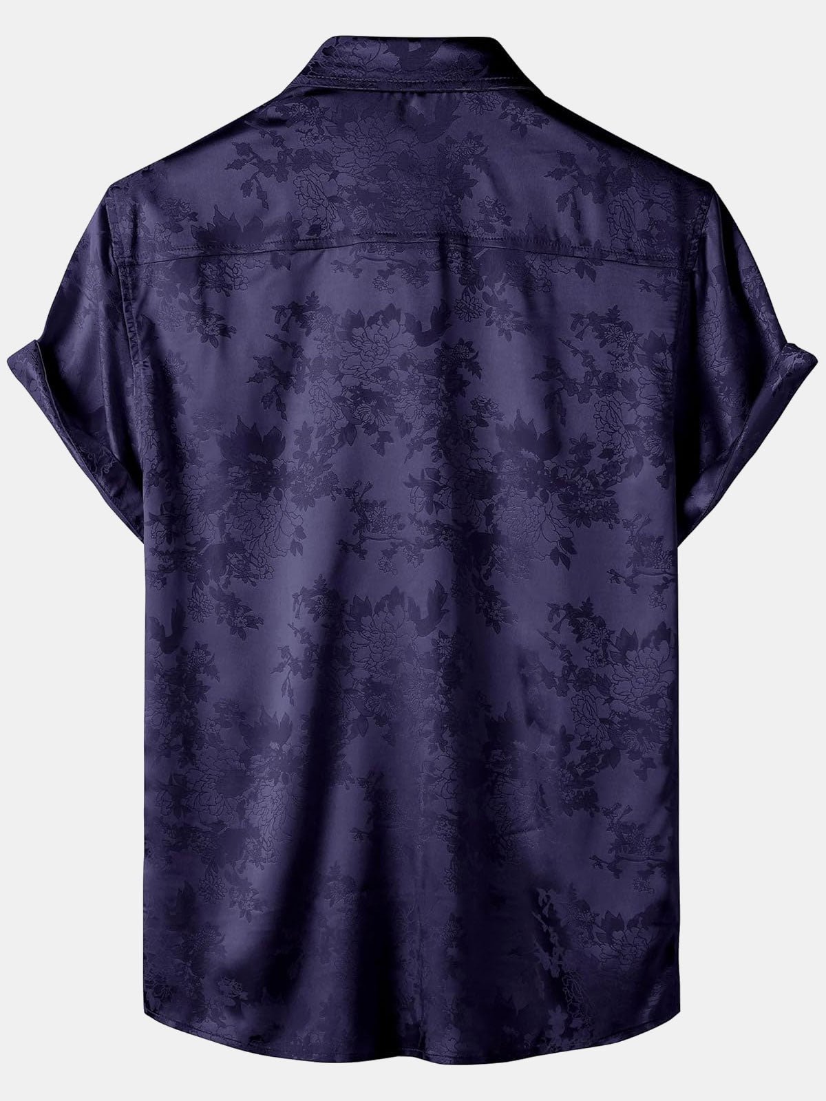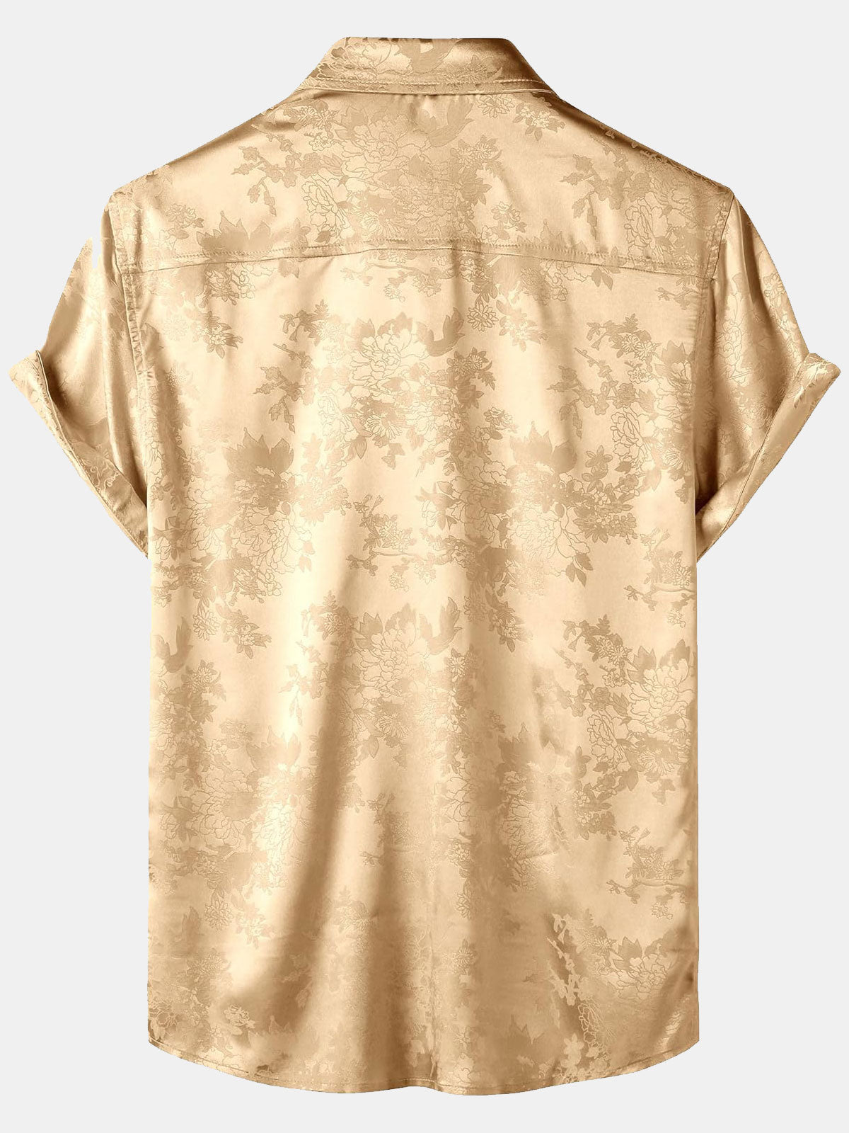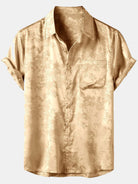 Men's Floral Jacquard Pocket Silk Satin Short Sleeve Shirt