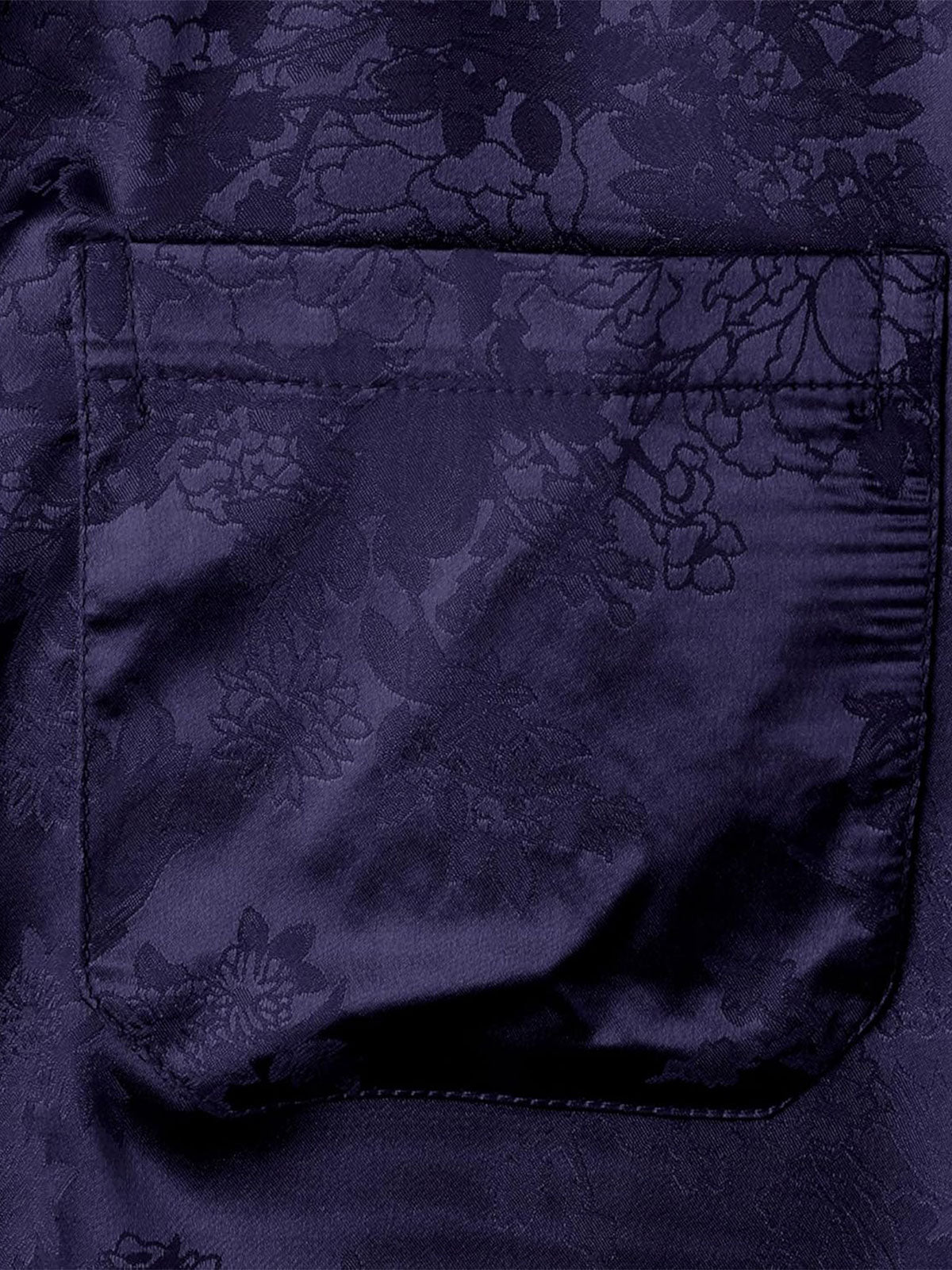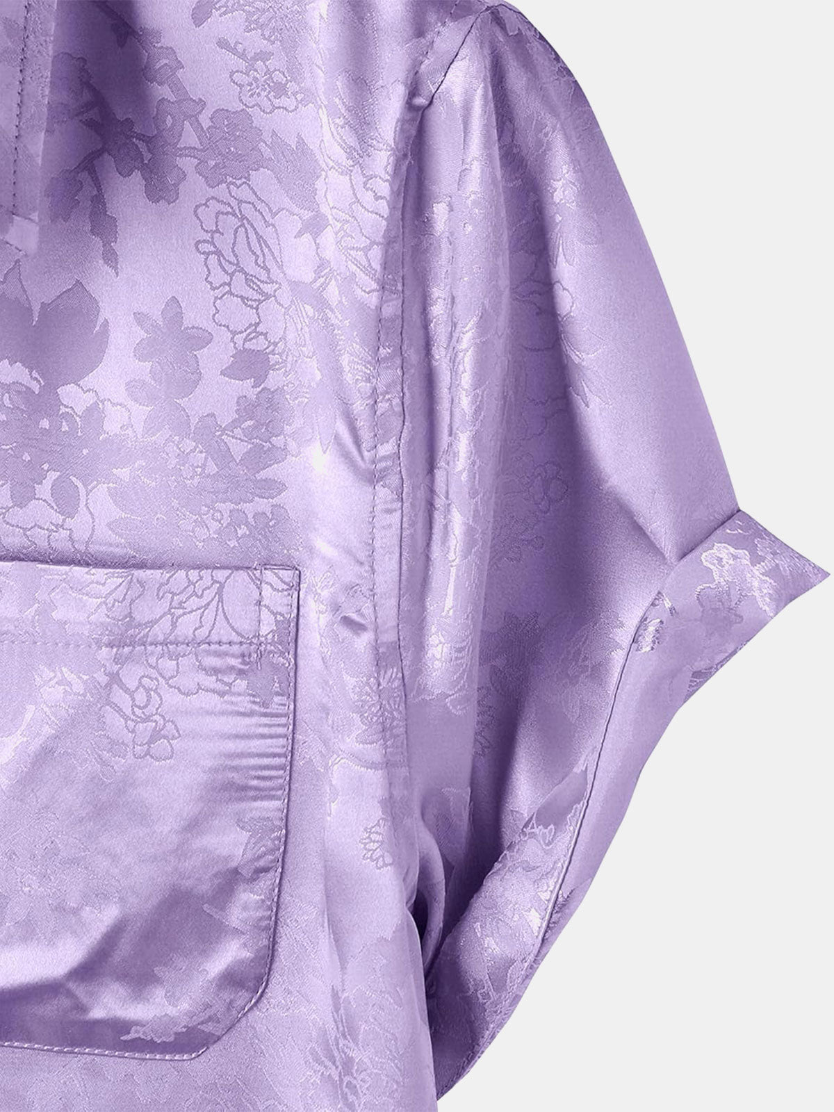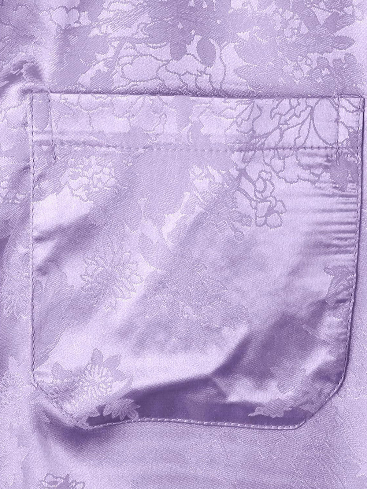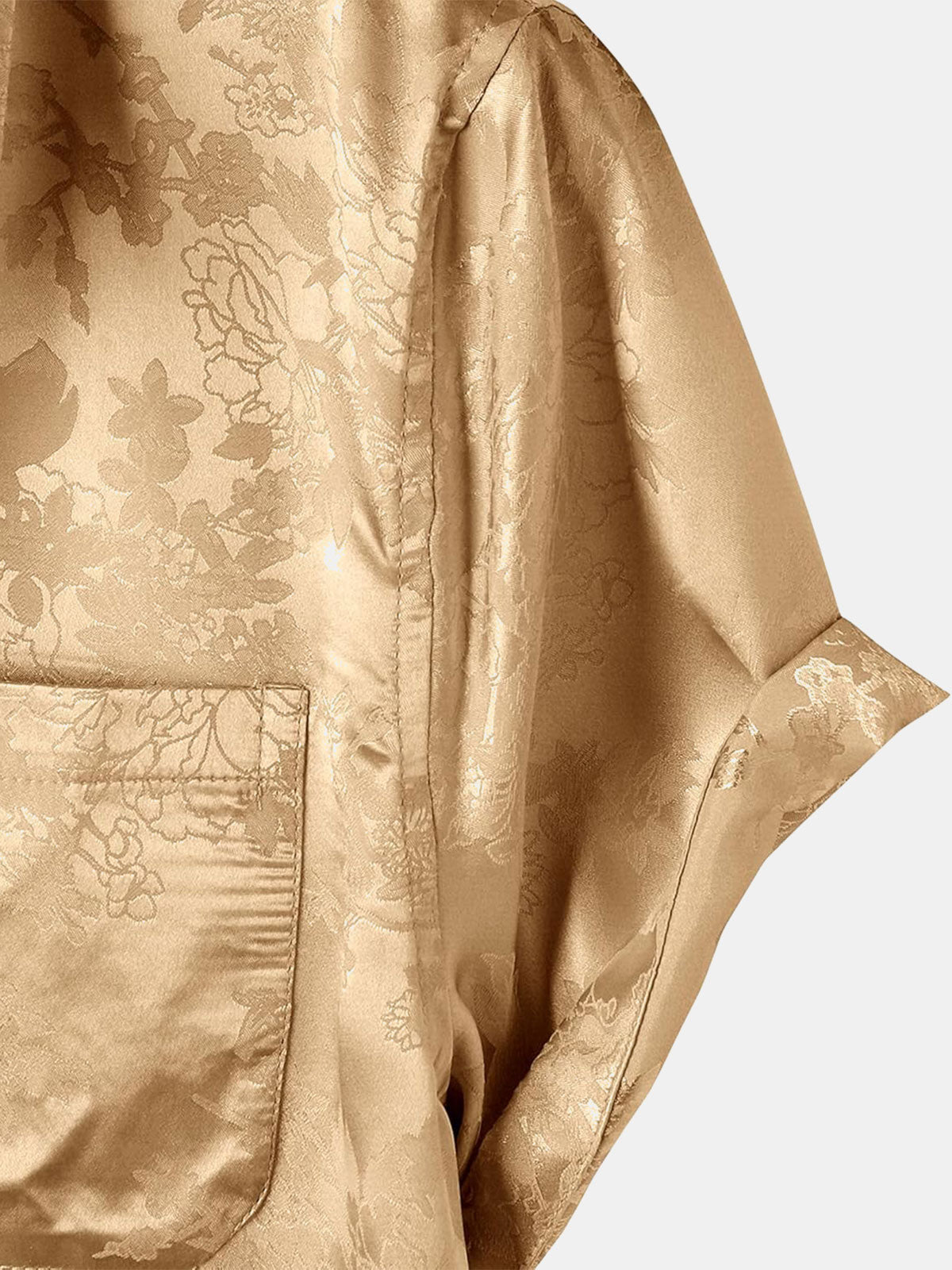 Men's Floral Jacquard Pocket Silk Satin Short Sleeve Shirt