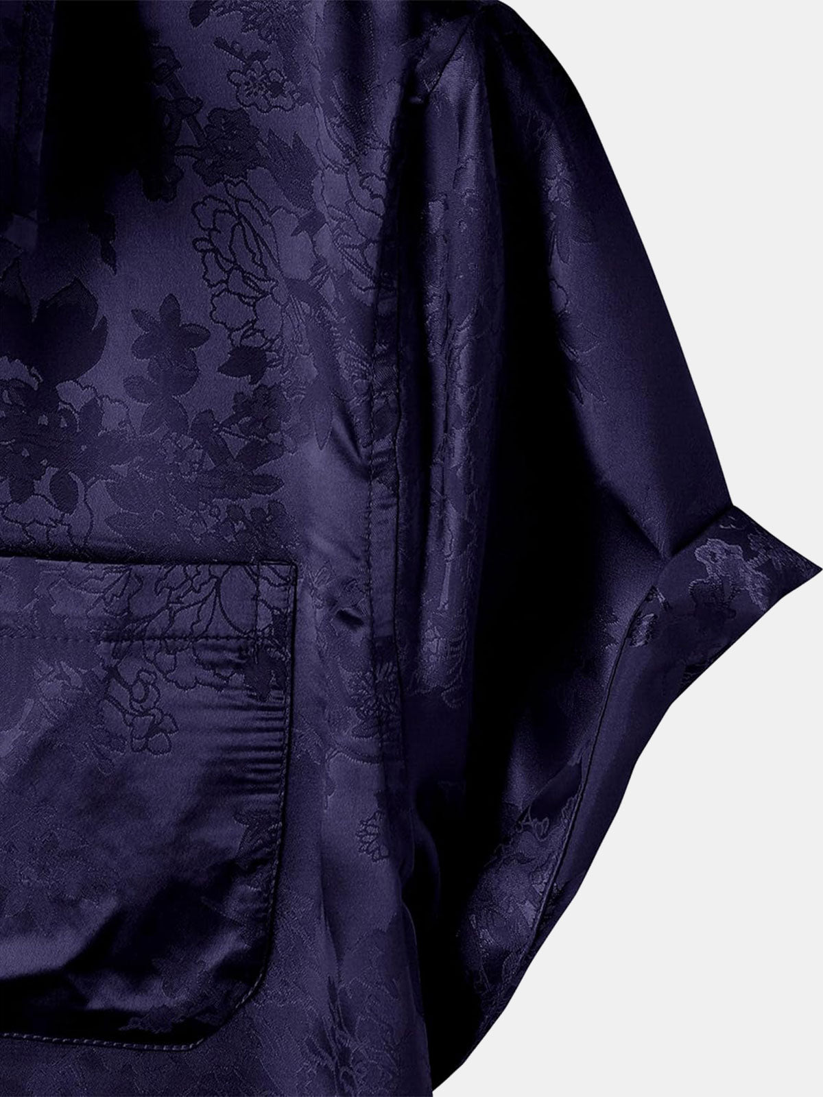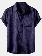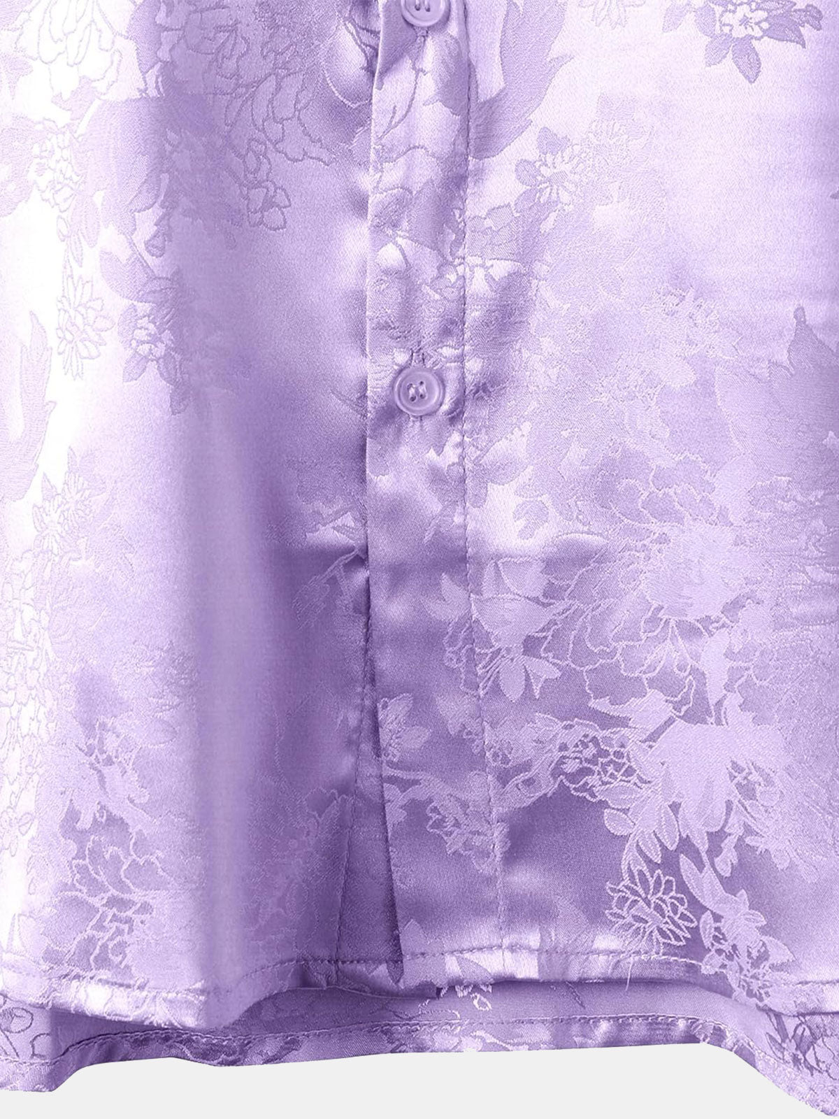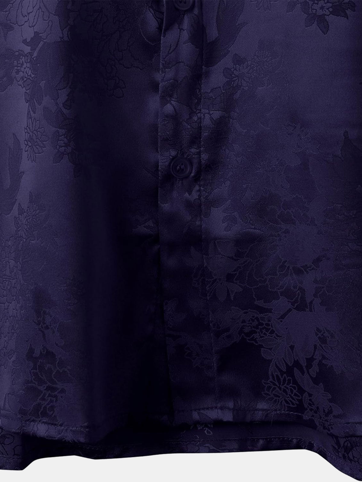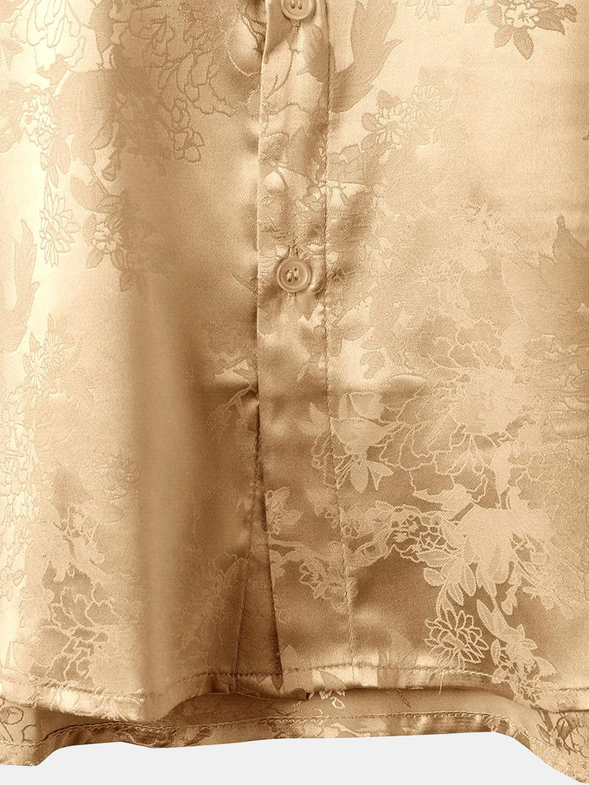 Men's Floral Jacquard Pocket Silk Satin Short Sleeve Shirt