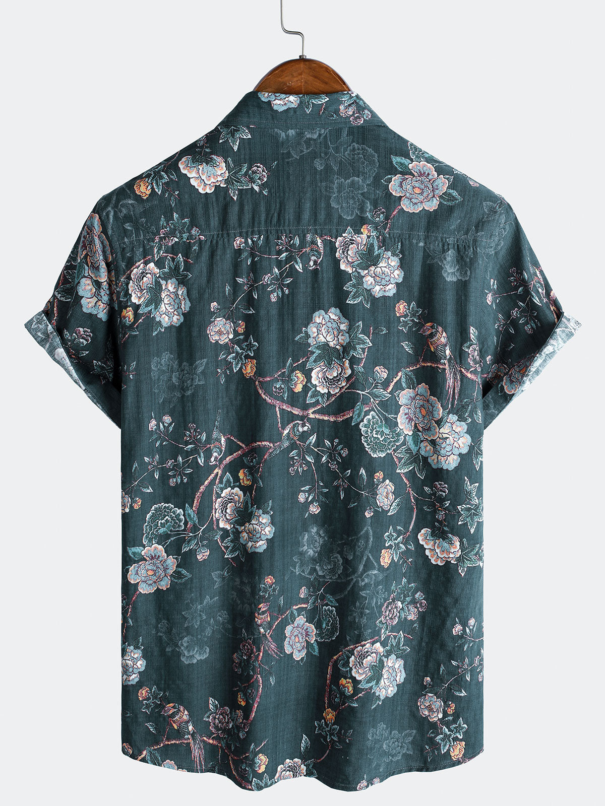 Men's Floral Print Camp Button Up Short Sleeve Casual Shirt