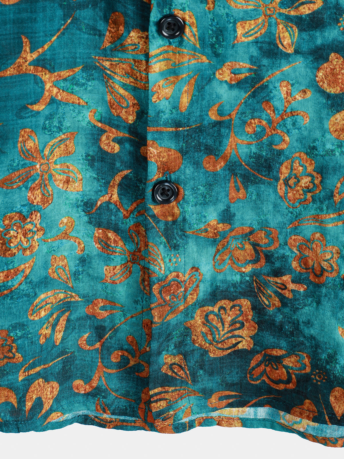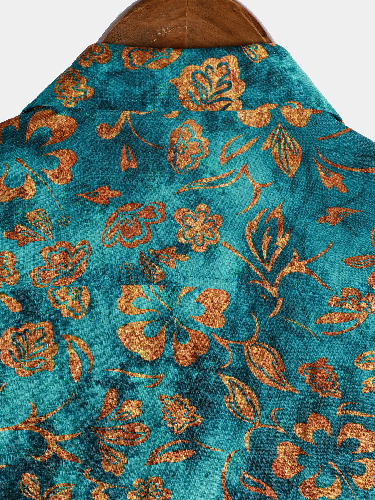 Men's Floral Print Pocket Hawaiian Short Sleeve Shirt