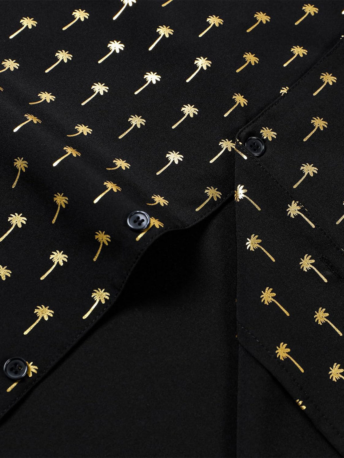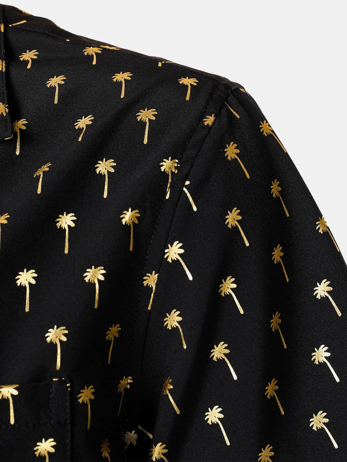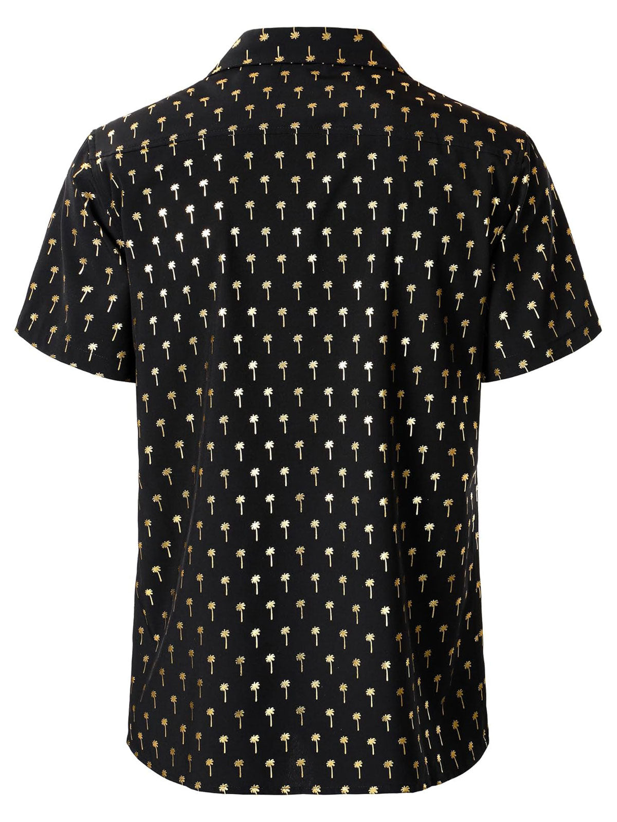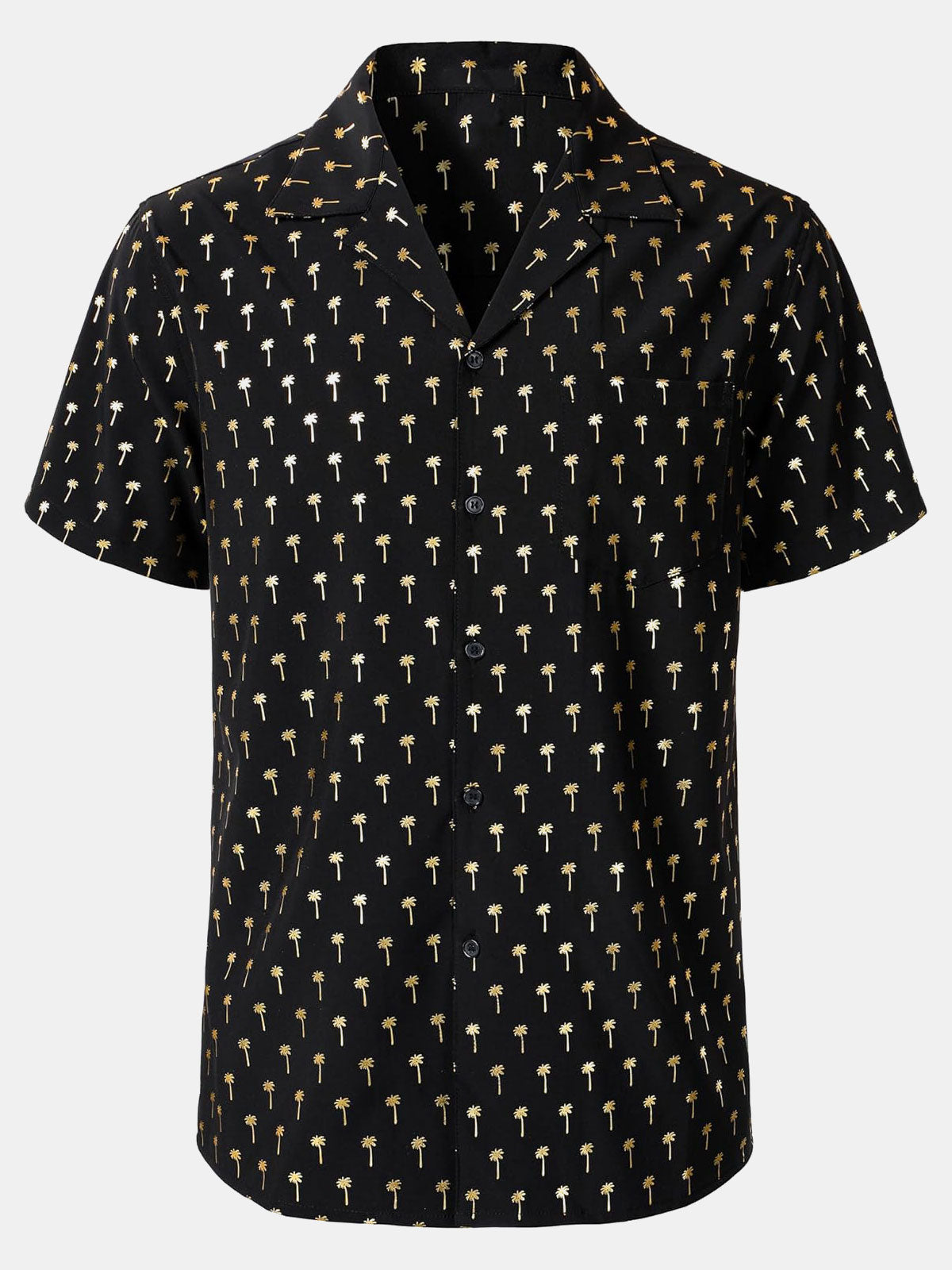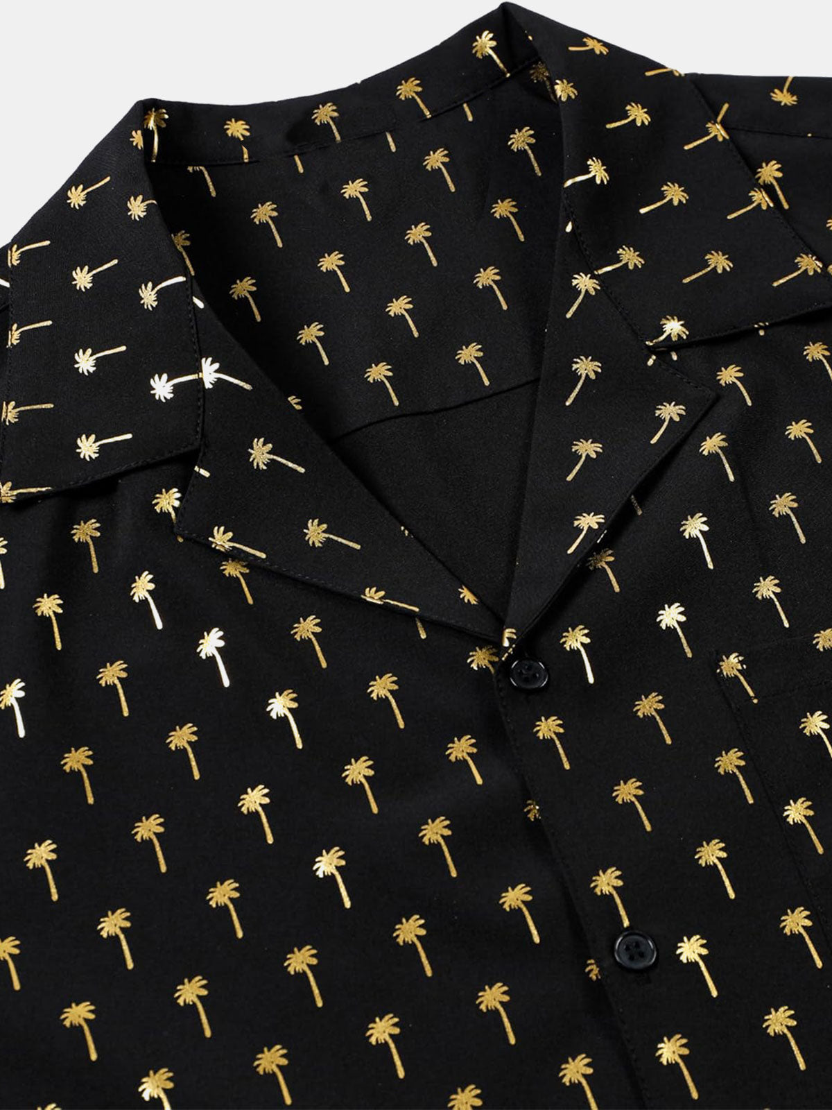Men's Golden Palm Tree Cuban Collar Short Sleeve Shirt
