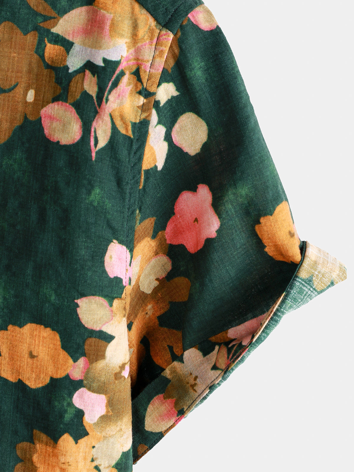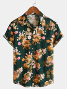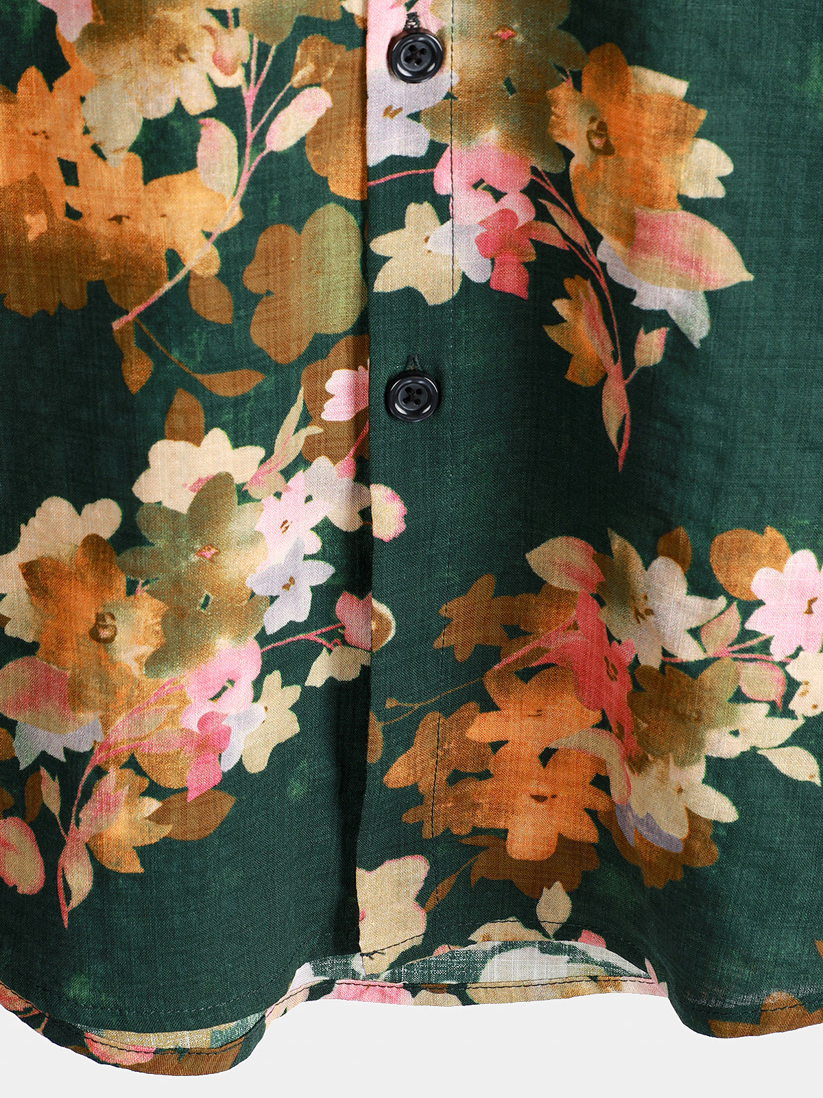 Men's Green Floral Casual Cotton Short Sleeve Beach Shirt