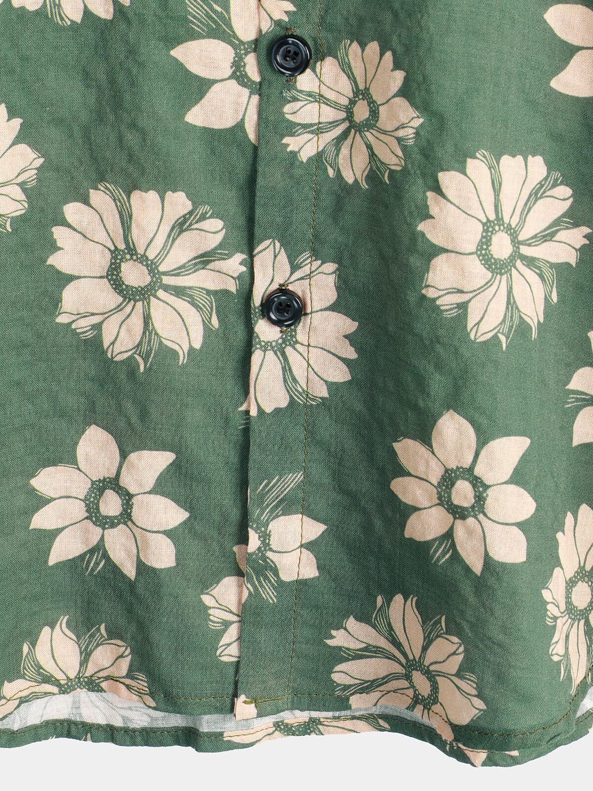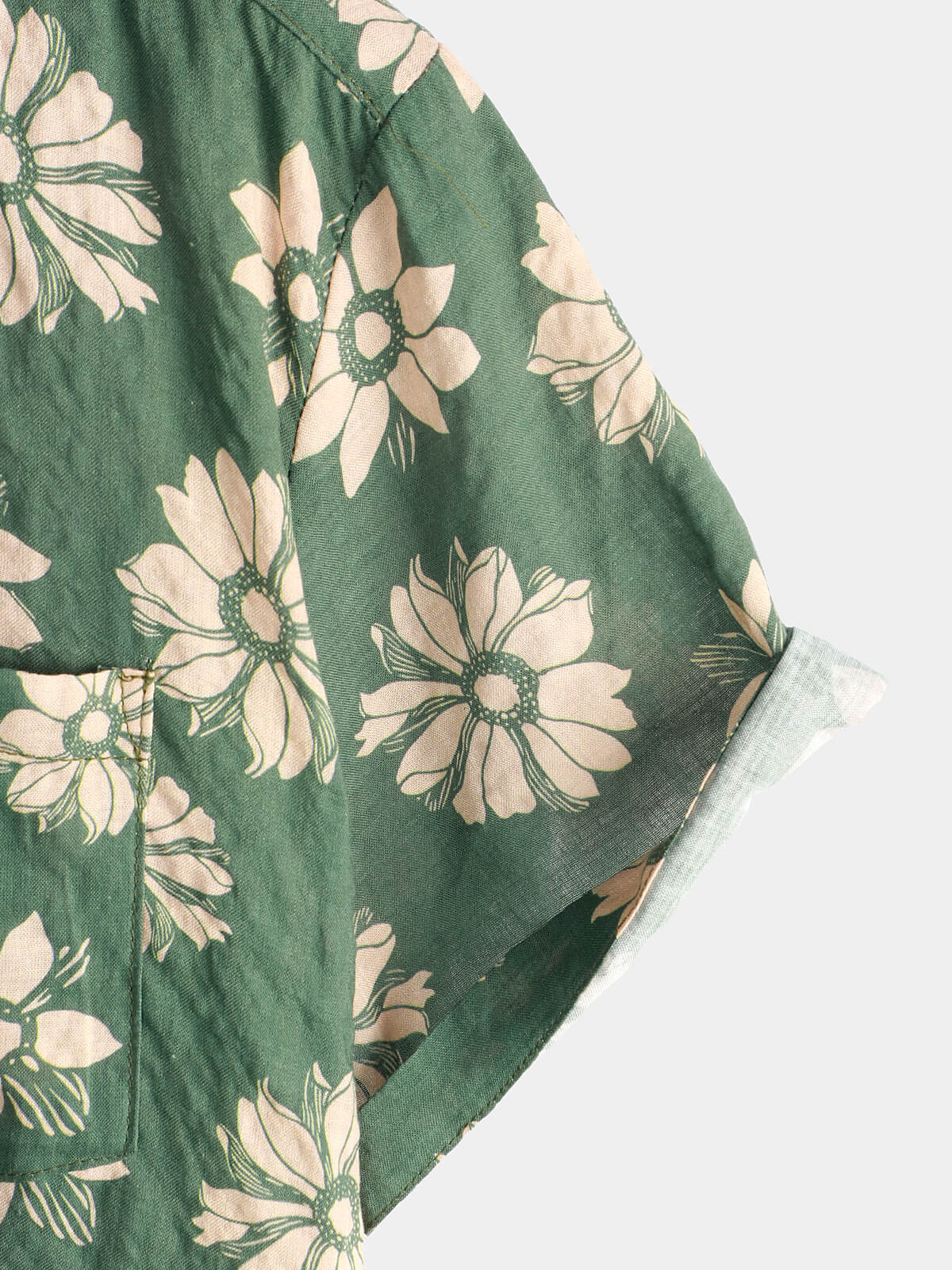 Men's Green Floral Hawaiian Short Sleeve Button Holiday Summer Shirt