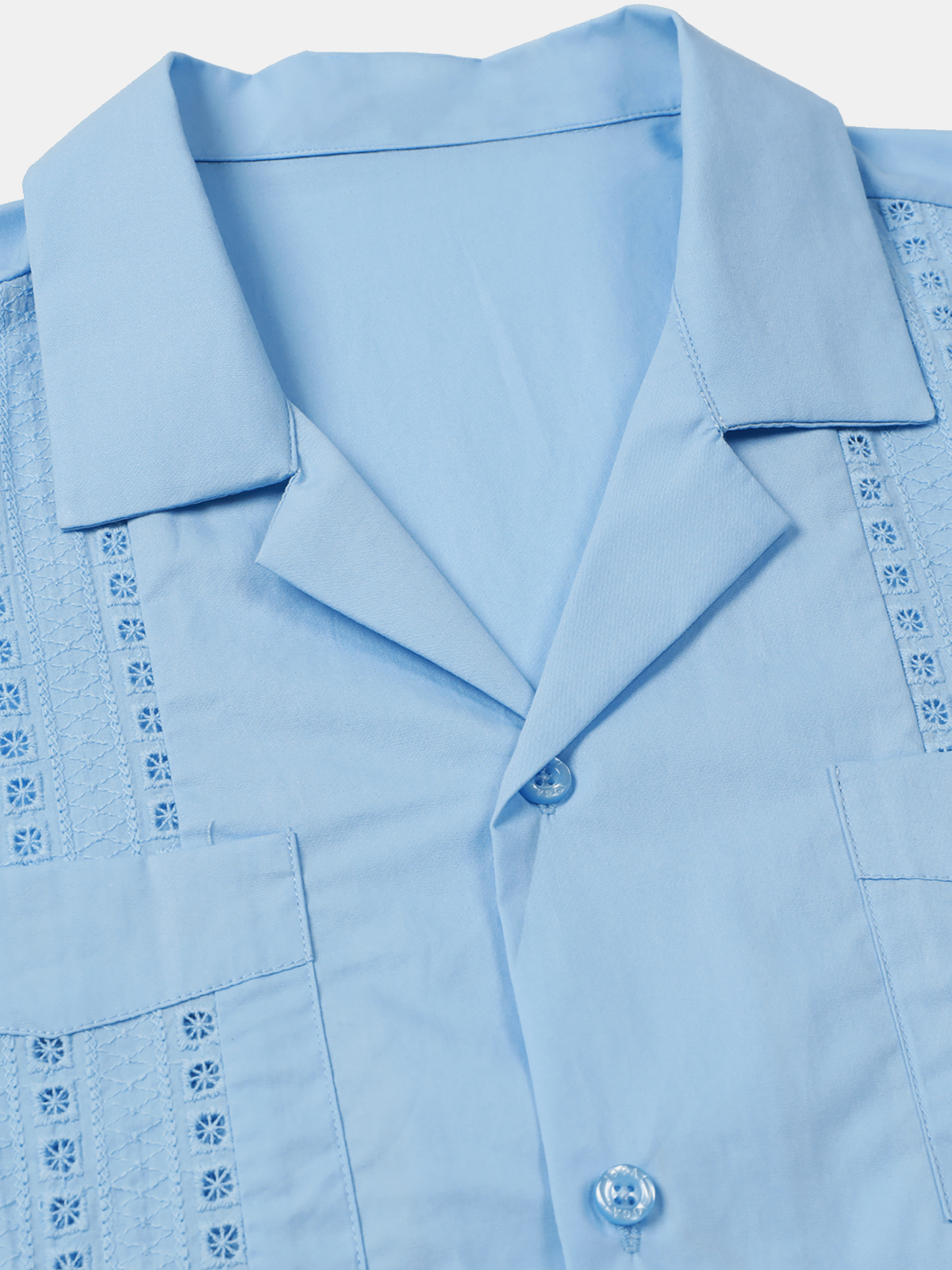 Men's Guayabera Cuban Short Sleeve Casual Button Beach Shirt