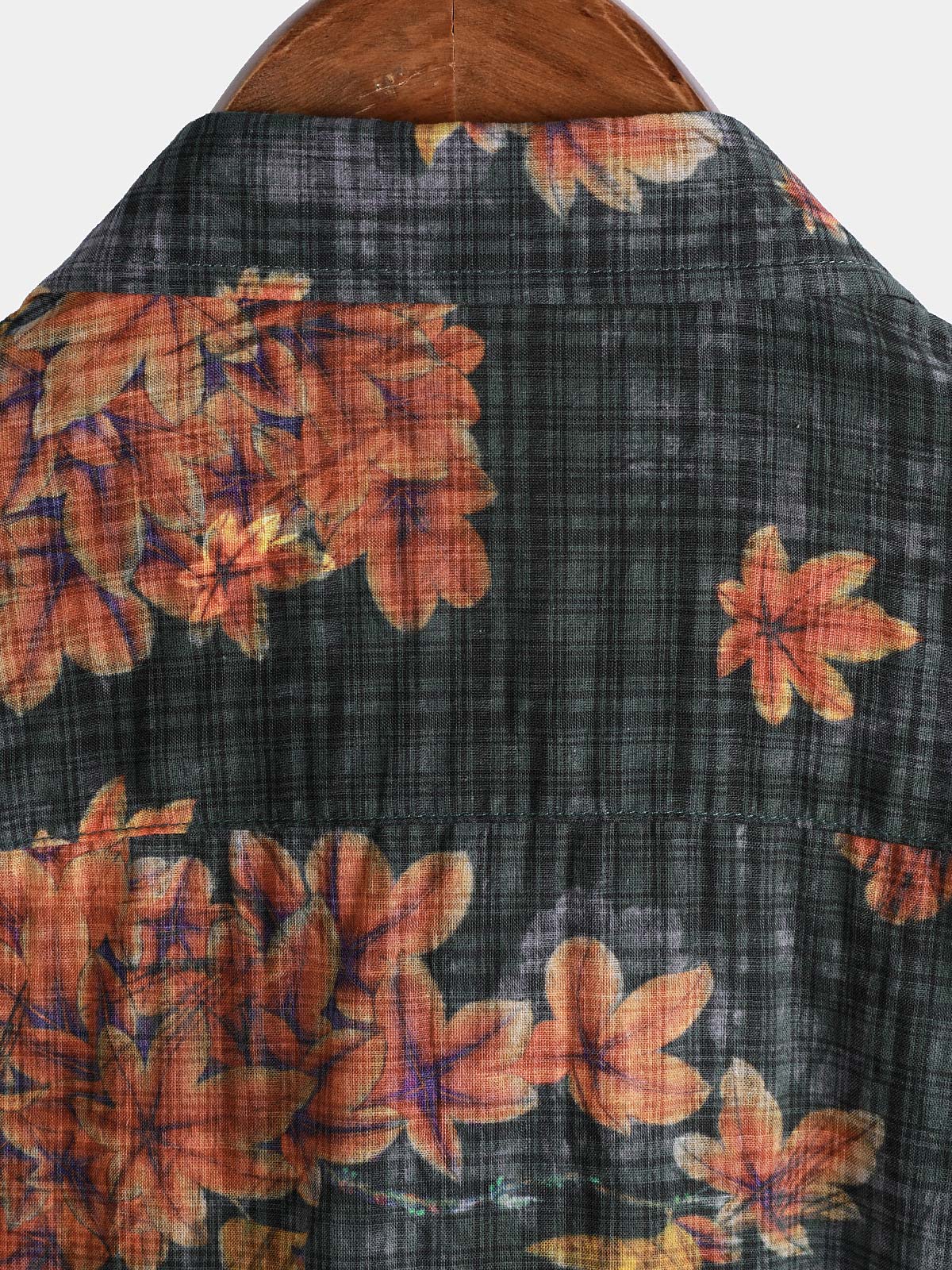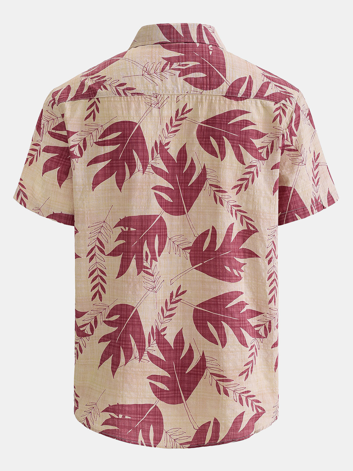 Men's Leaf Print Breathable Short Sleeve Hawaiian Shirt