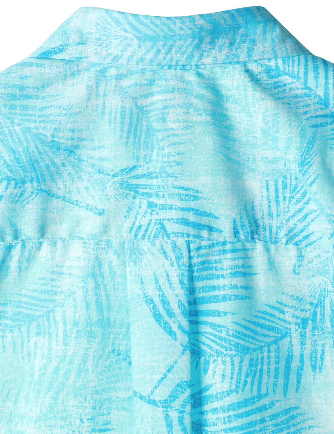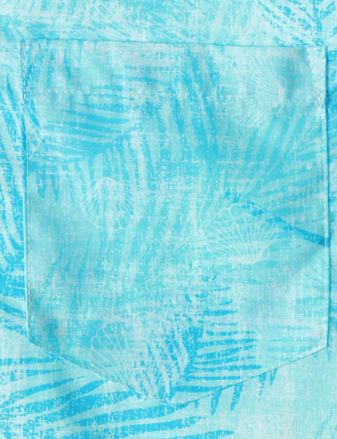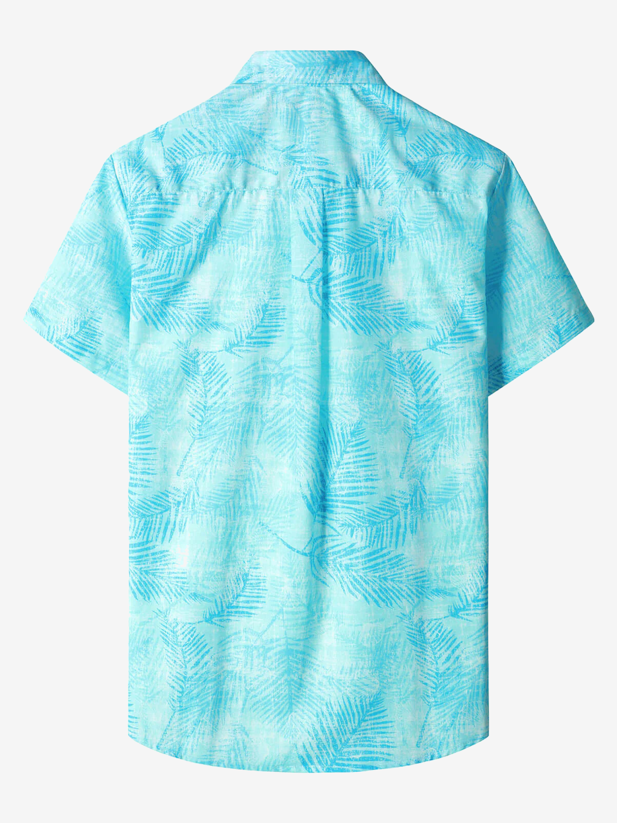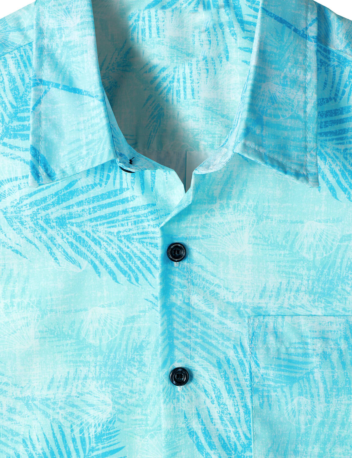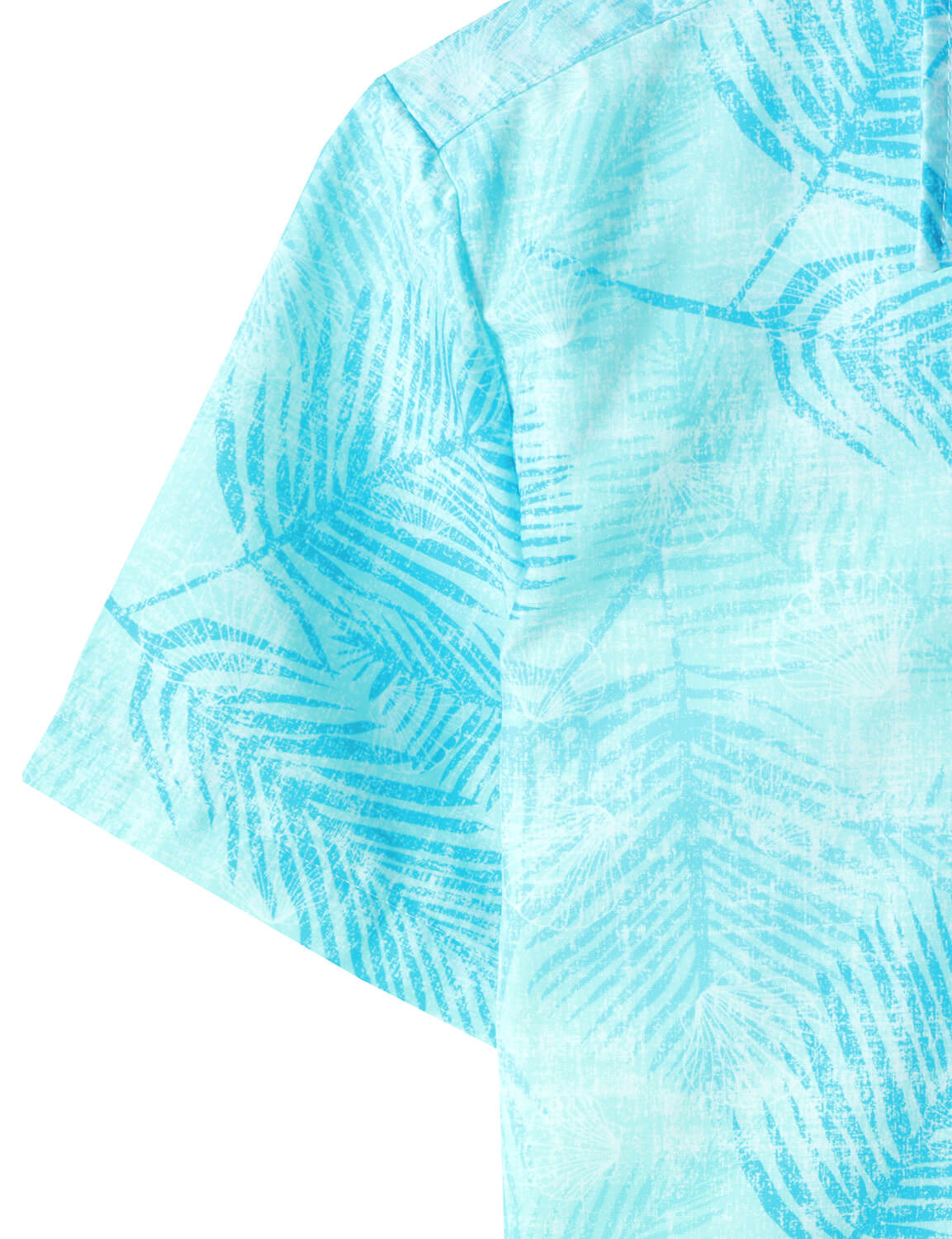 Men's Light Blue Tropical Print Beach Holiday Pocket Short Sleeve Shirt