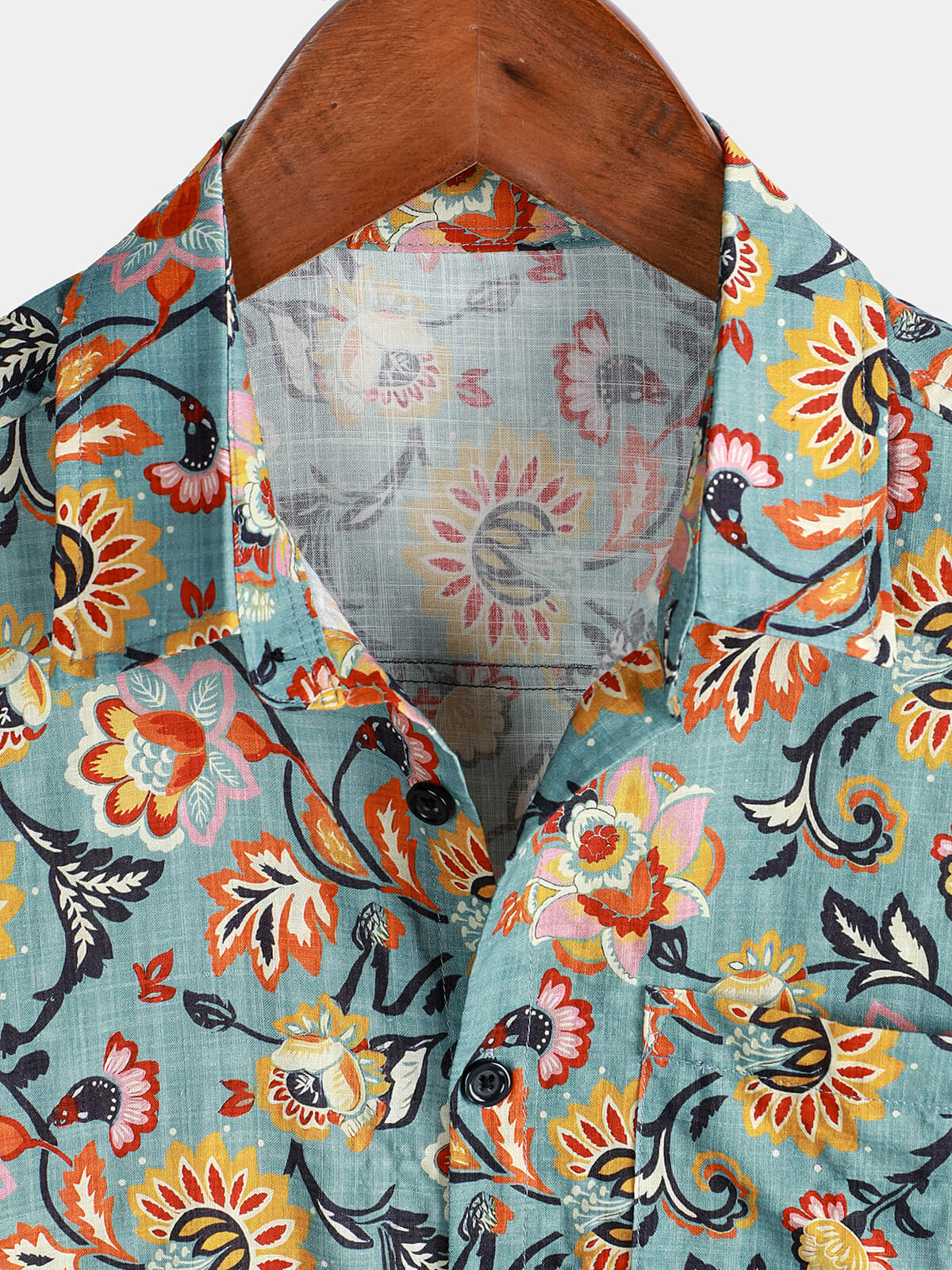 Men's Paisley Print Pocket Short Sleeve Shirt