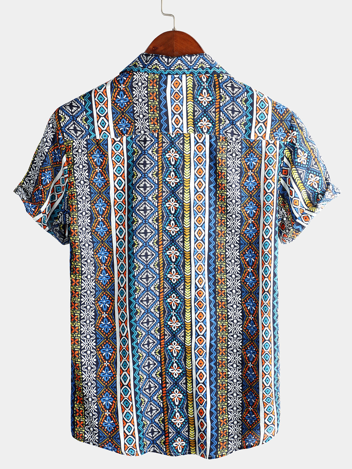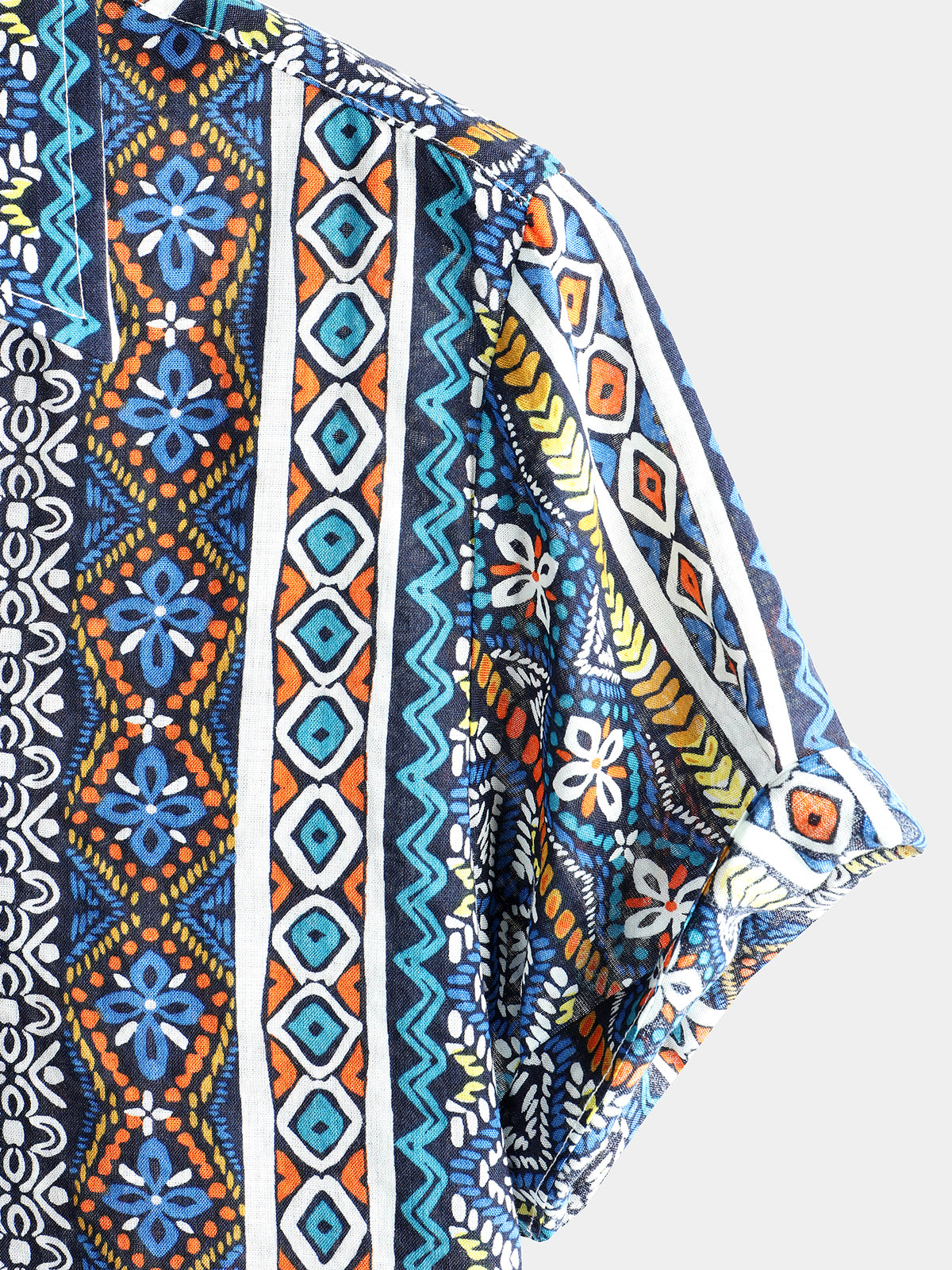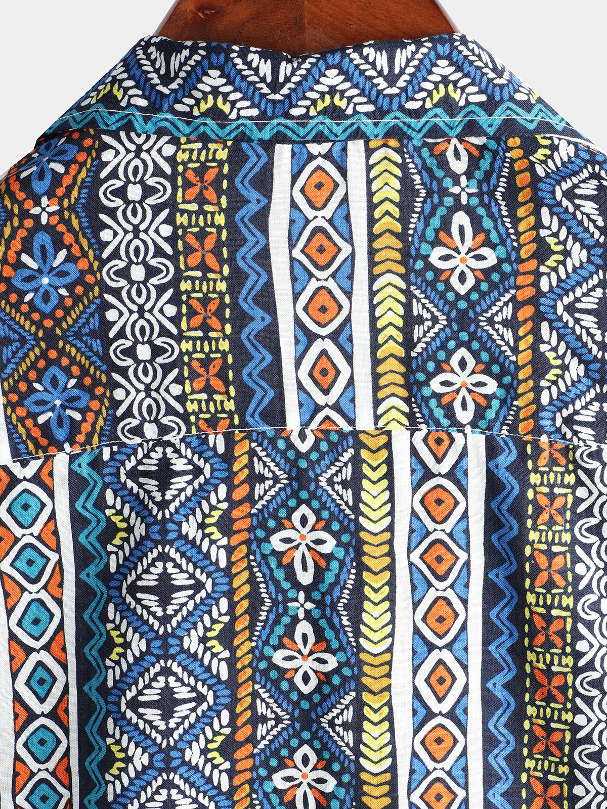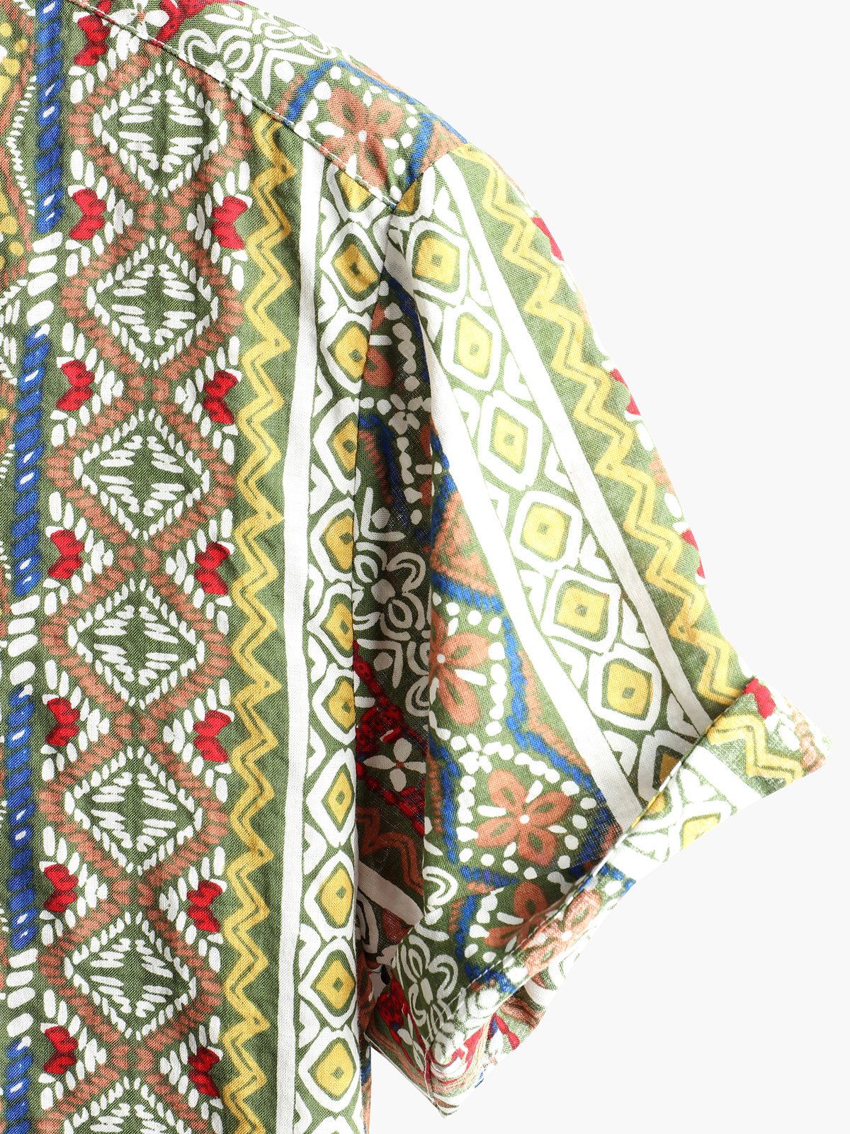 Men's Patchwork Printed Short Sleeve Cotton Shirt