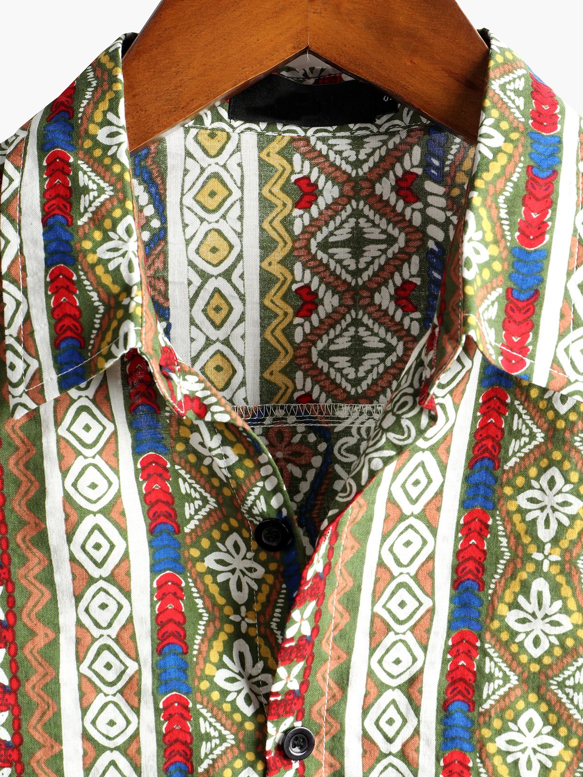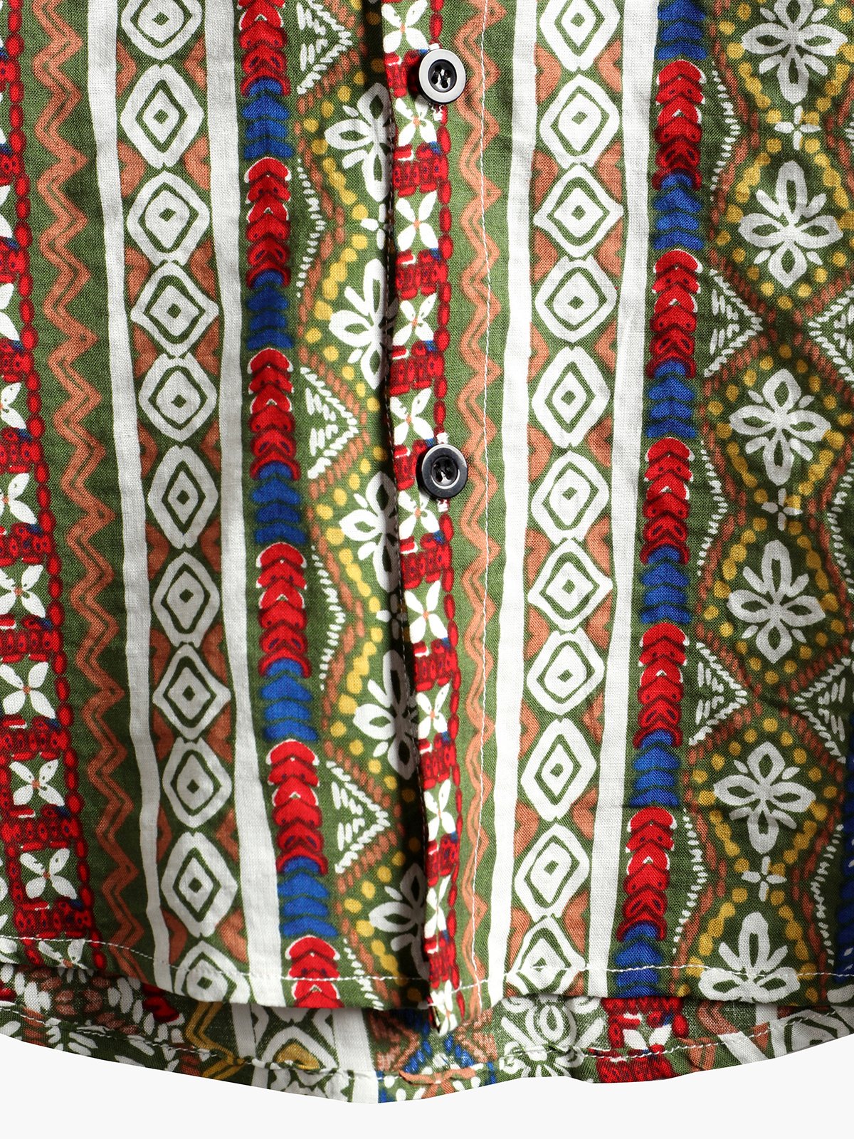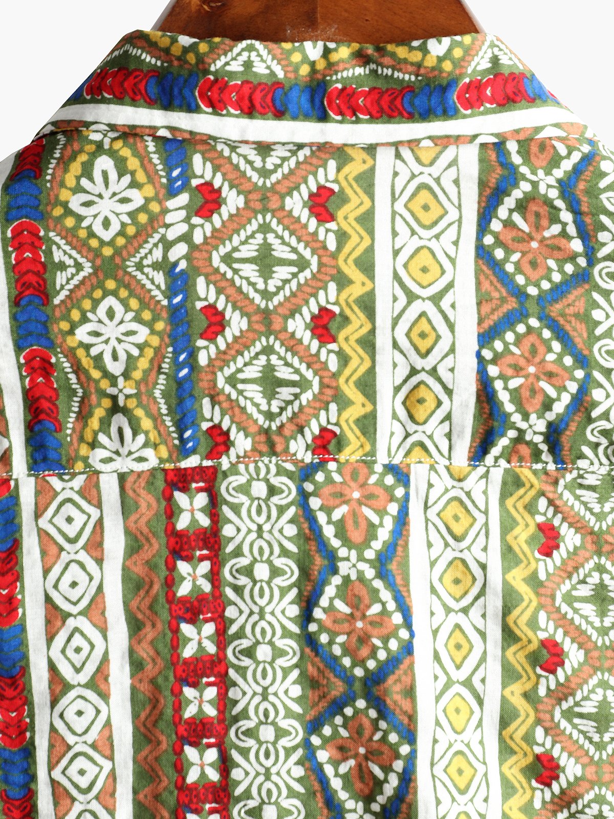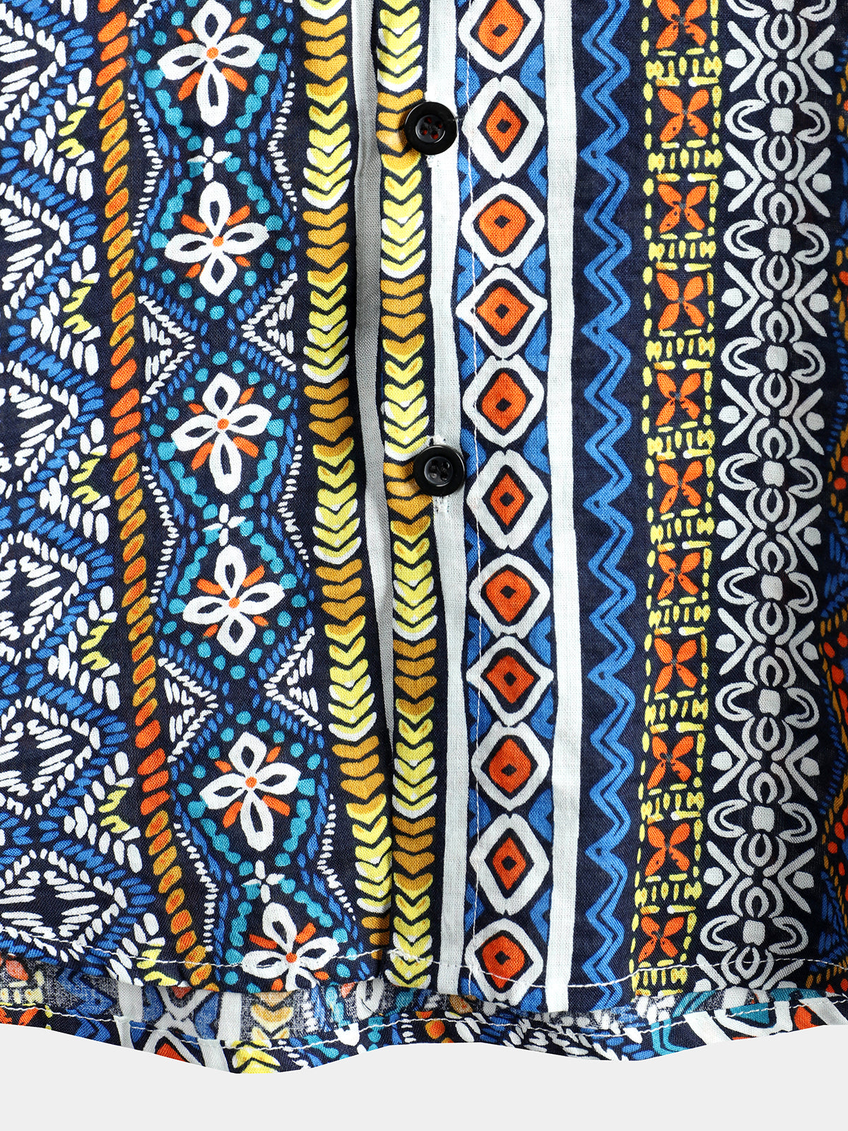 Men's Patchwork Printed Short Sleeve Cotton Shirt