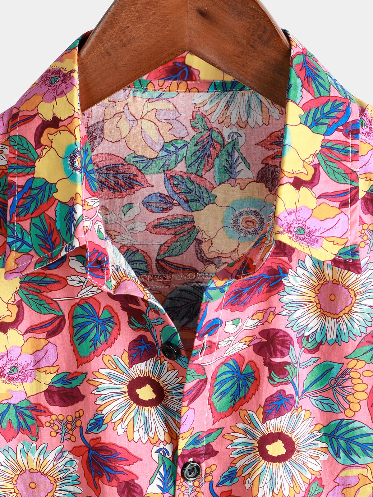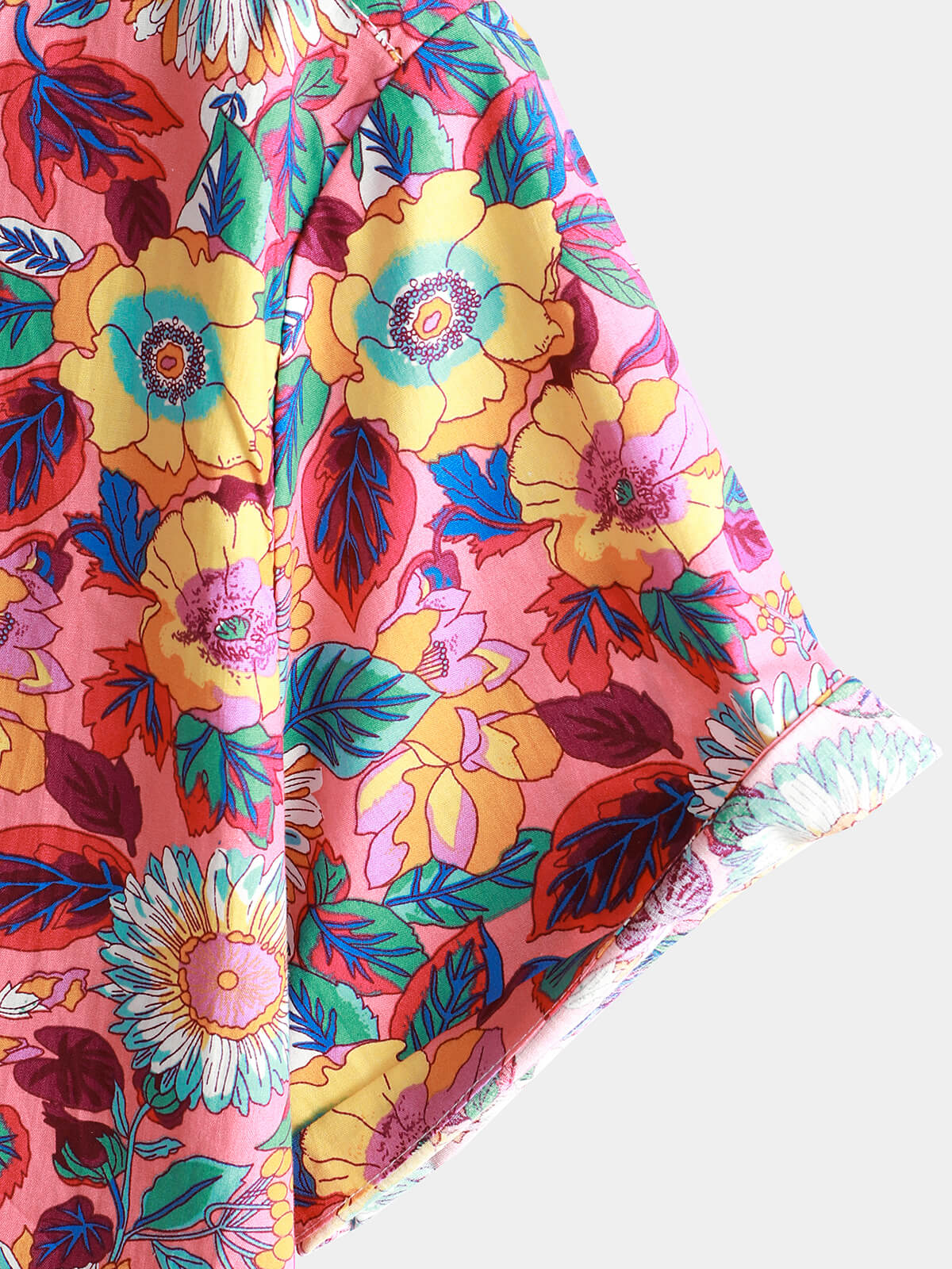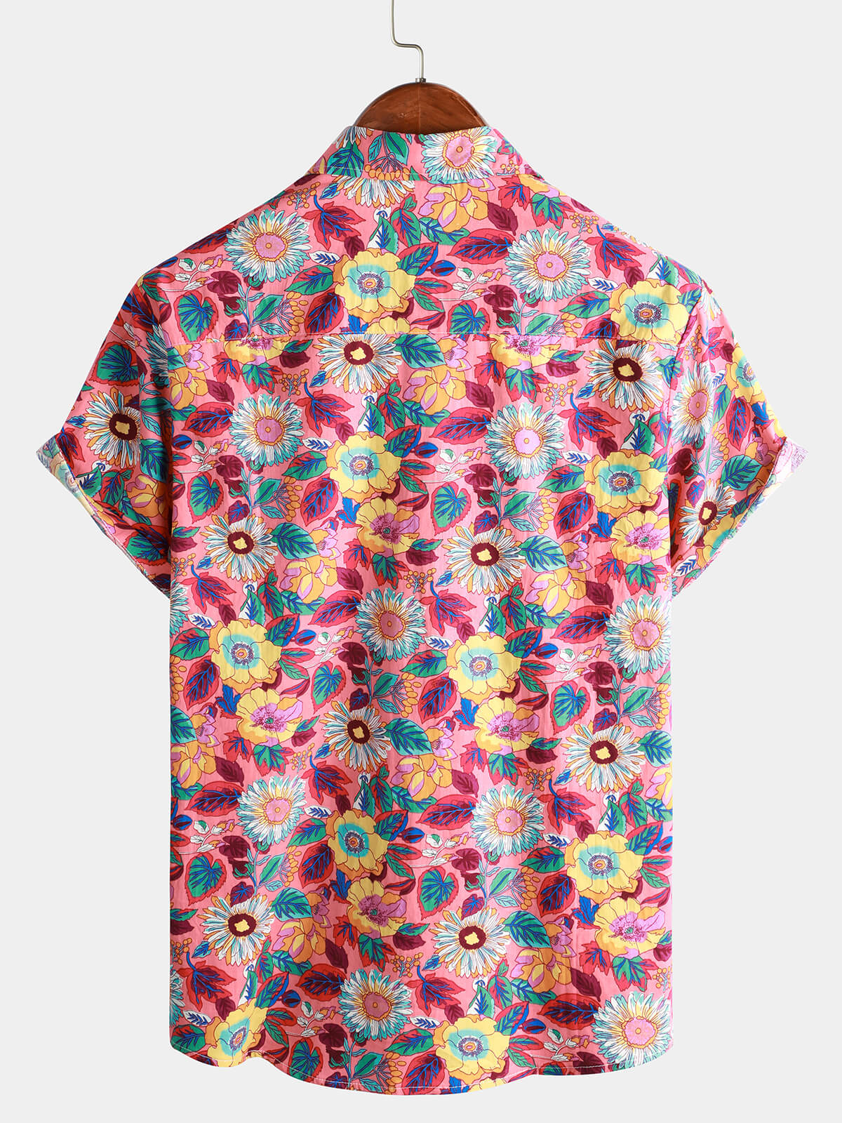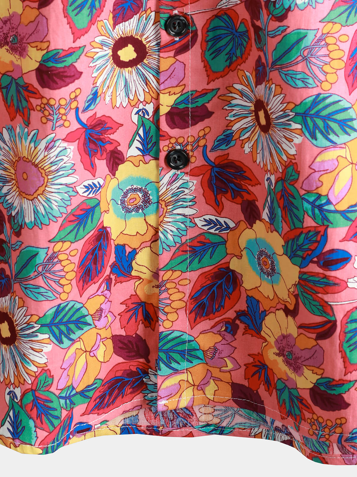 Men's Pink Floral 100% Cotton Breathable Summer Short Sleeve Hawaiian Button Up Shirt