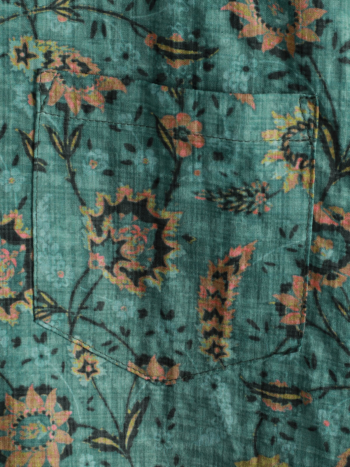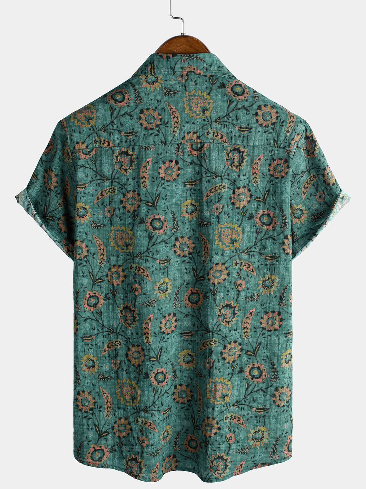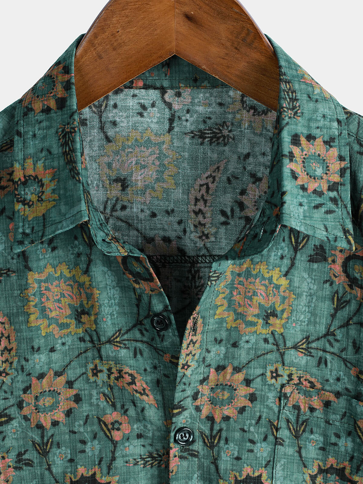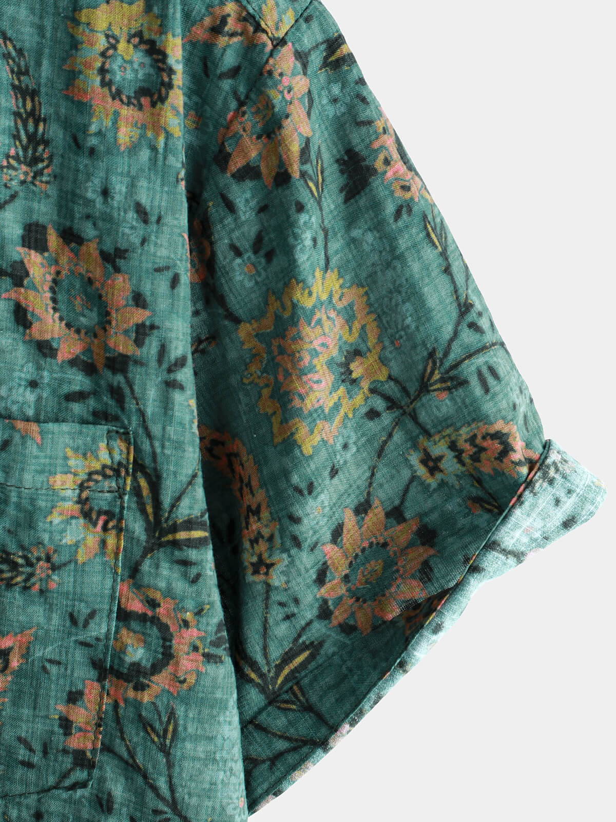 Men's Retro Floral Print Breathable Cotton Pocket Short Sleeve Shirt