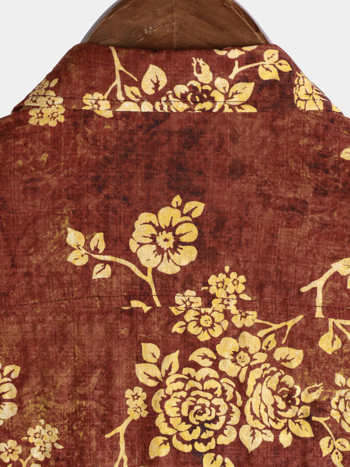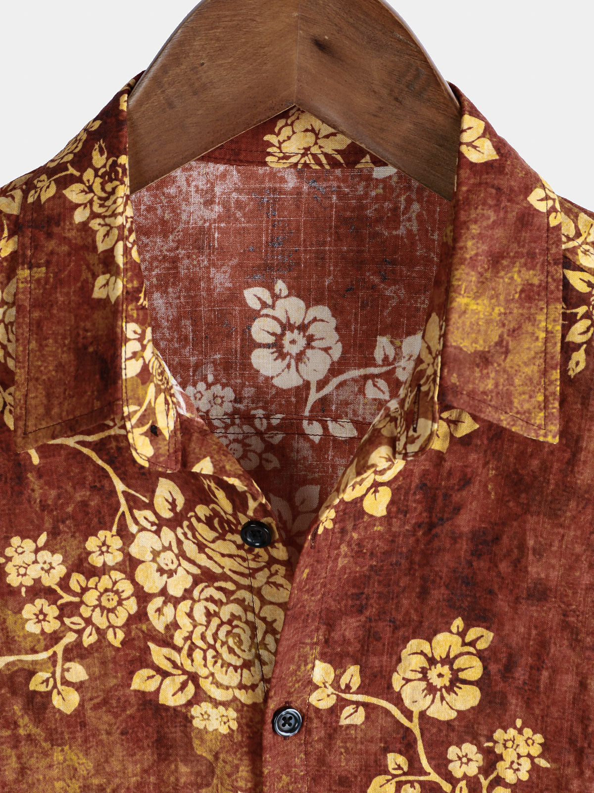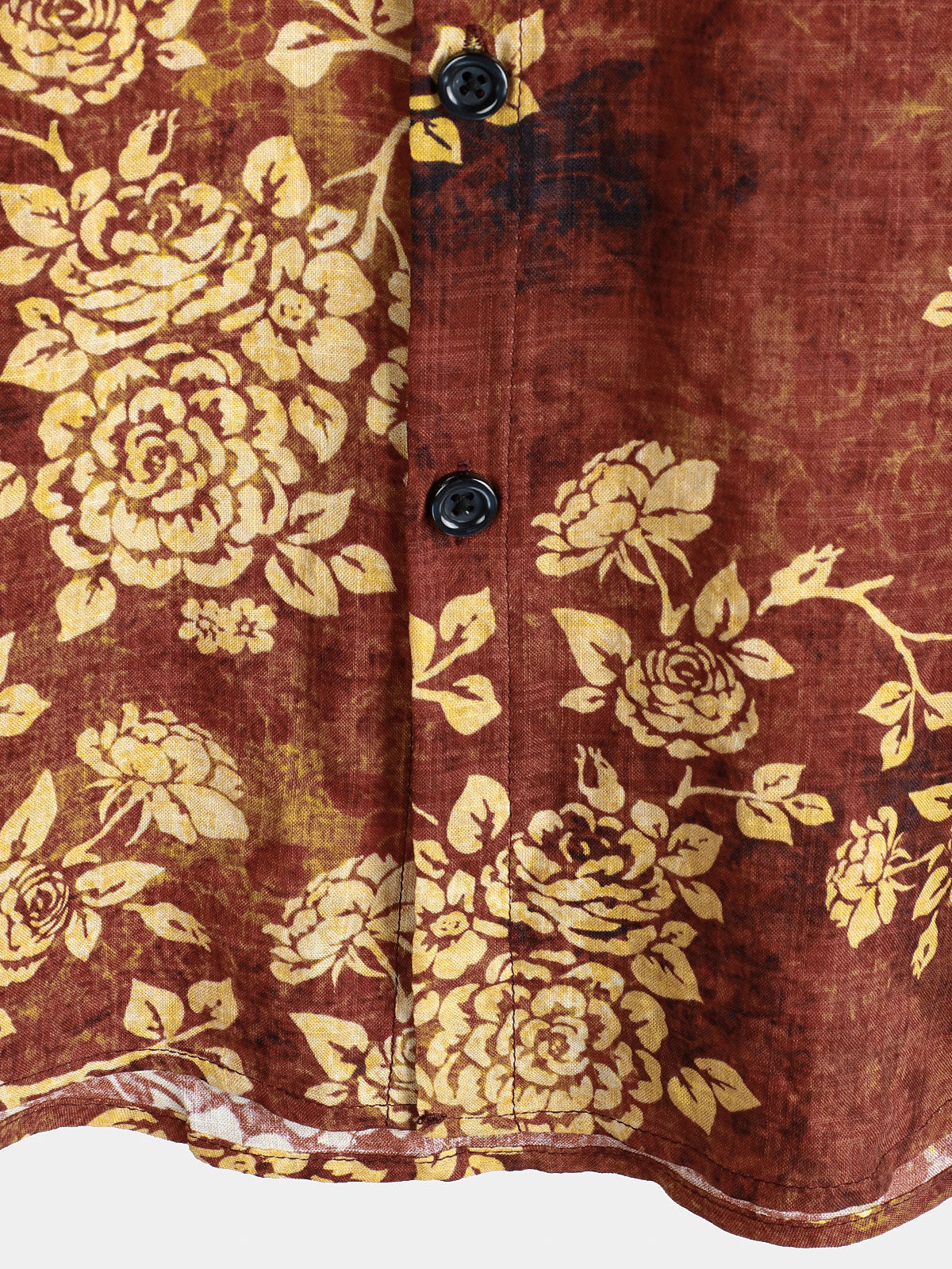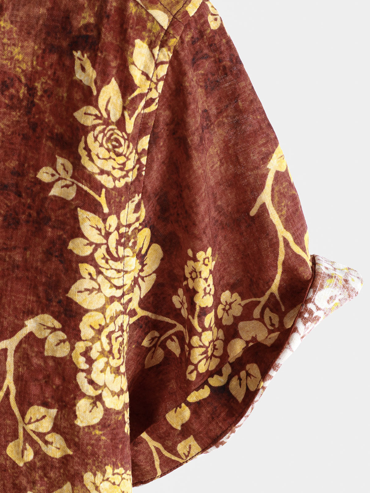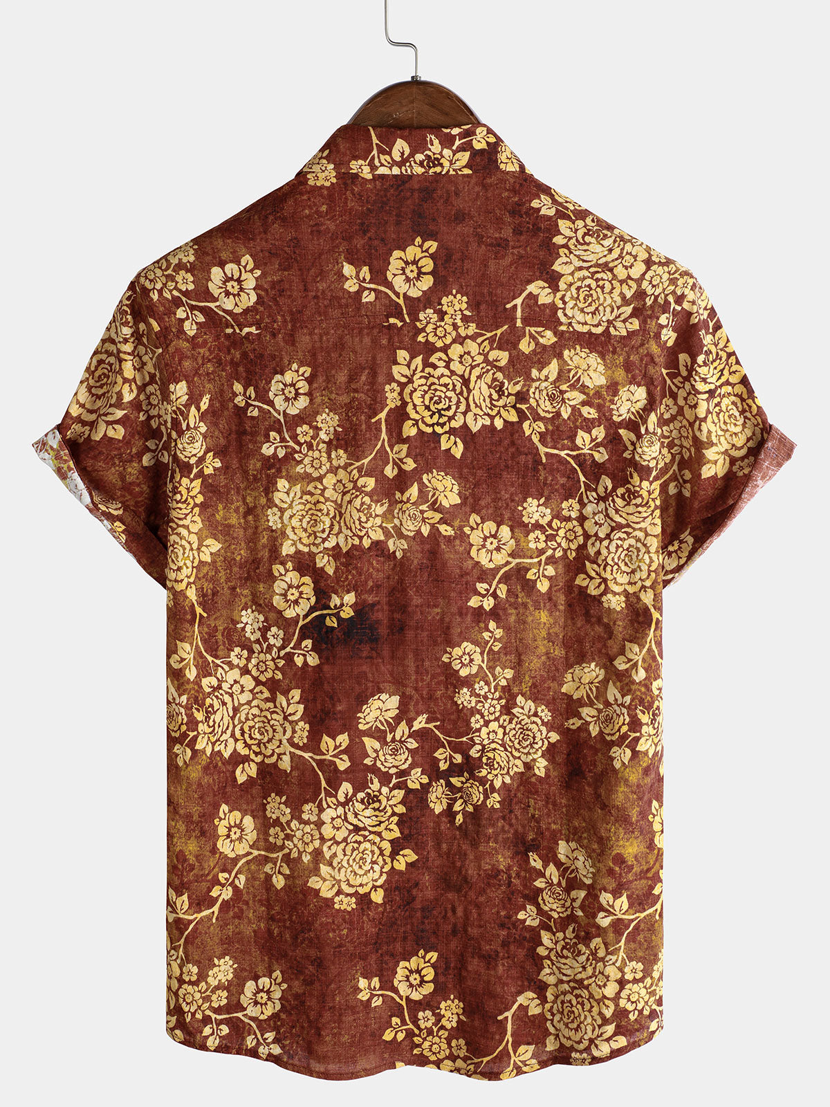Men's Retro Floral Print Holiday Short Sleeve Shirt
