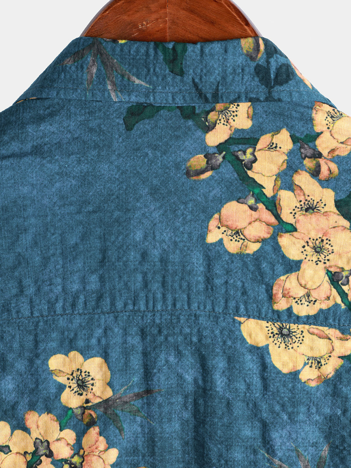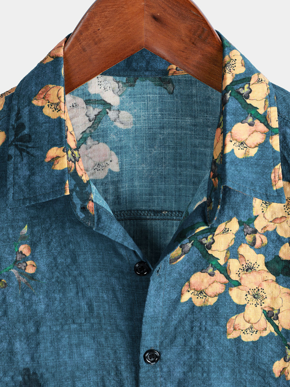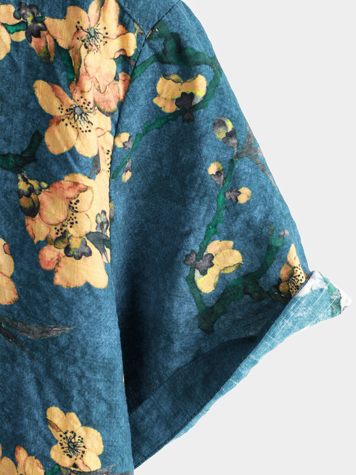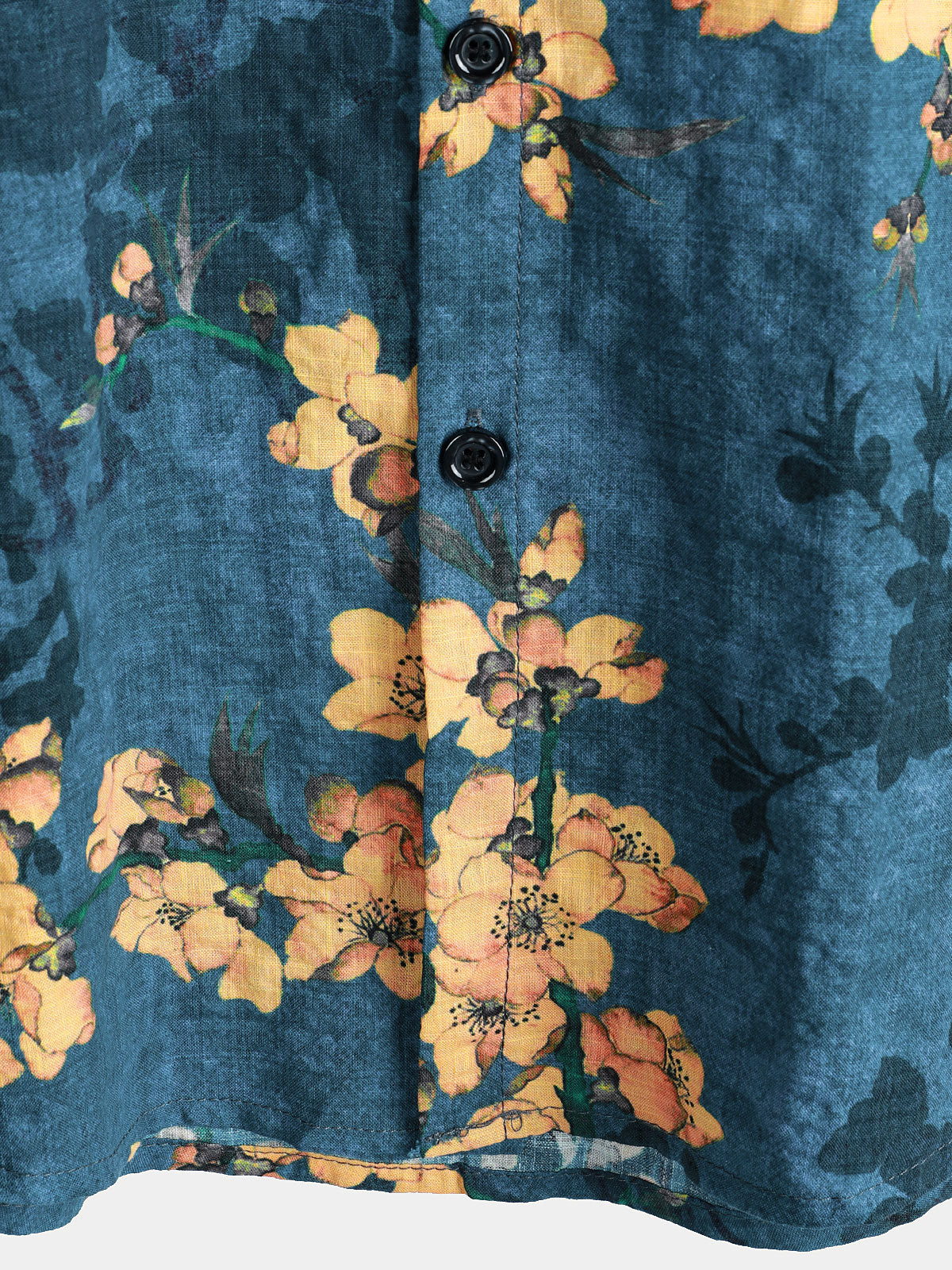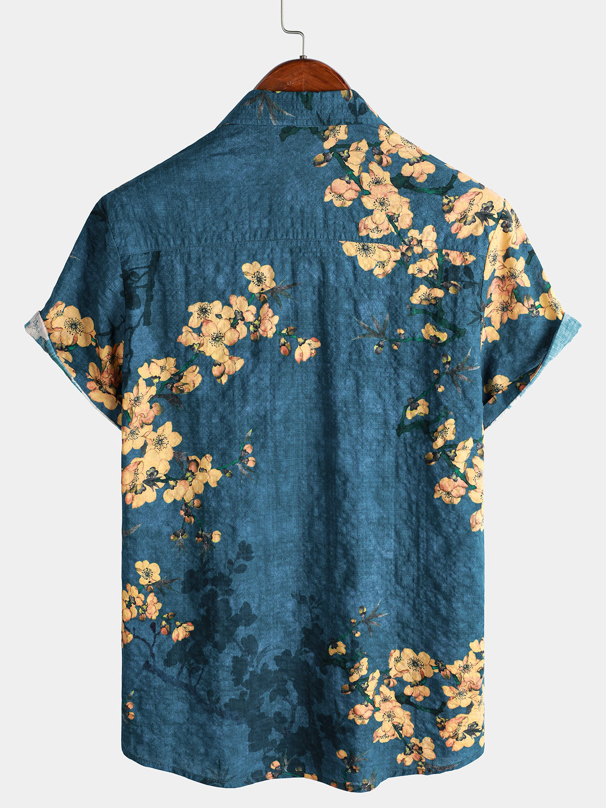 Men's Retro Floral Print Short Sleeve Casual Shirt