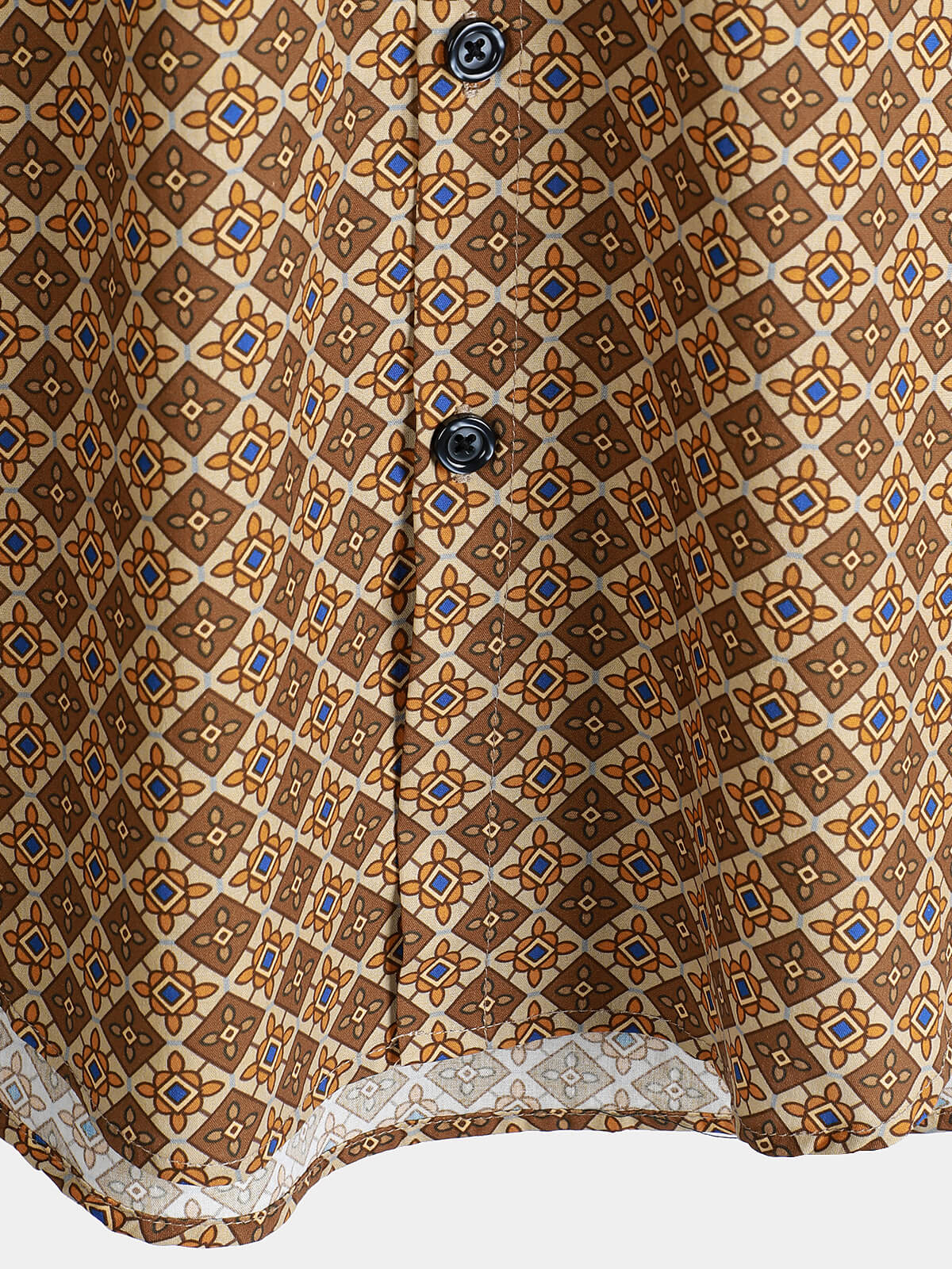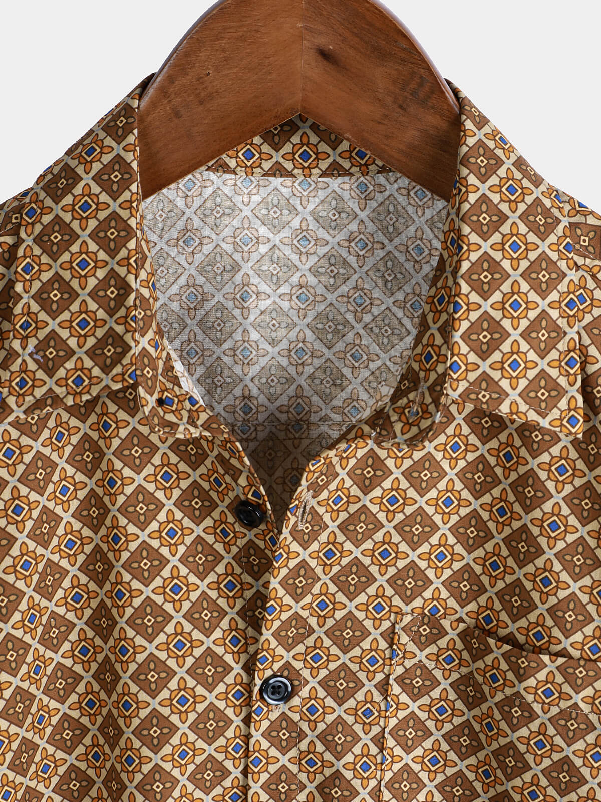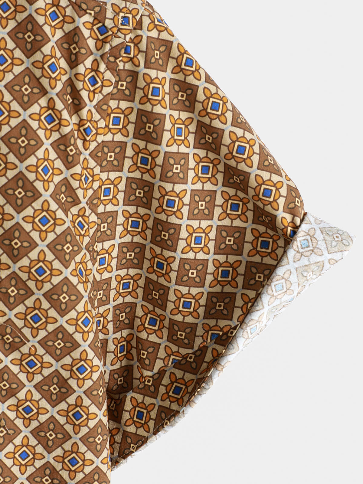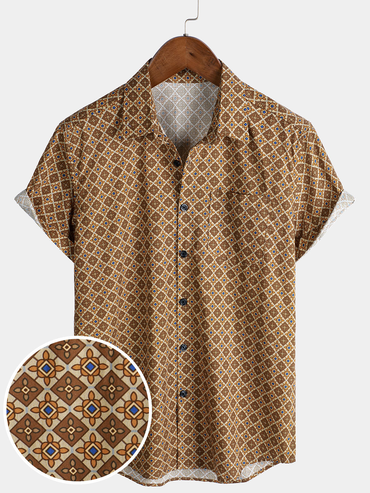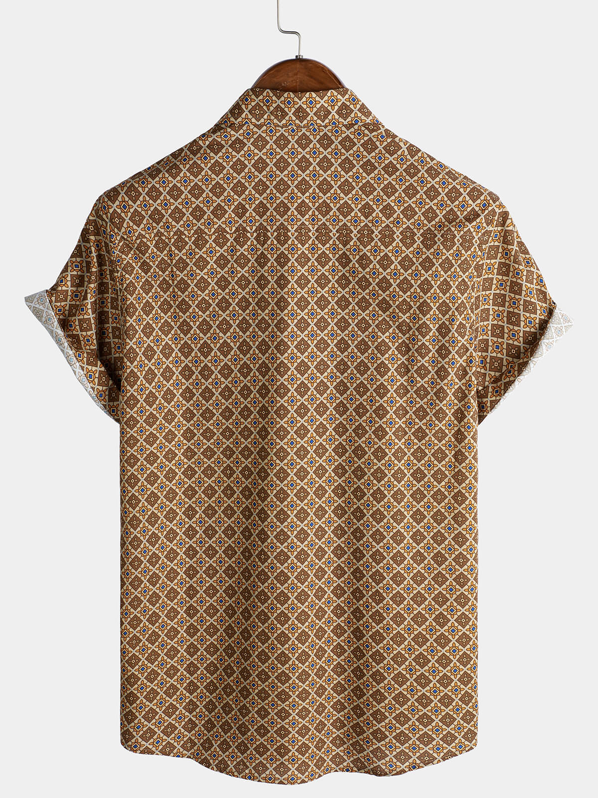Men's Retro Geometric Print Cotton Short Sleeve Shirt
