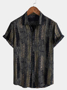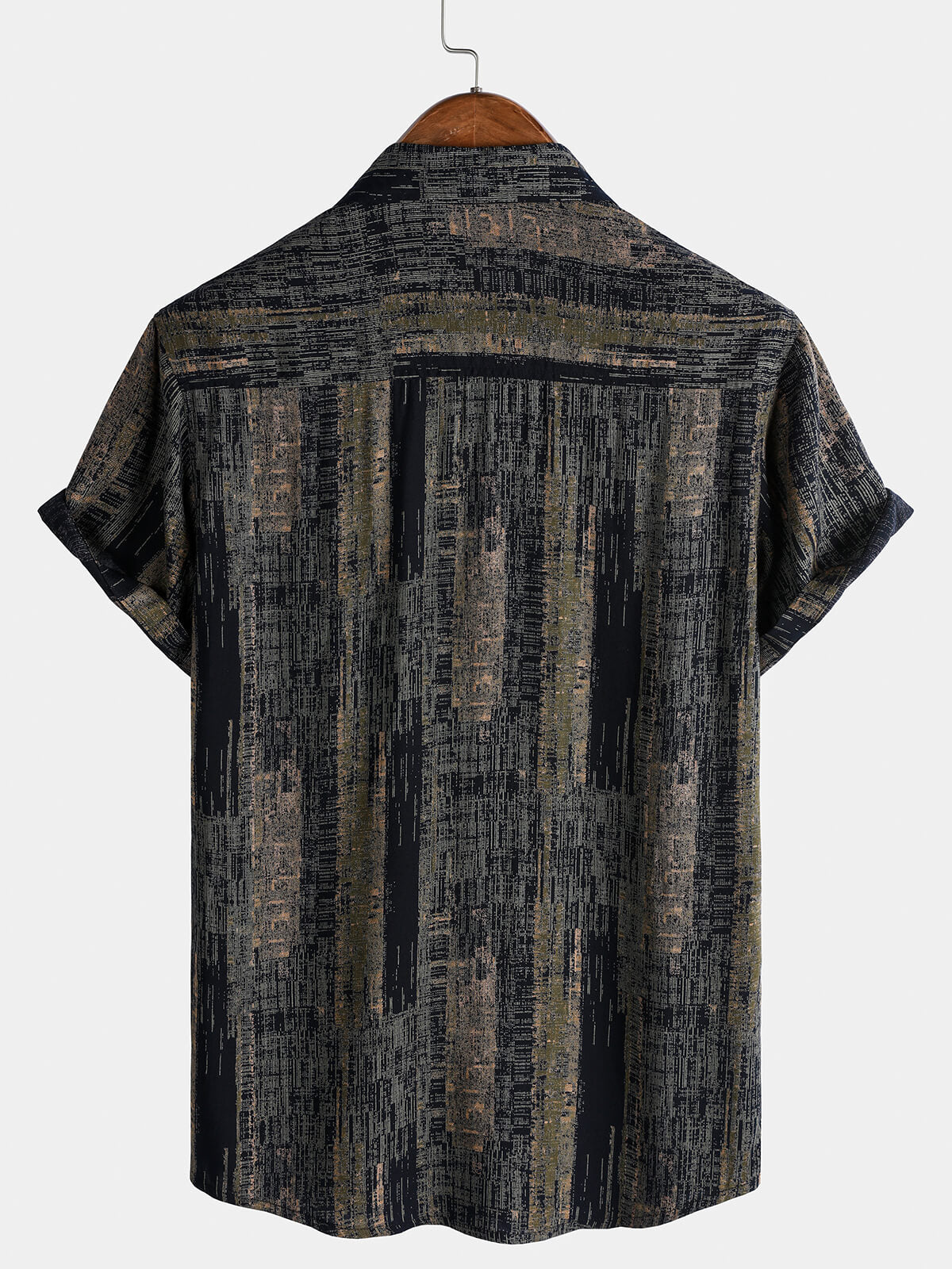 Men's Retro Striped Print Holiday Short Sleeve Shirt