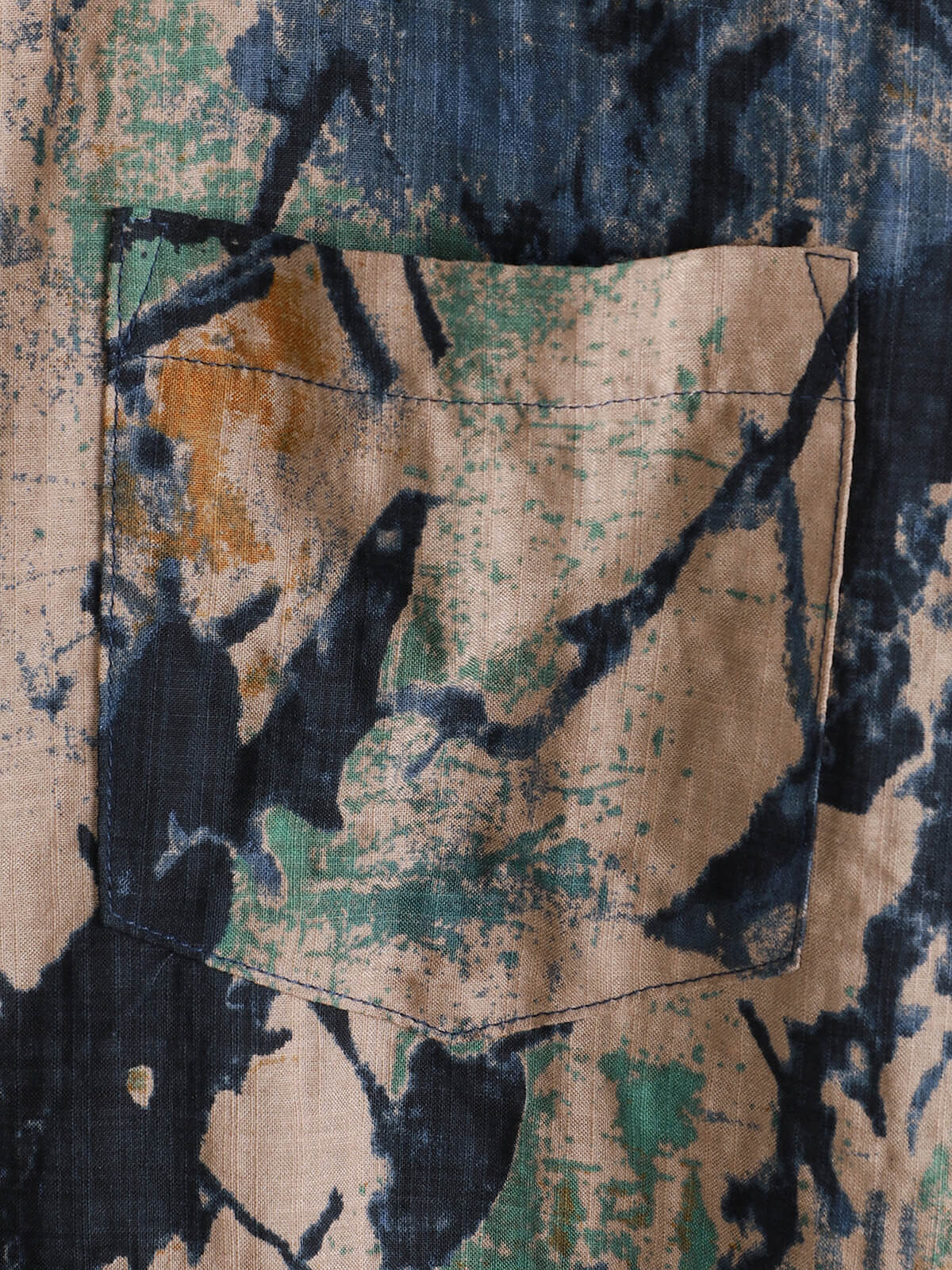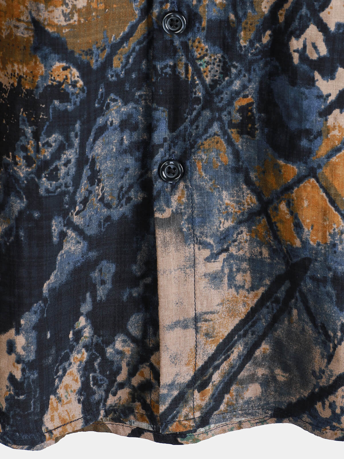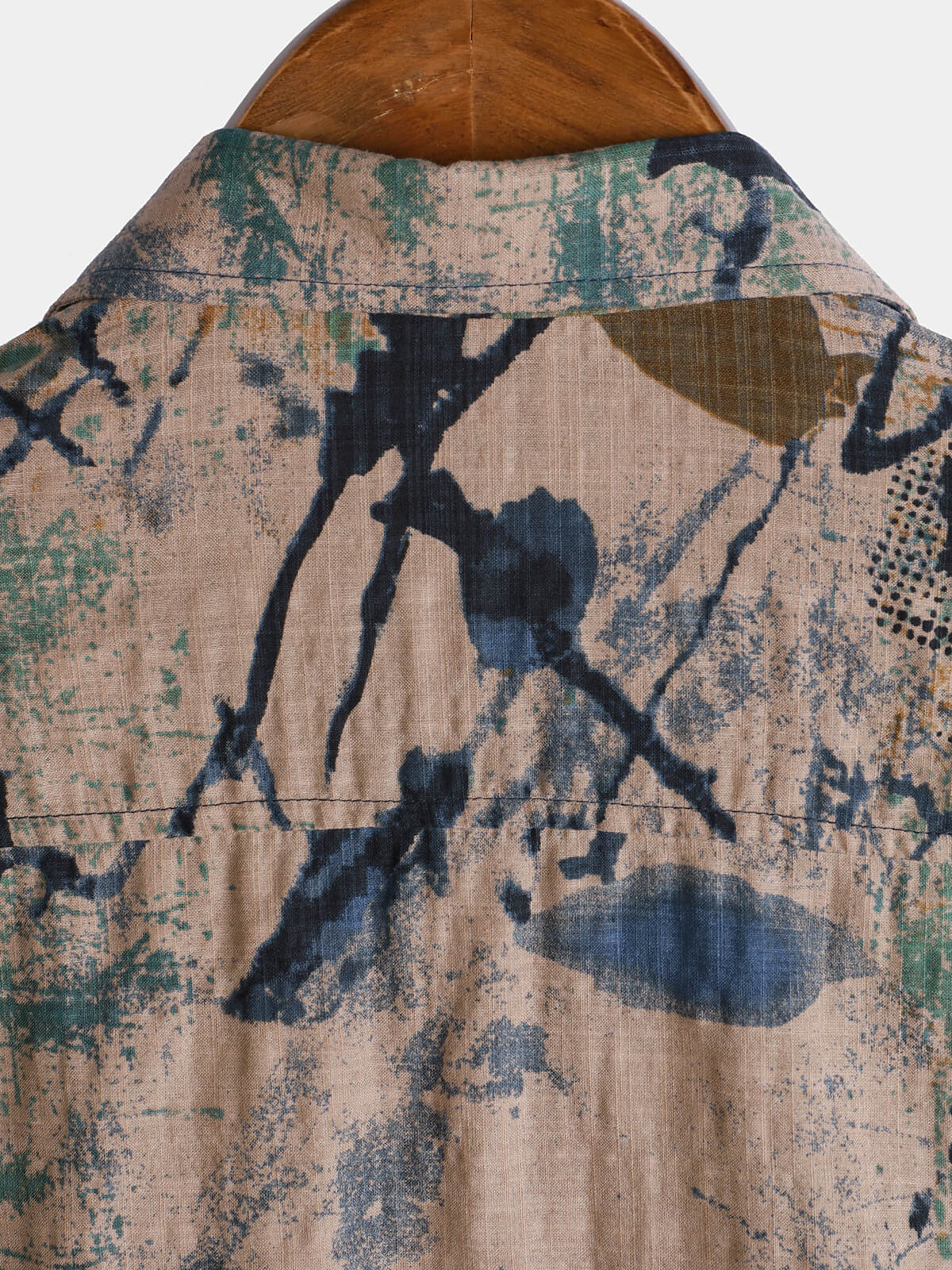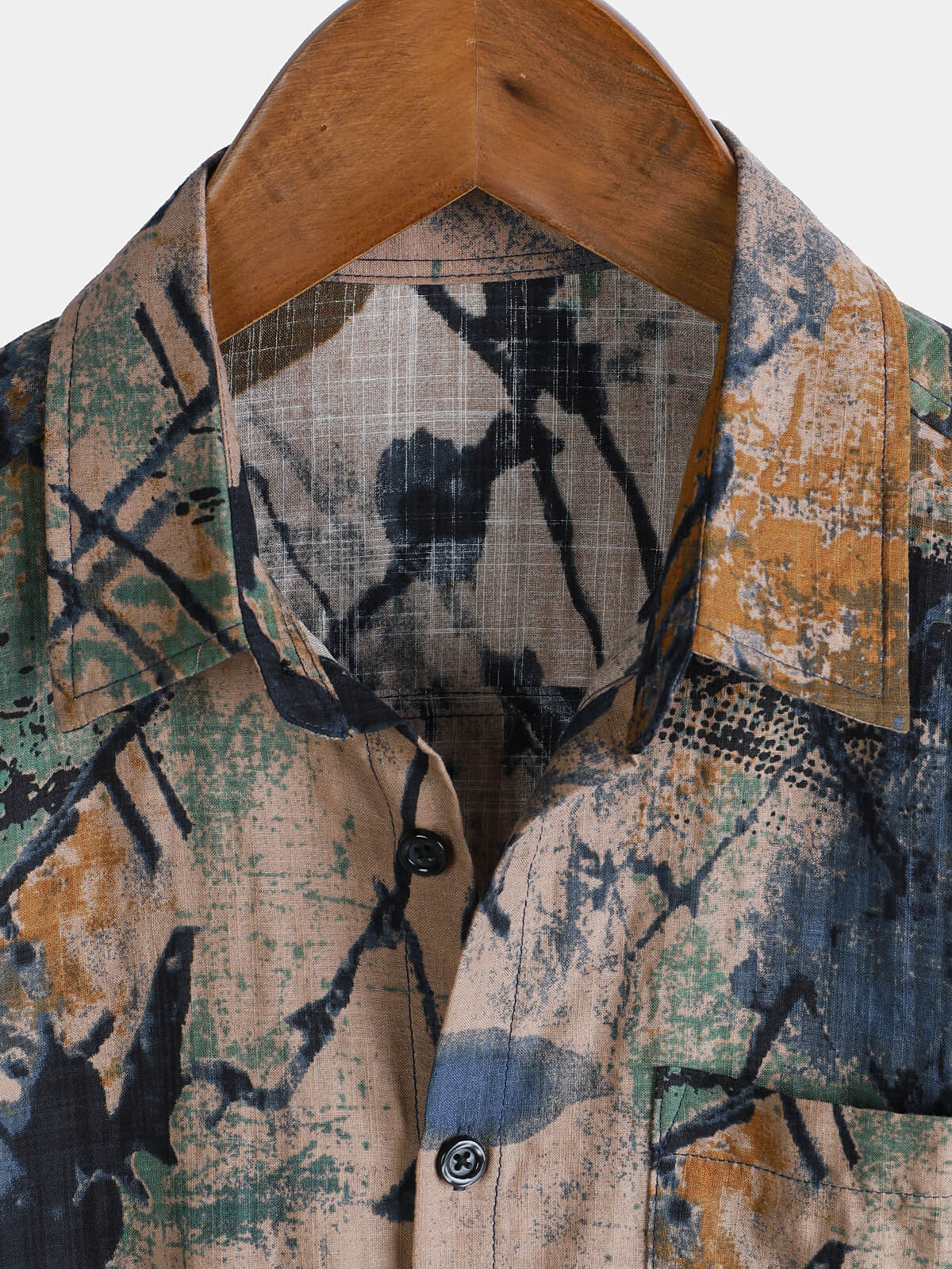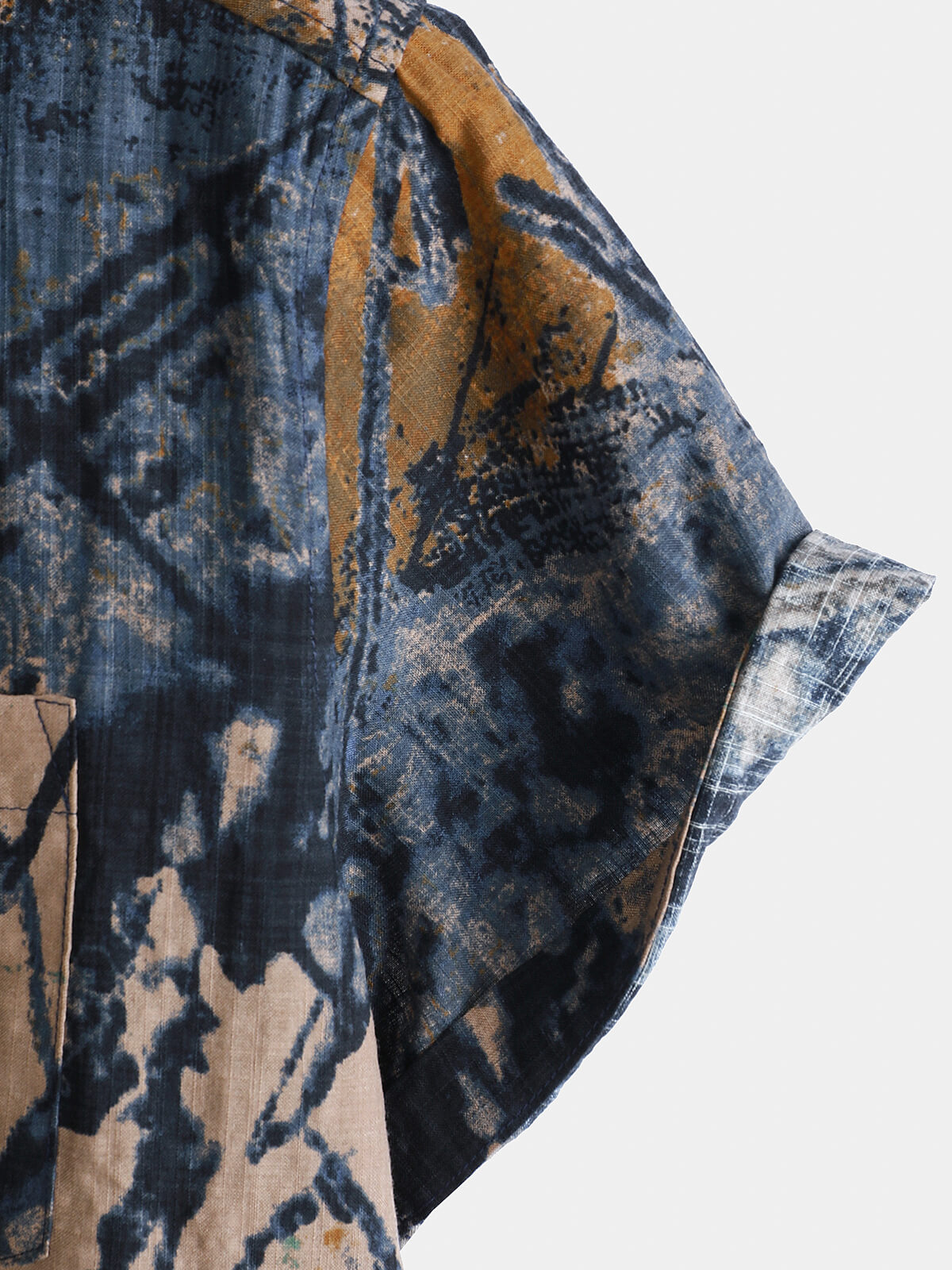 Men's Summer Abstract Pocket Holiday Button Up Short Sleeve Shirt
