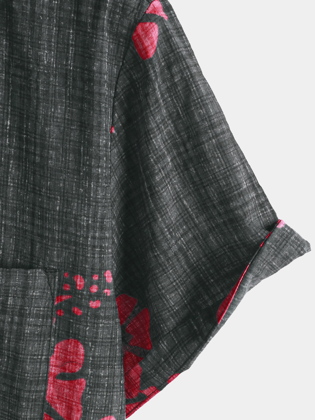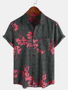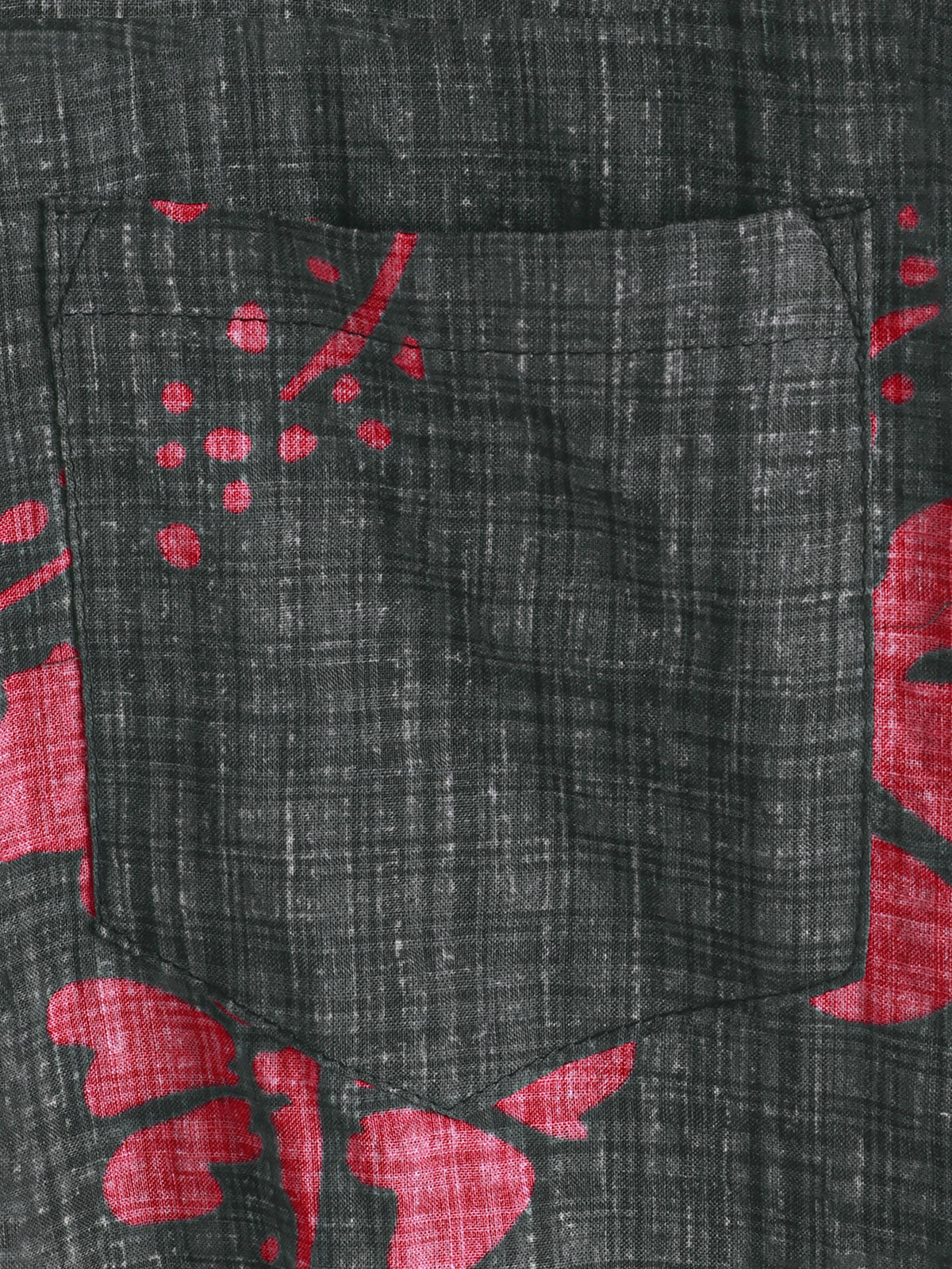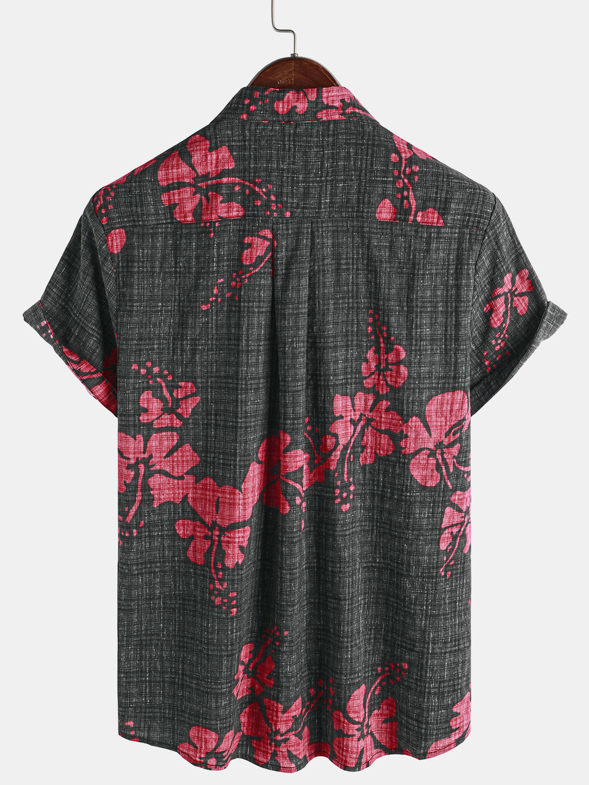 Men's Summer Red Floral Hawaiian Short Sleeve Shirt