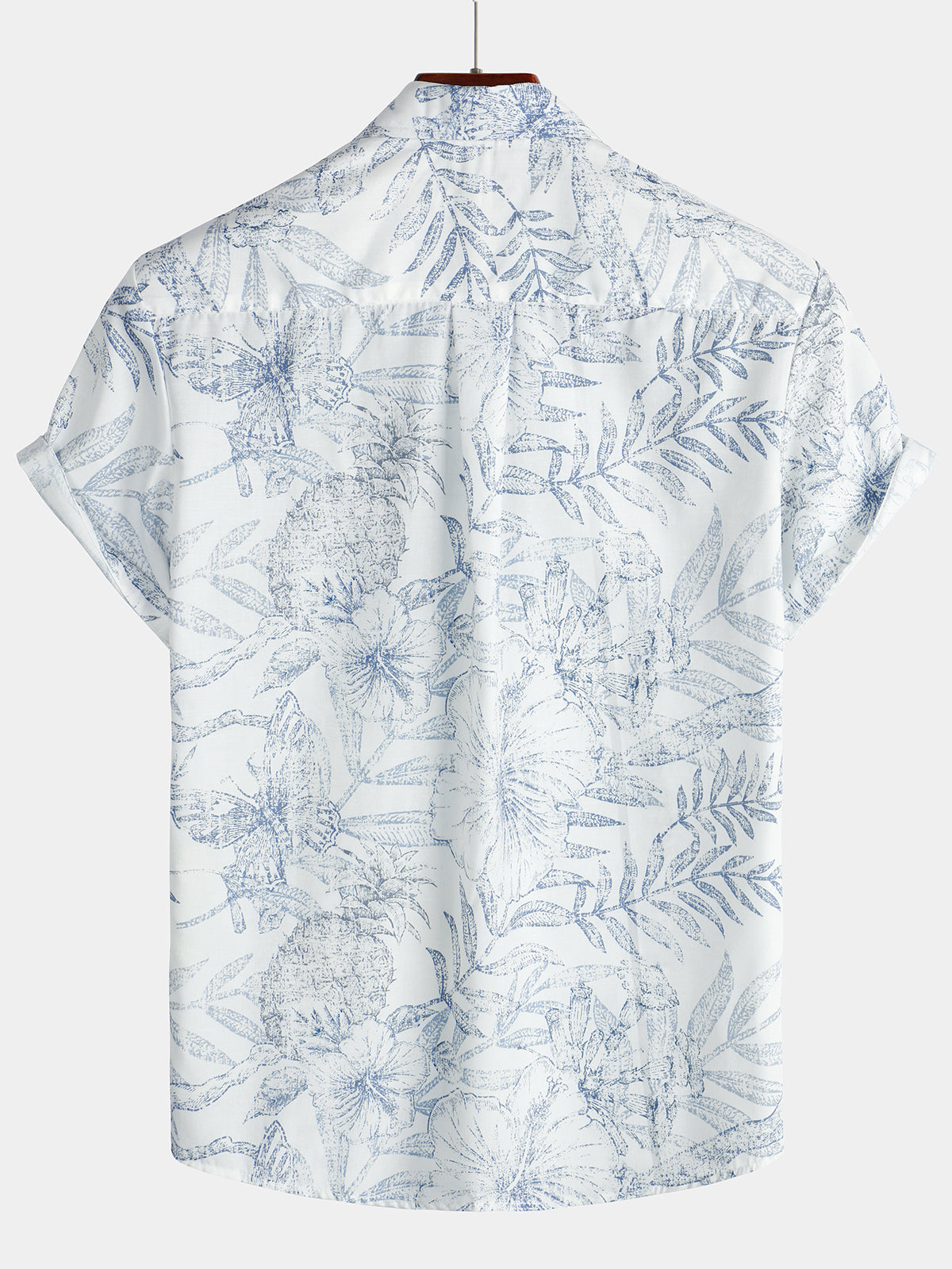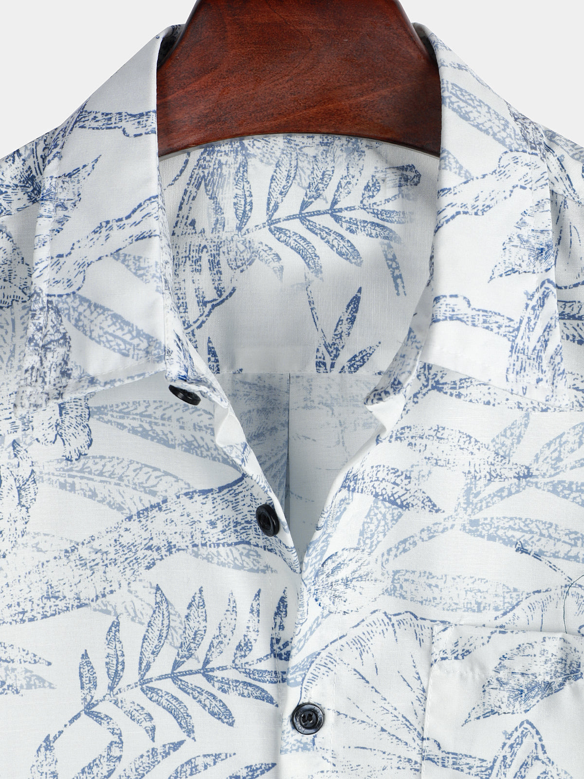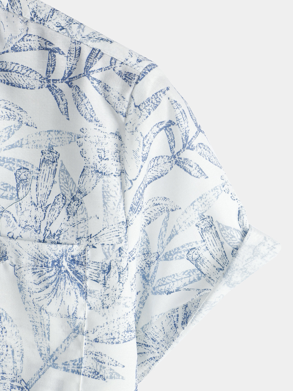Men's Summer Retro Floral Print Pocket Floral Short Sleeve Button Up White Hawaiian Shirt