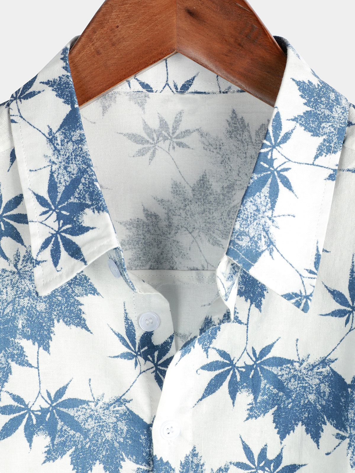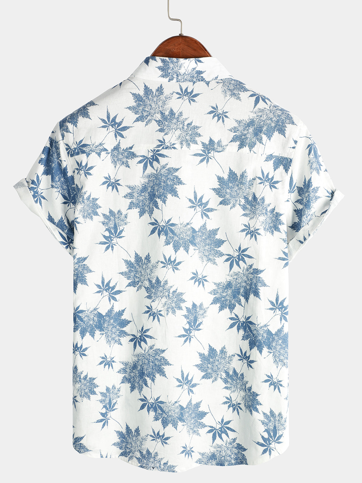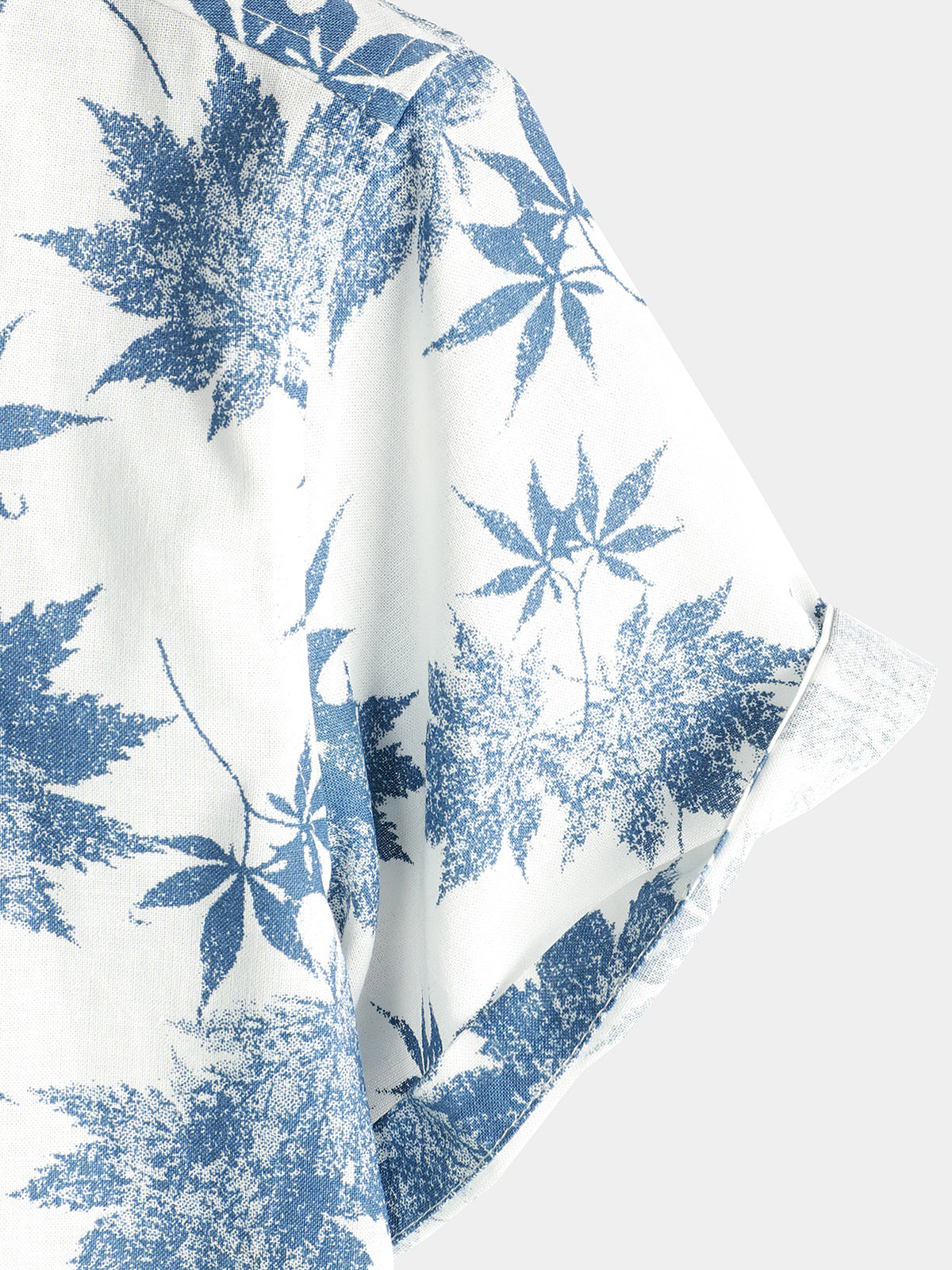 Men's Cotton Linen Maple Leaf Print Breathable Short Sleeve Shirt