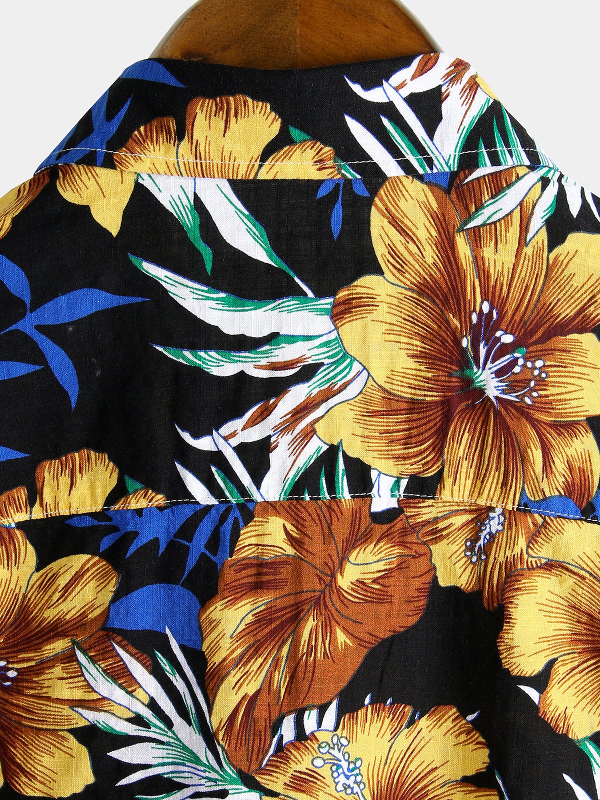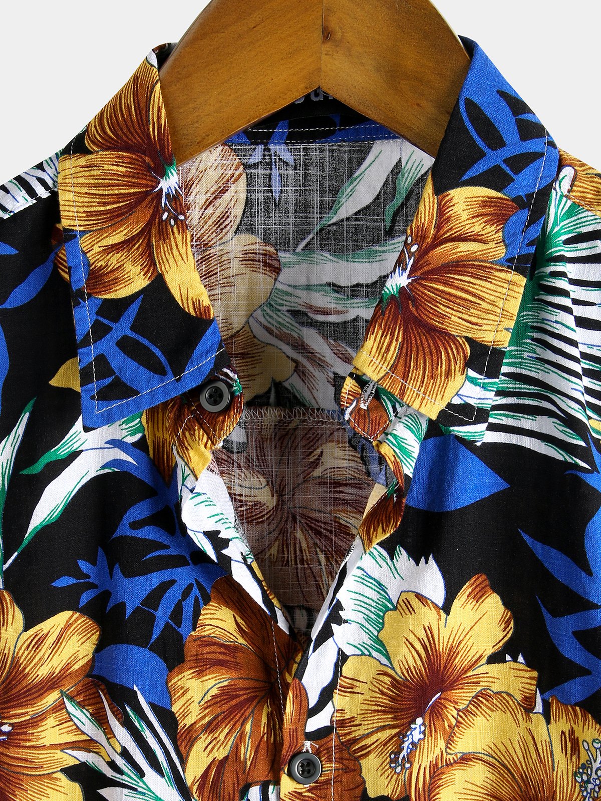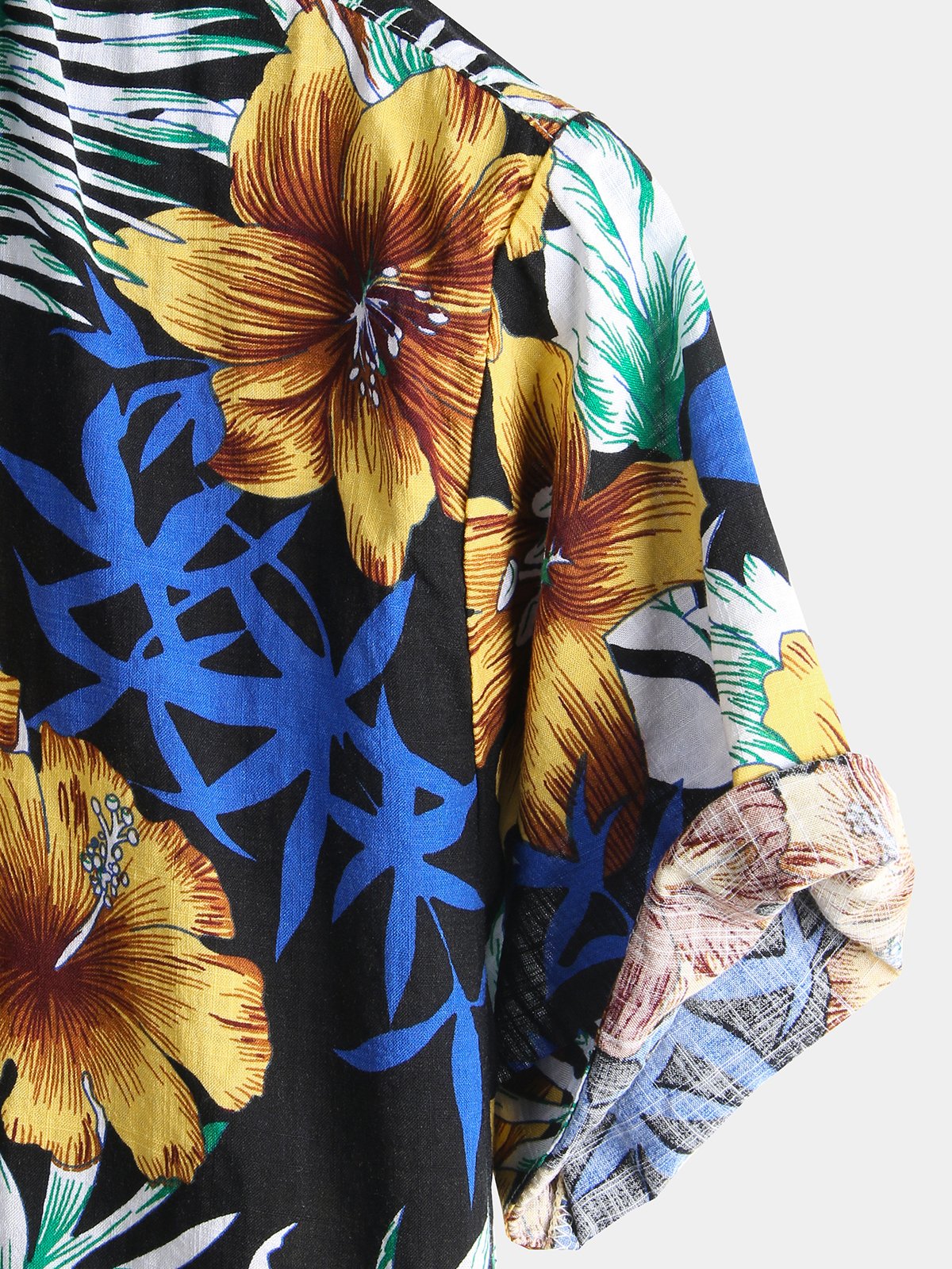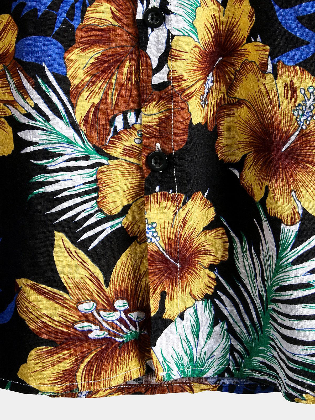 Men's Flower Tropical Hawaii Cotton Short Sleeve Shirt