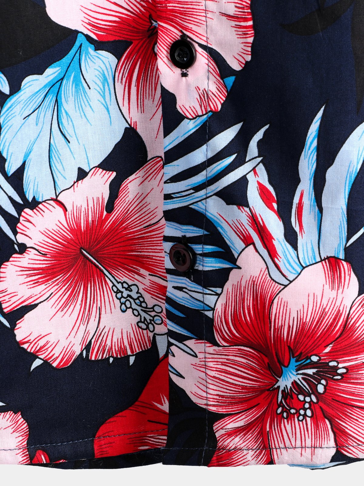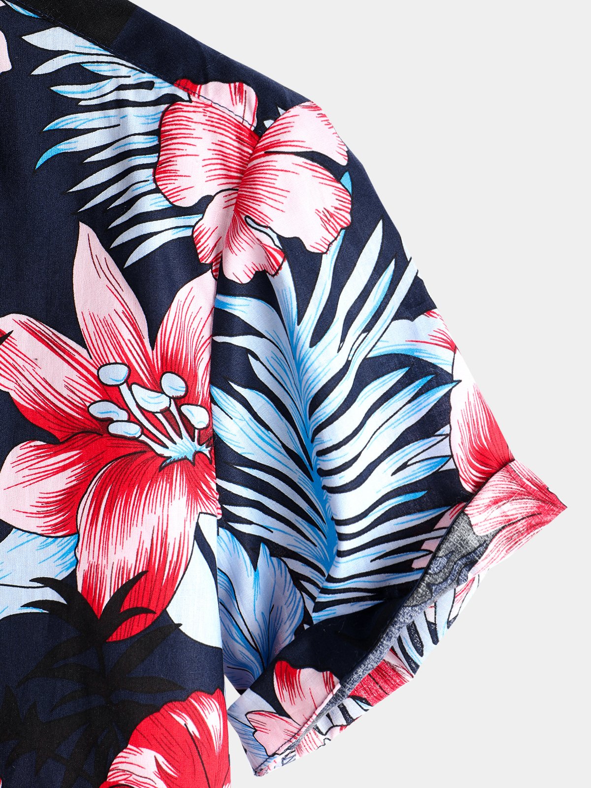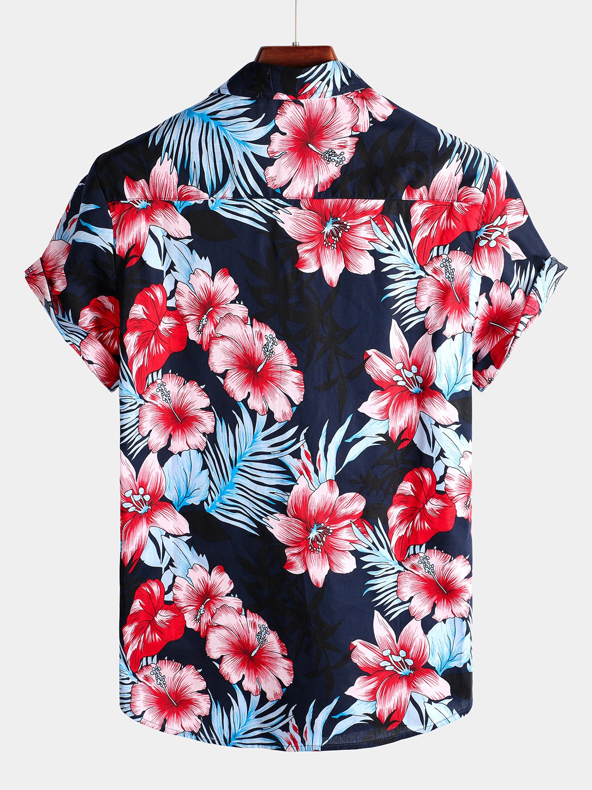 Men's Hawaii Tropical Plant Print Floral Cotton Shirt