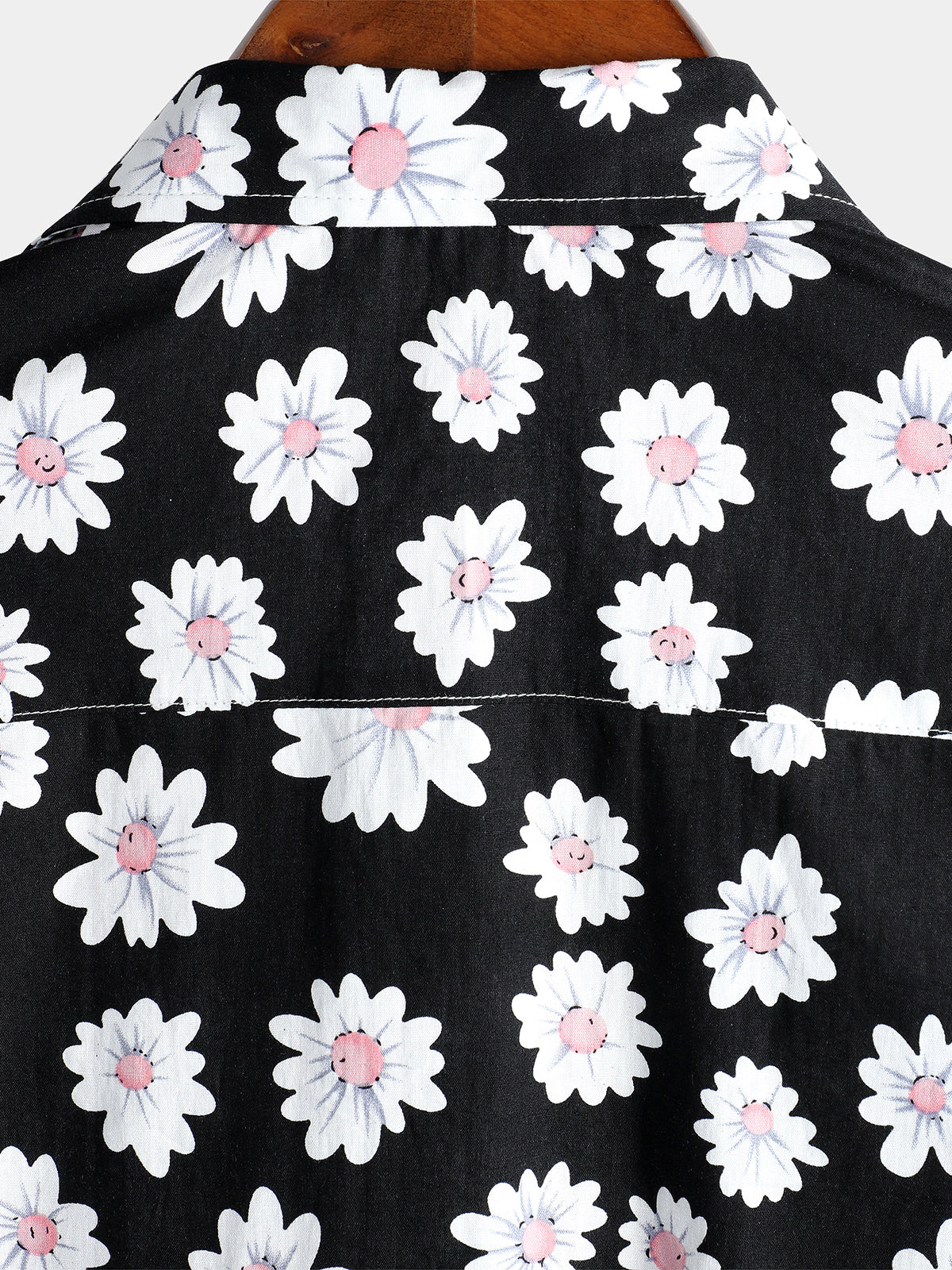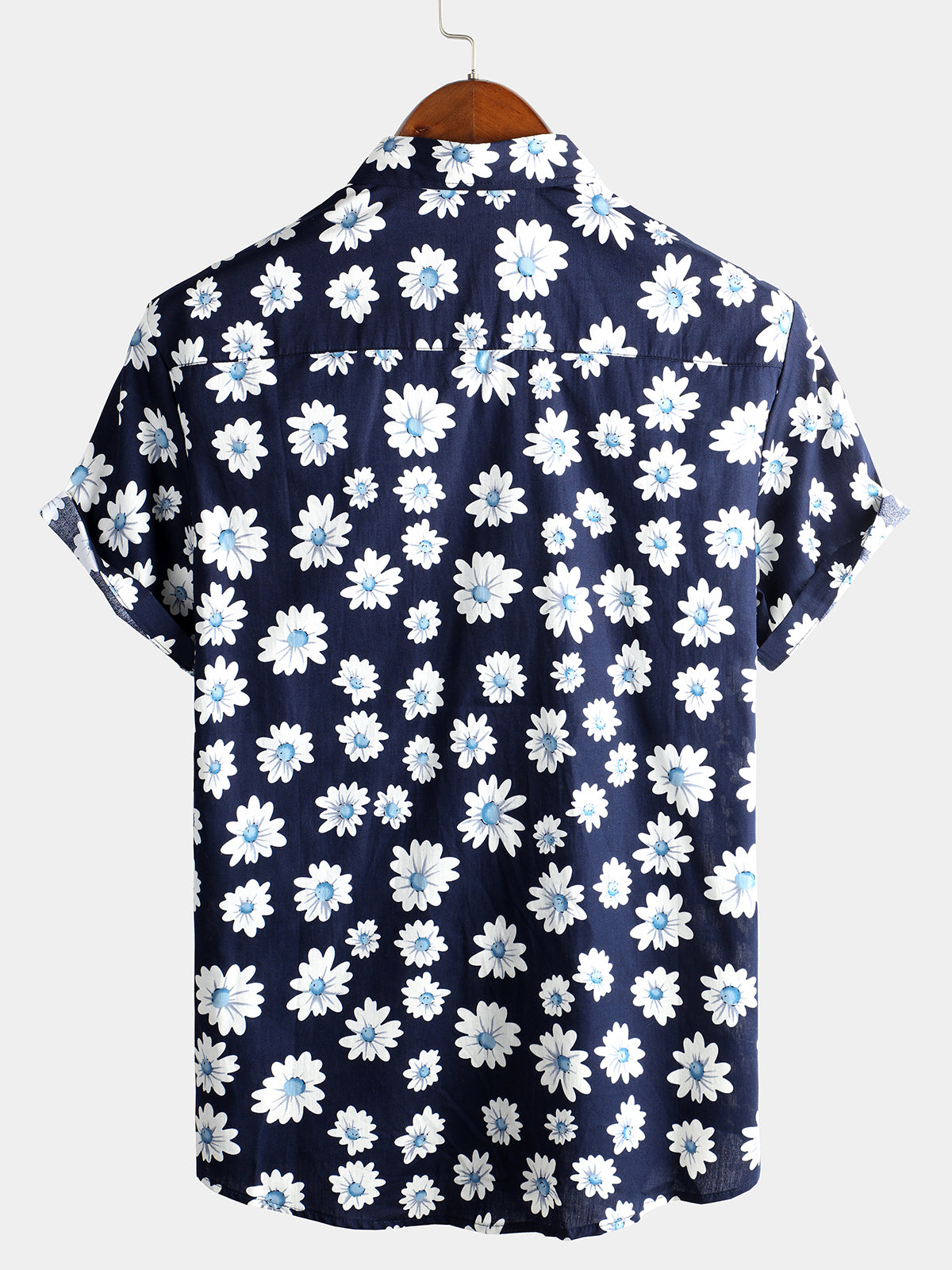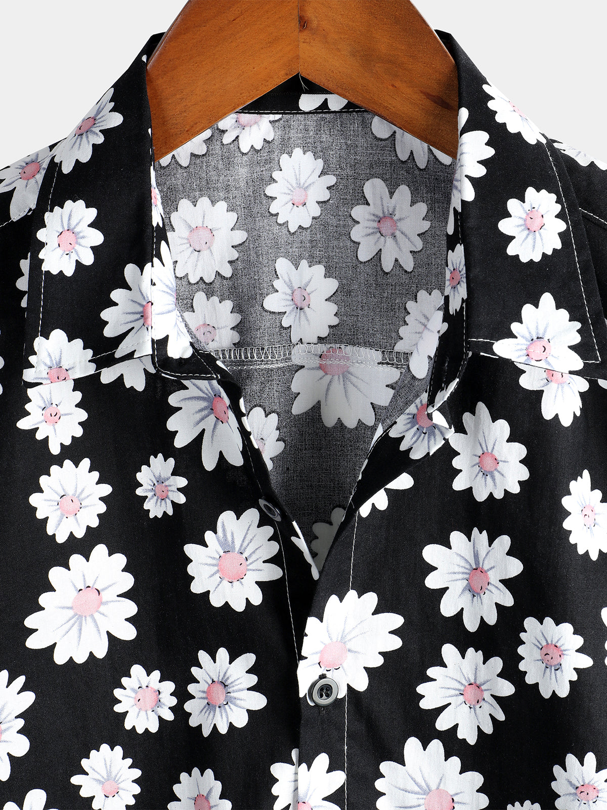 Men's Floral Daisy Print Tropical Hawaiian Cotton Flower Shirt