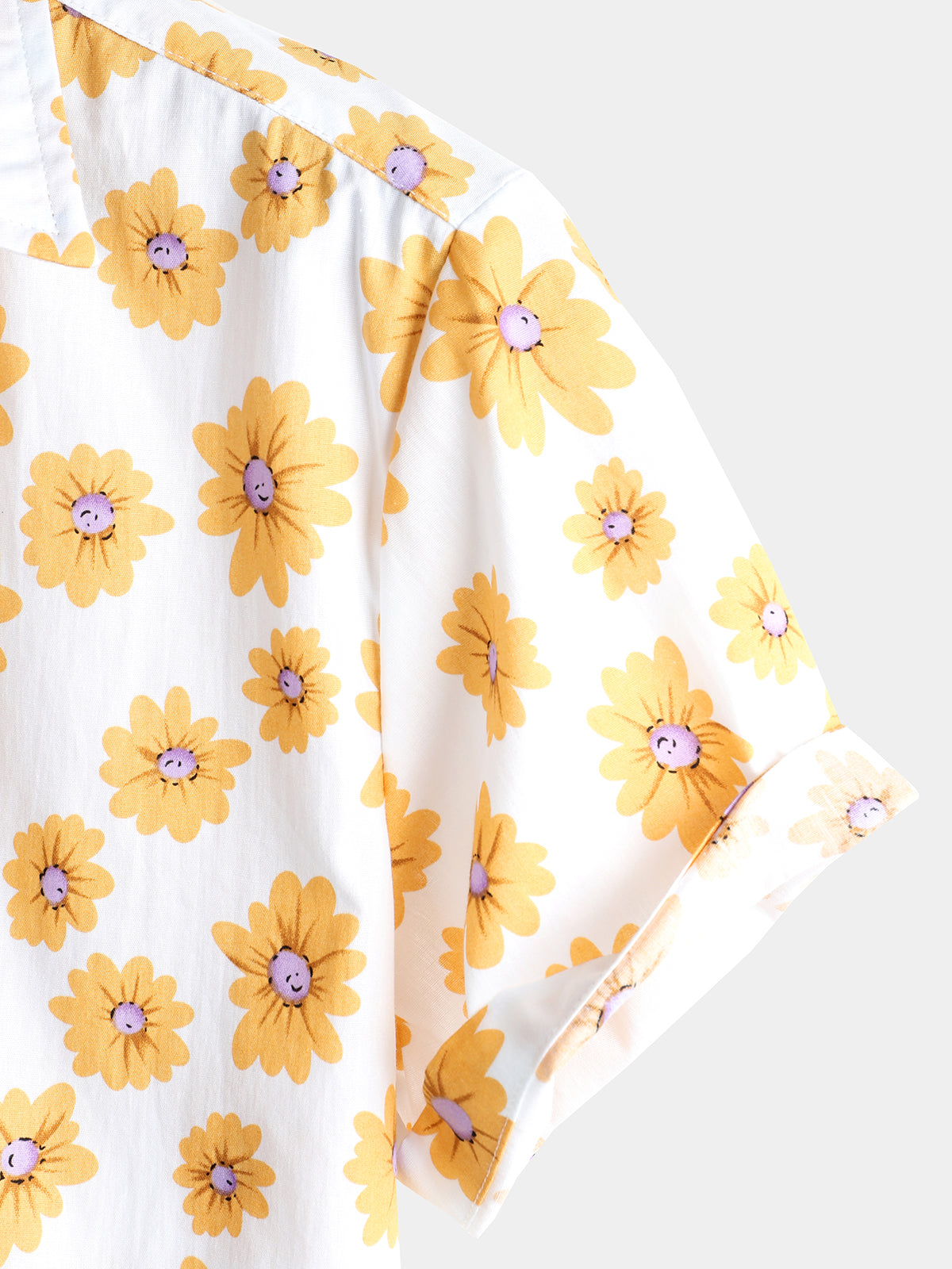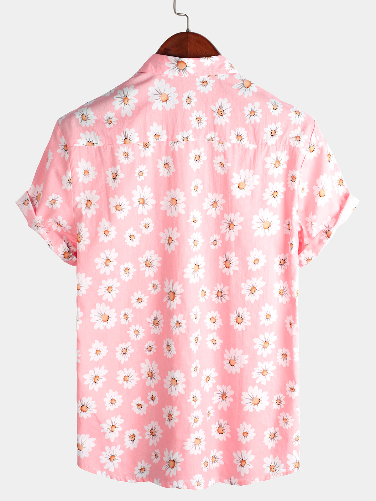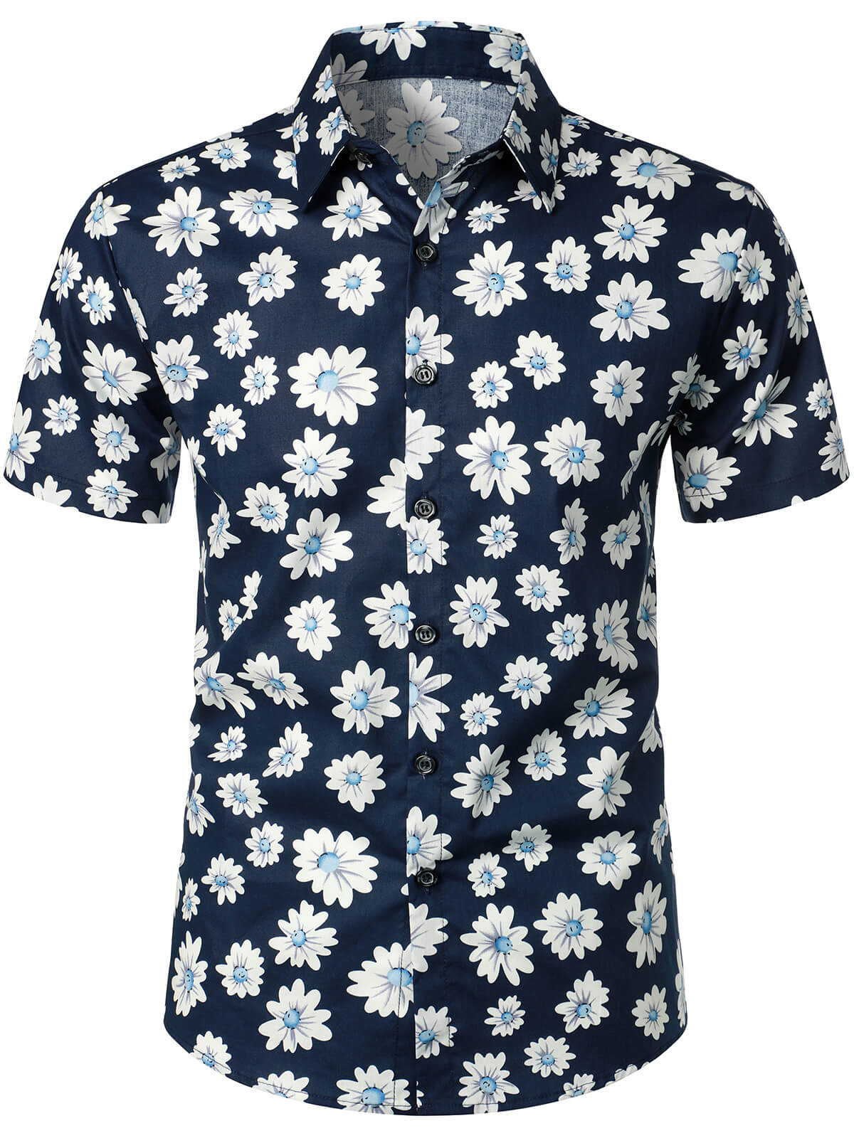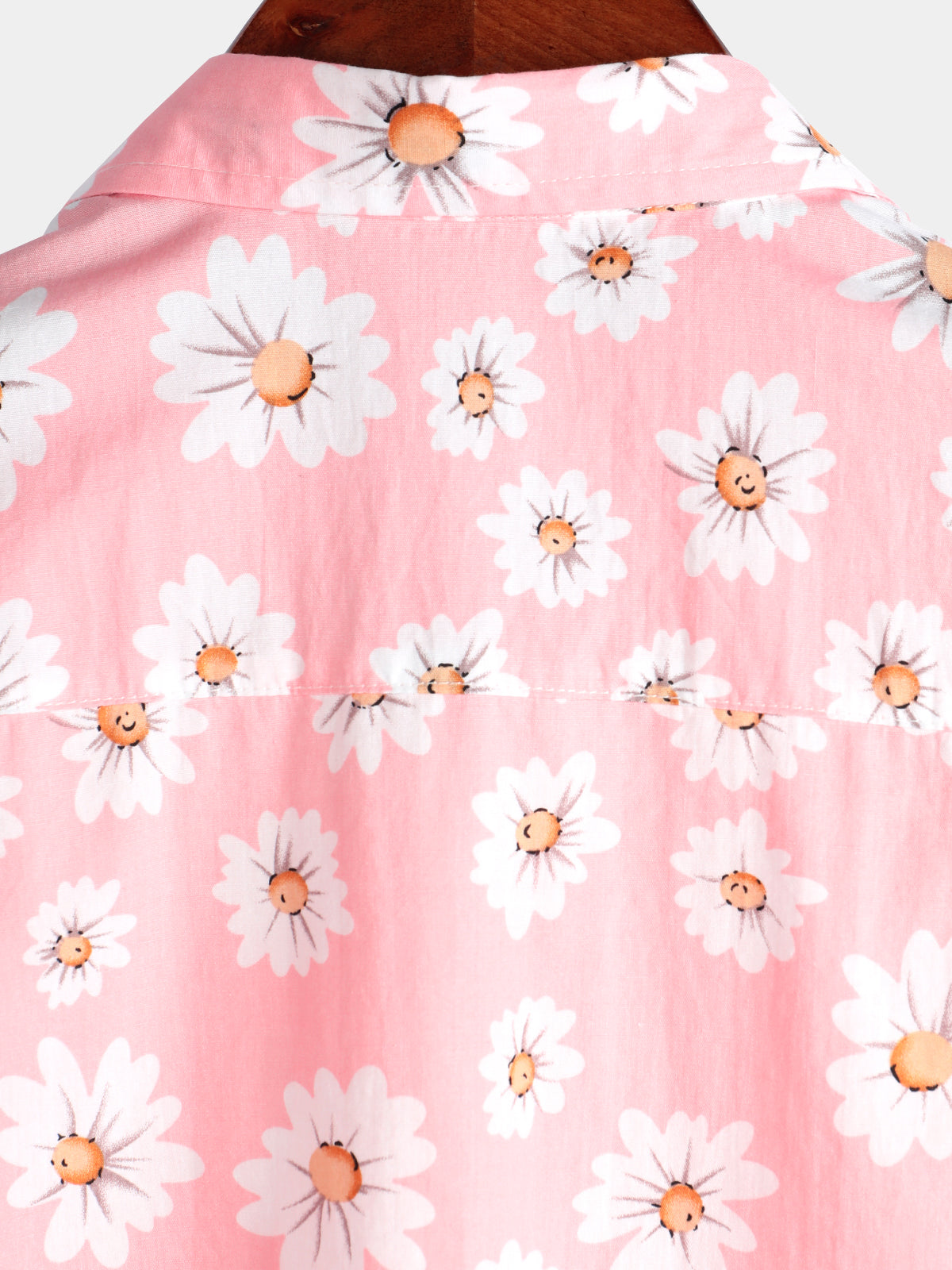Men's Floral Daisy Print Tropical Hawaiian Cotton Flower Shirt