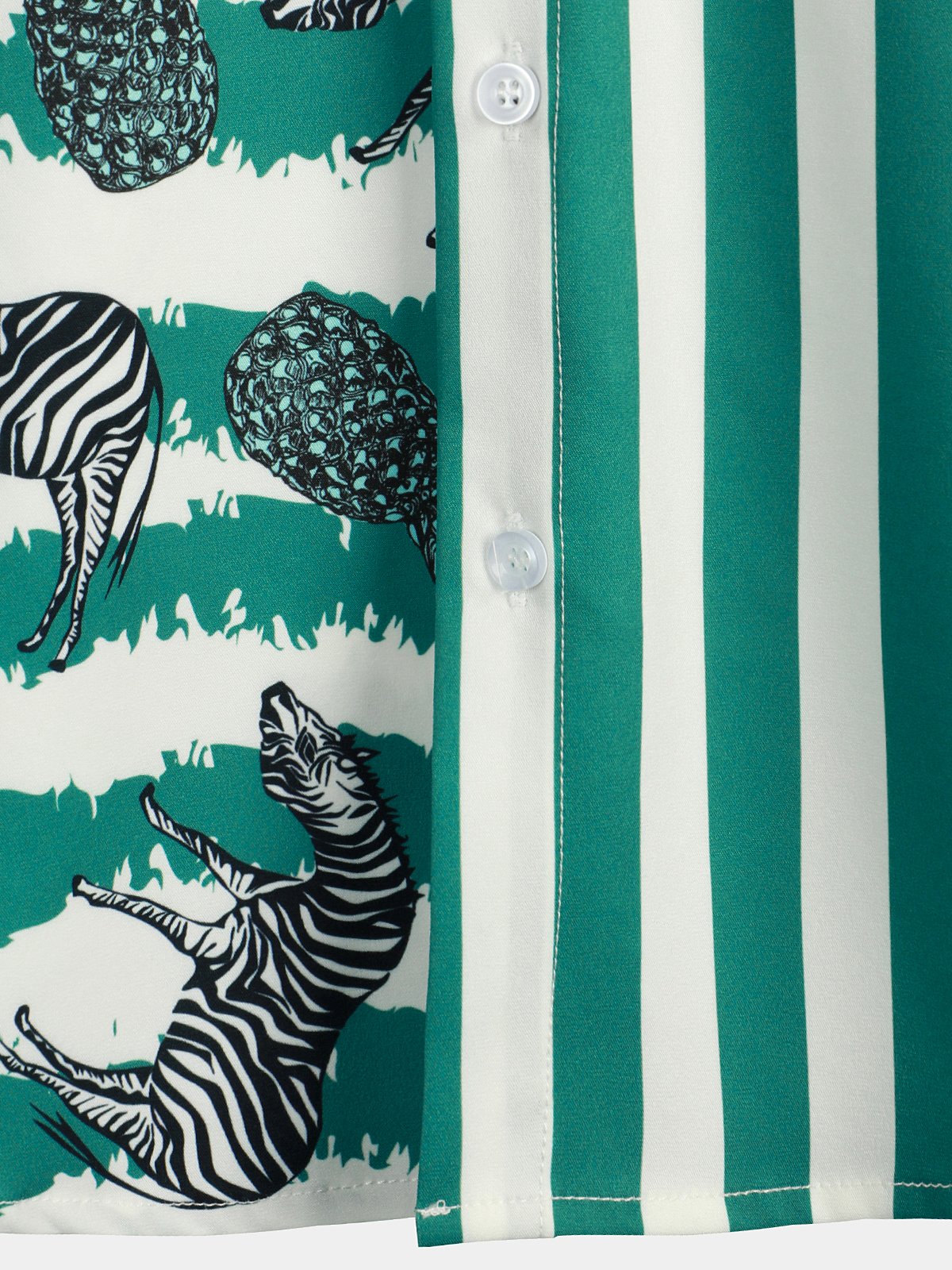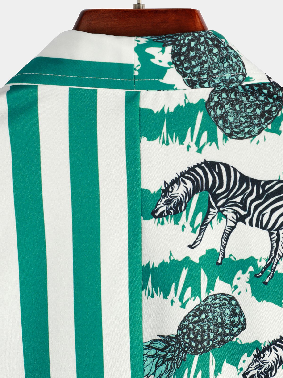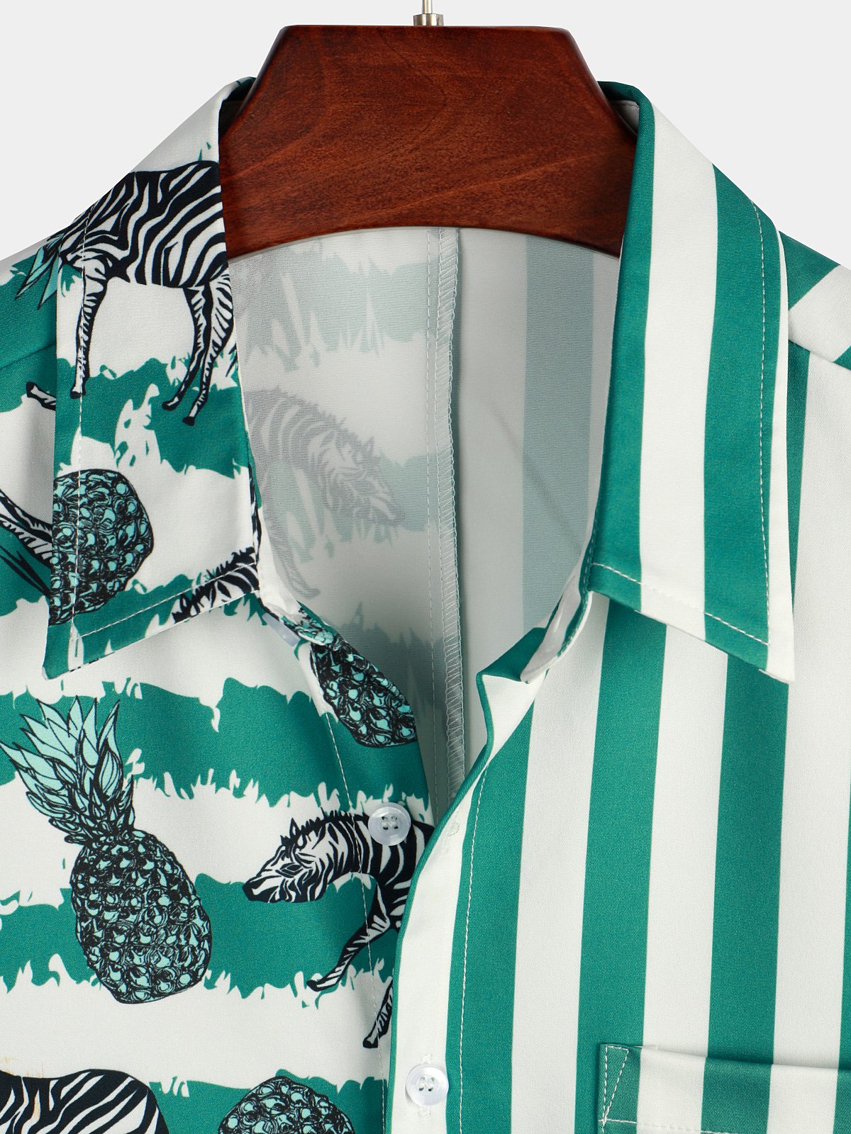 Men's Short Sleeve Striped Pocket Hawaiian Shirt