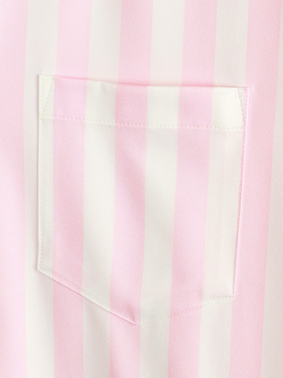 Men's Pink Short Sleeve Striped Pocket Hawaiian Shirt