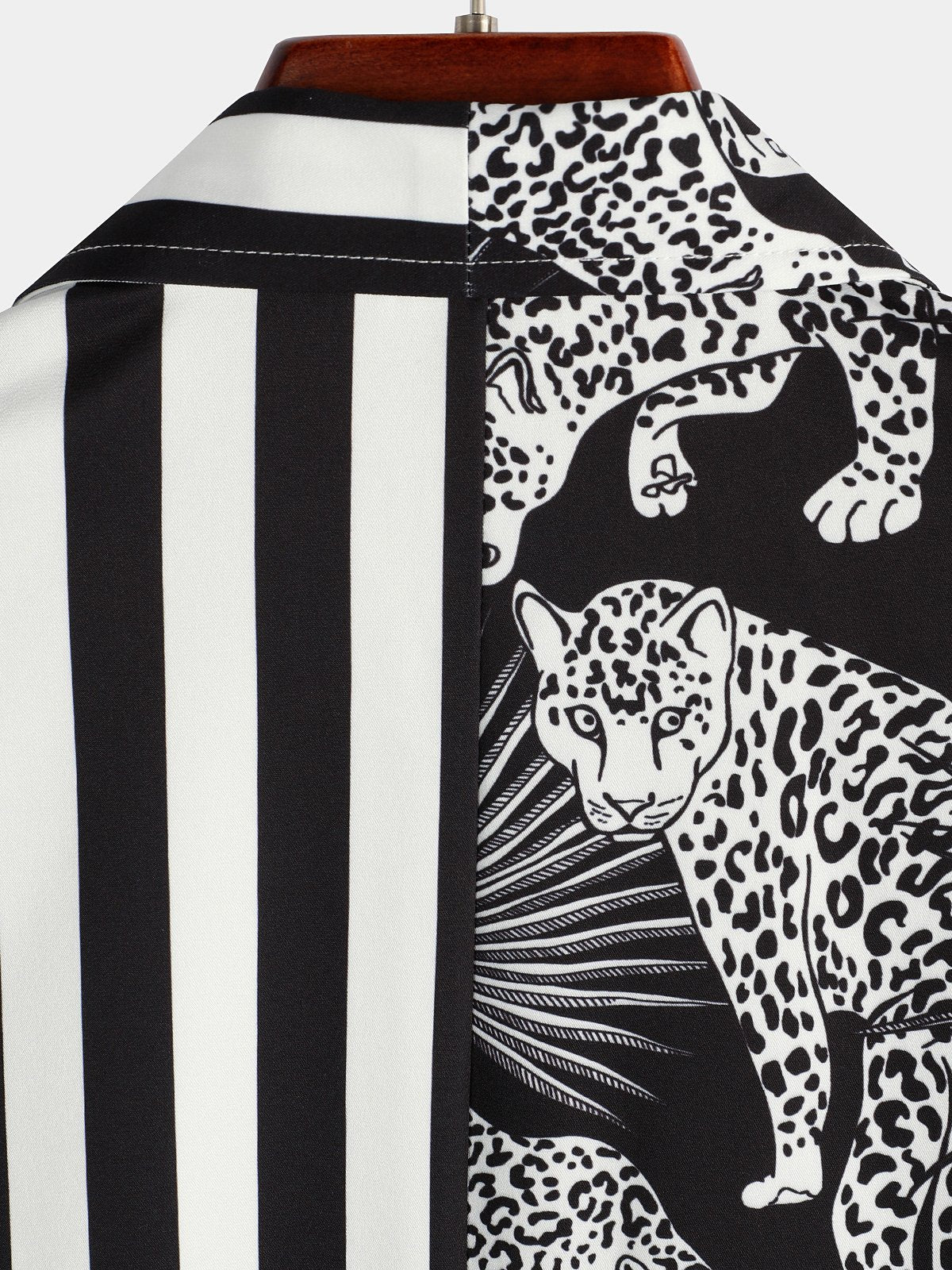 Men's Short Sleeve Striped Pocket Hawaiian Shirt
