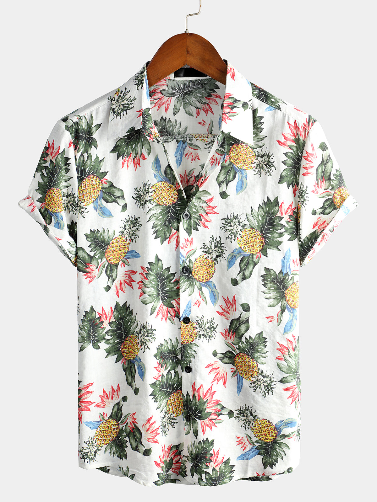 Men's Hawaii Pineapple Print Short Sleeve Cotton Shirt