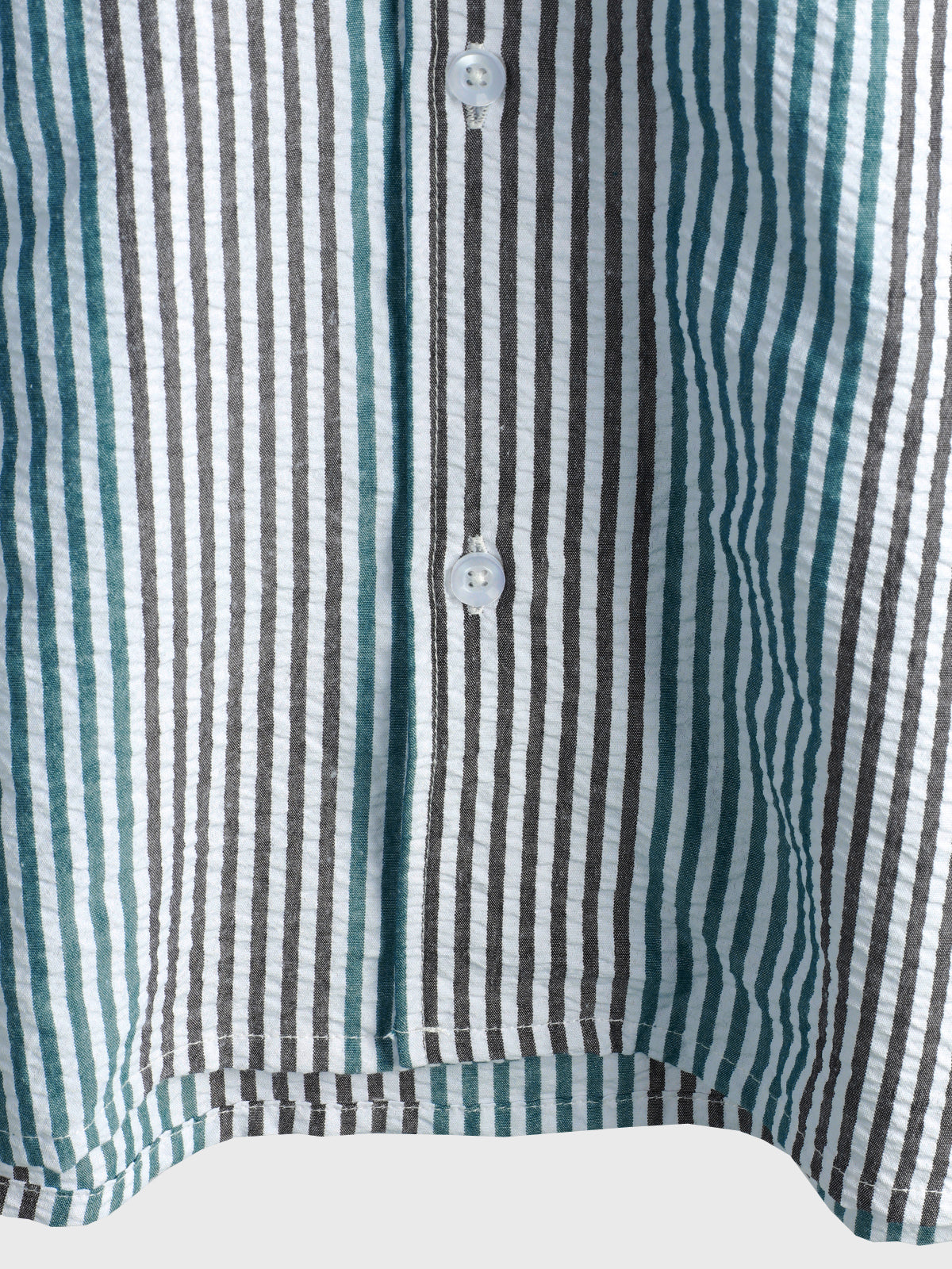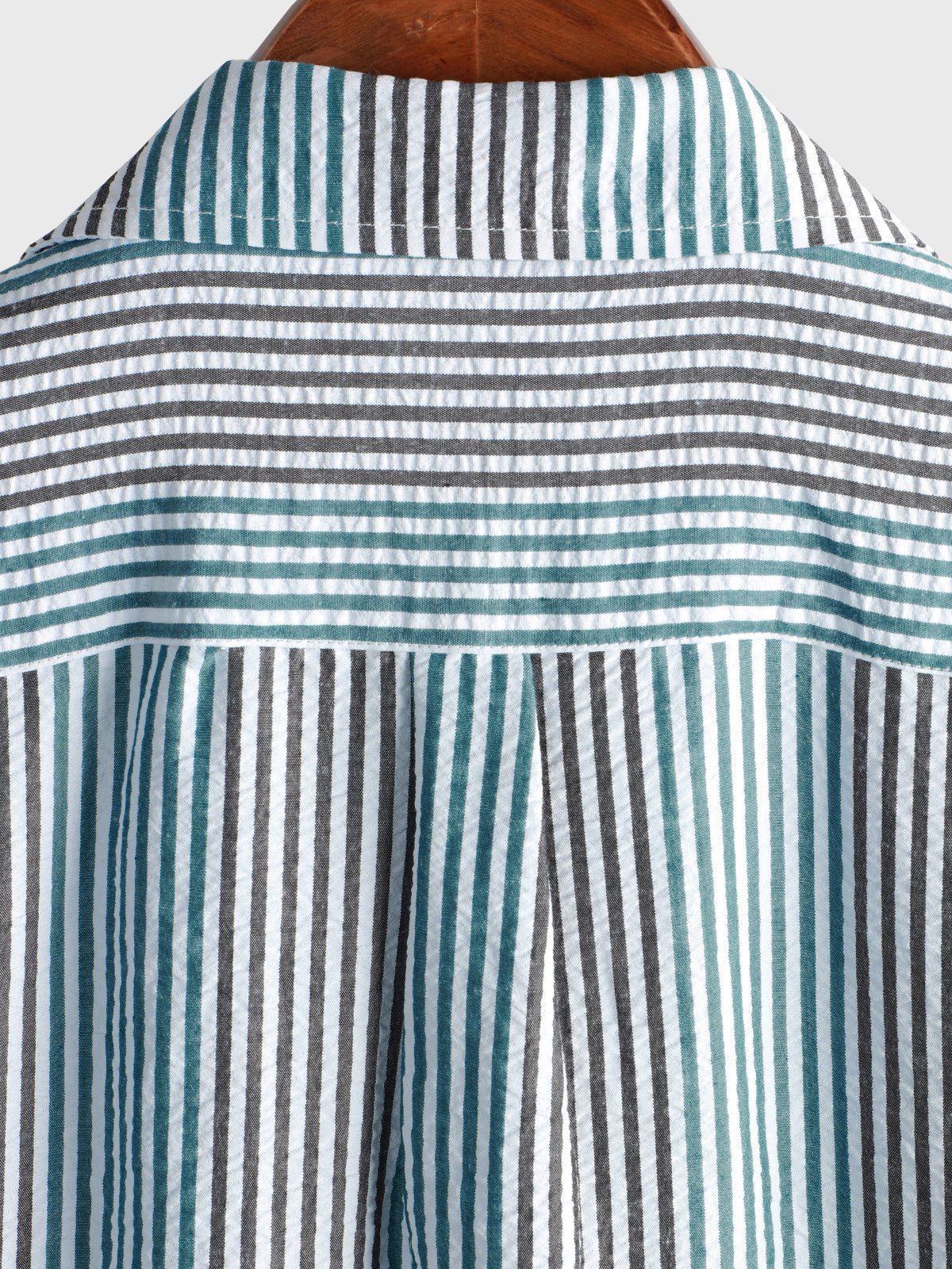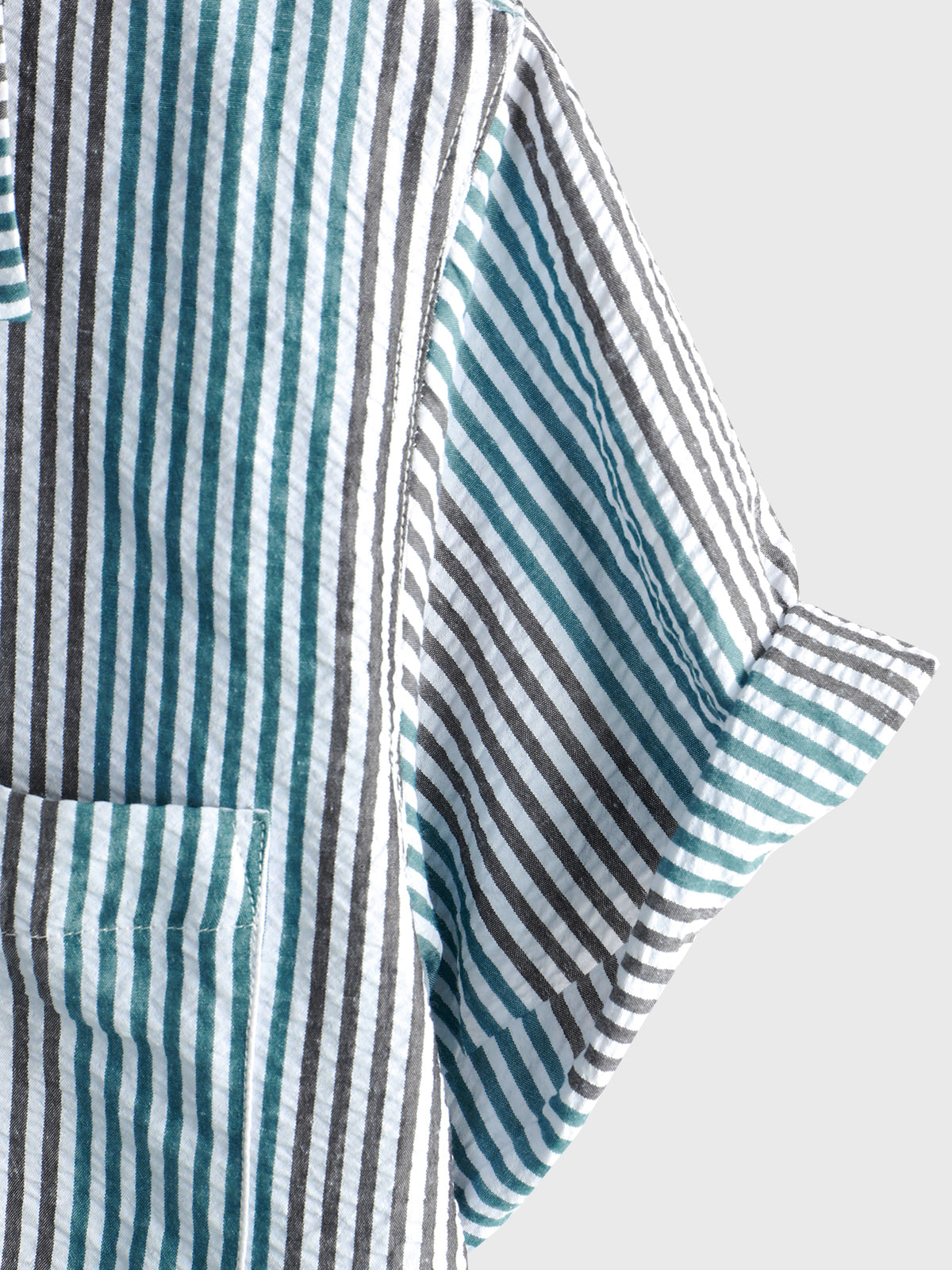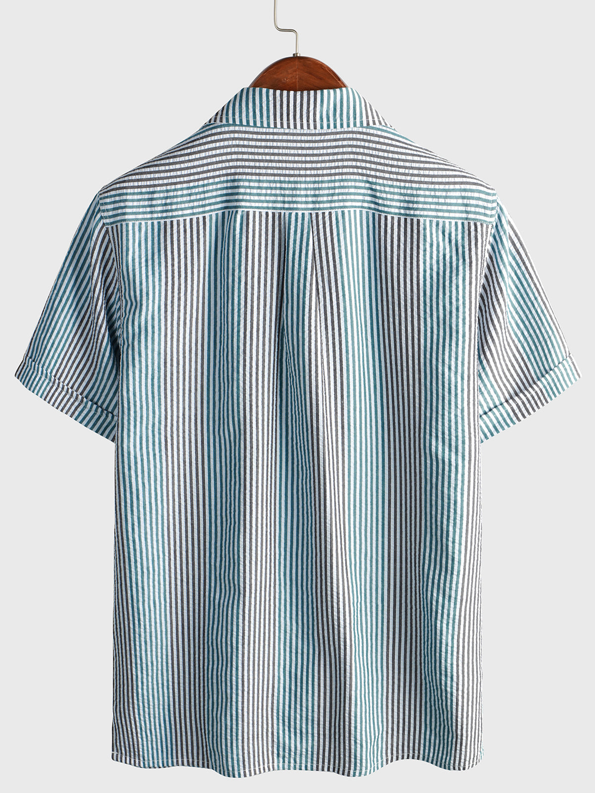 Men's Casual Colorful Striped Pocket Short Sleeve Summer Beach Shirt