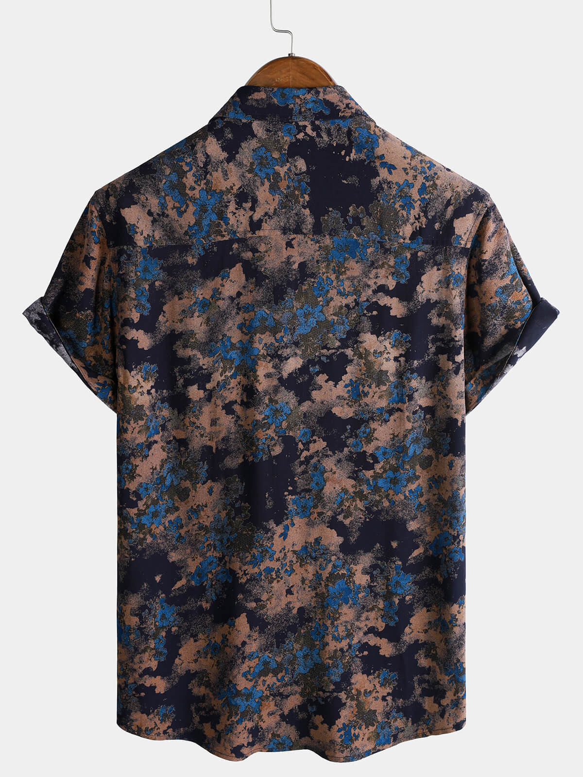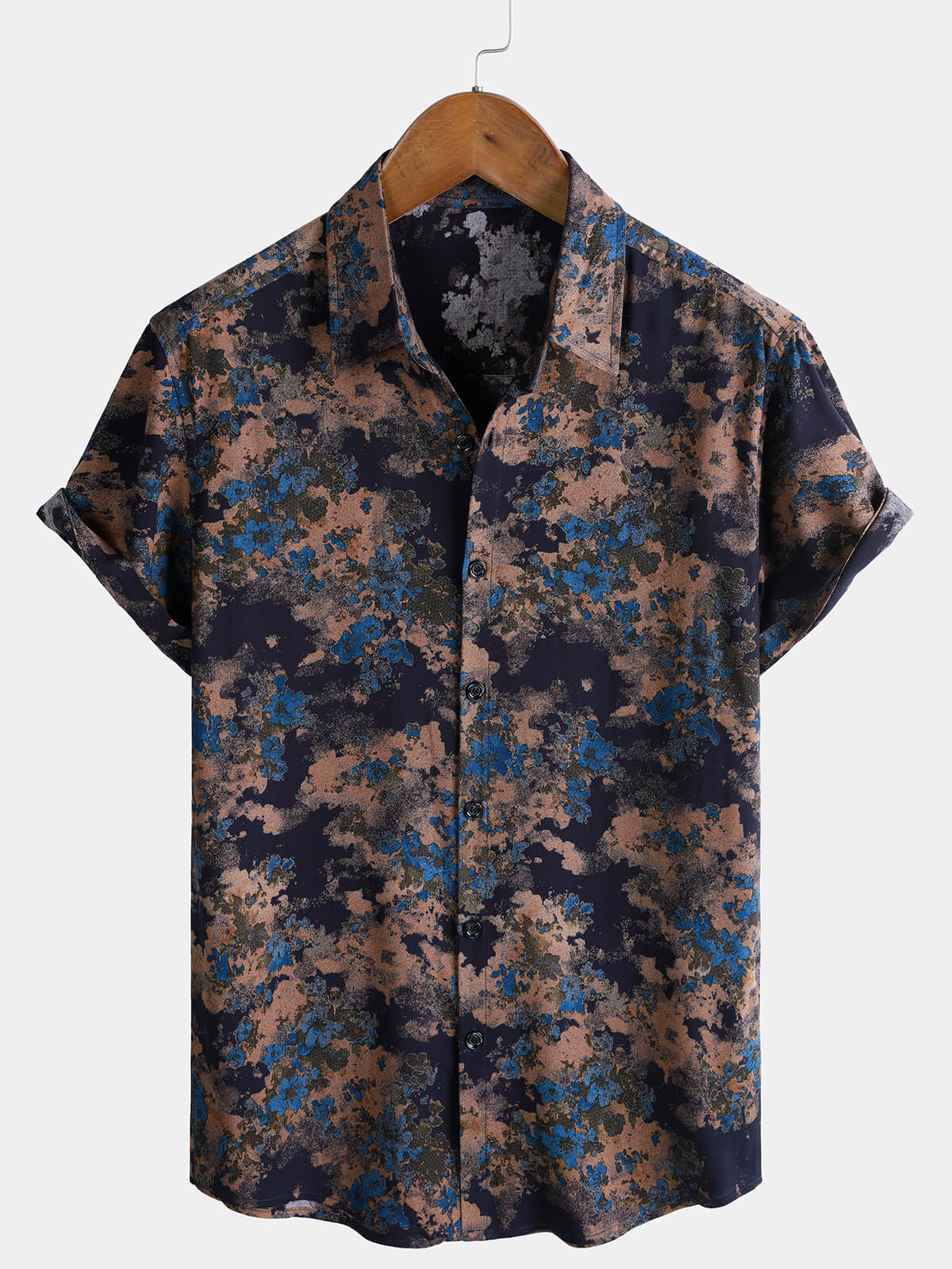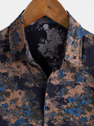 Men's Rayon Navy Blue Abstract Floral Print Casual Short Sleeve Shirt