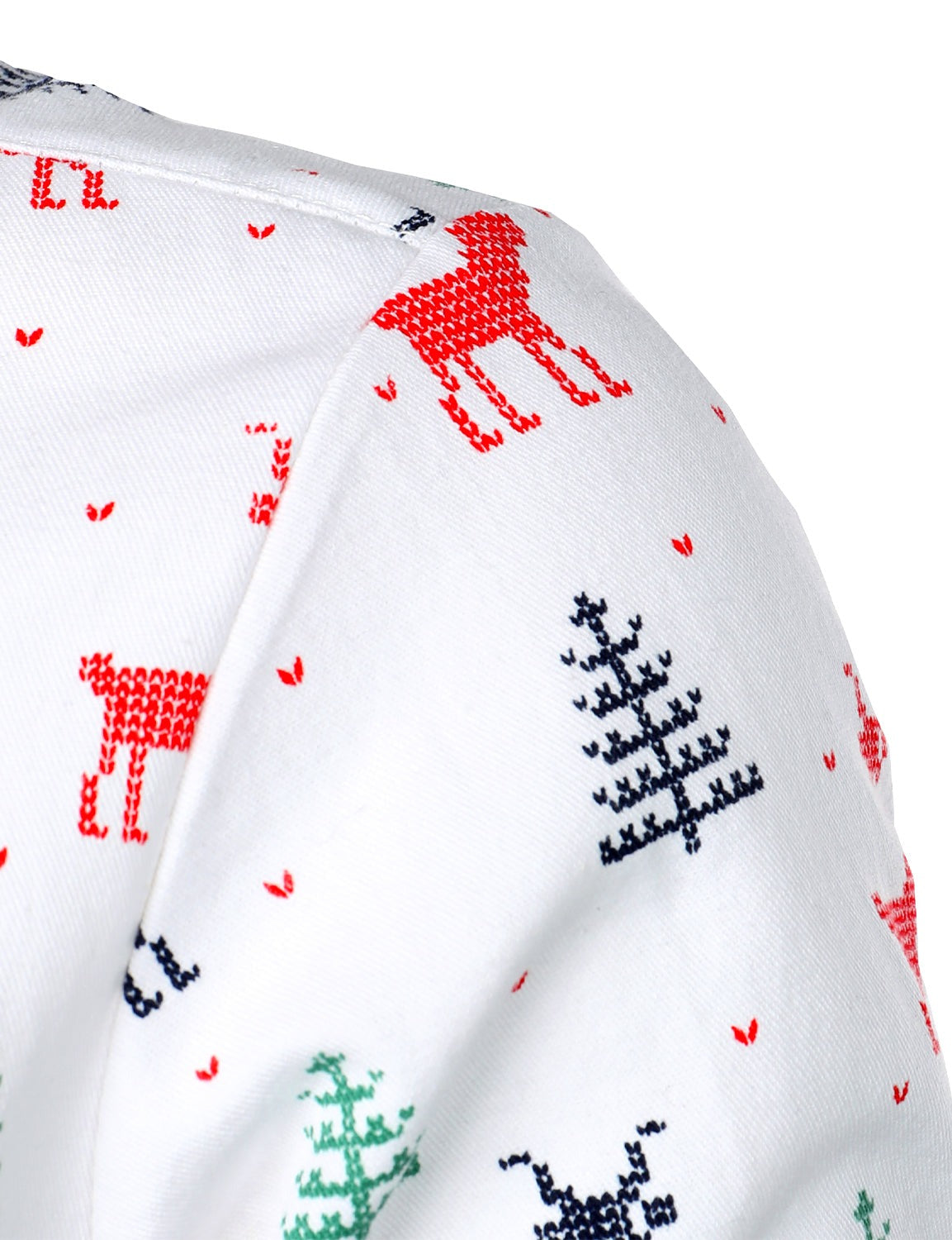 Men's Christmas Tree Elk Print Breathable Red Long Sleeve Shirt