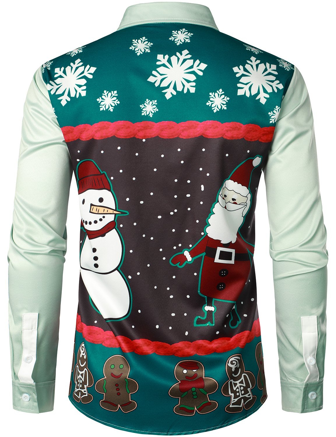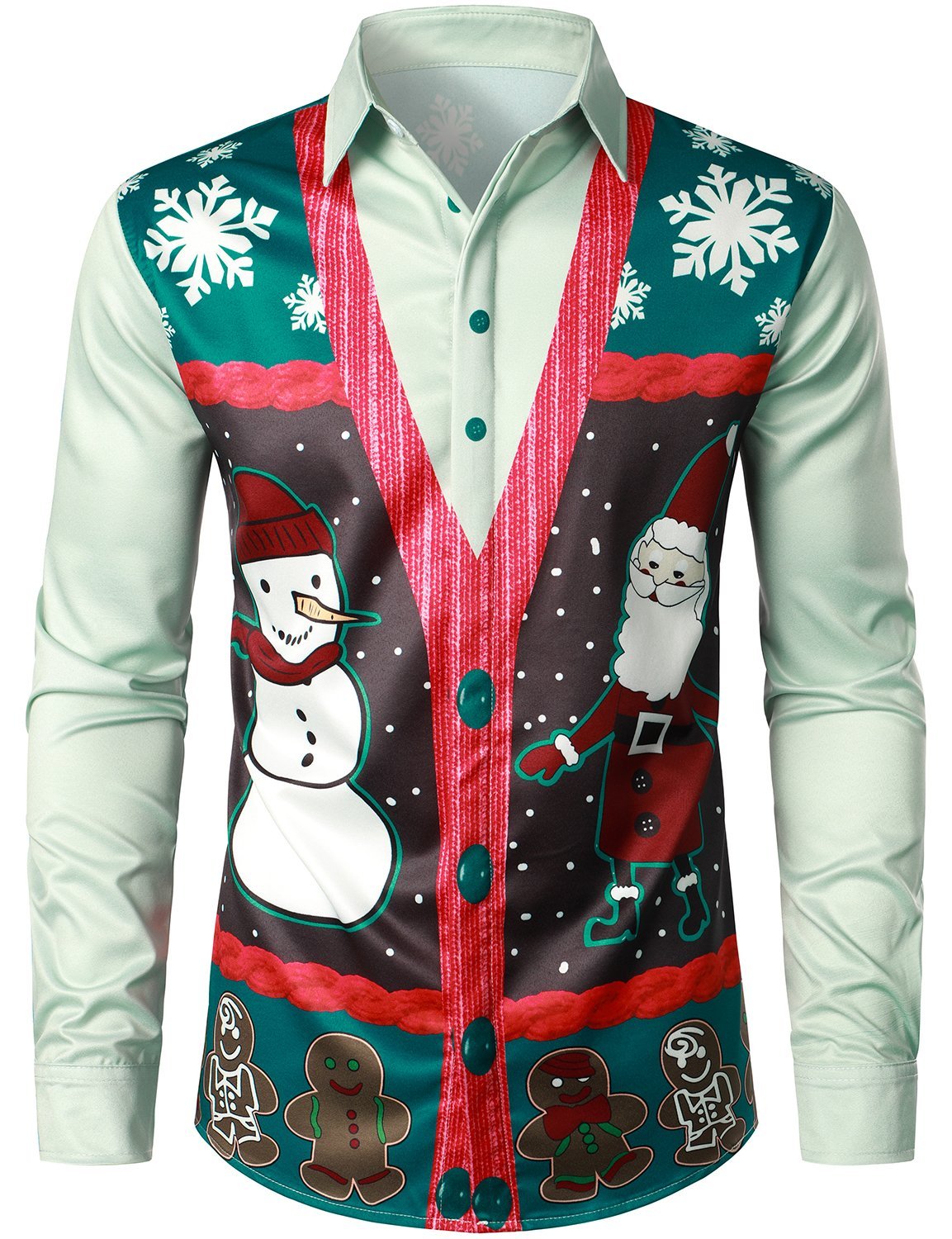 Men's Christmas Santa Claus Snowman Print Regular Fit Long Sleeve Shirt