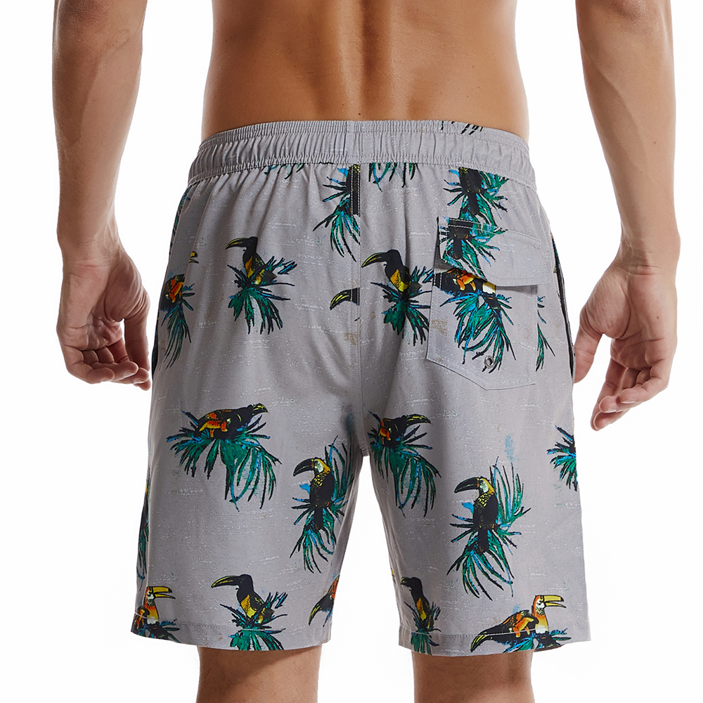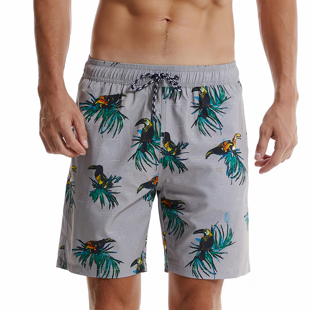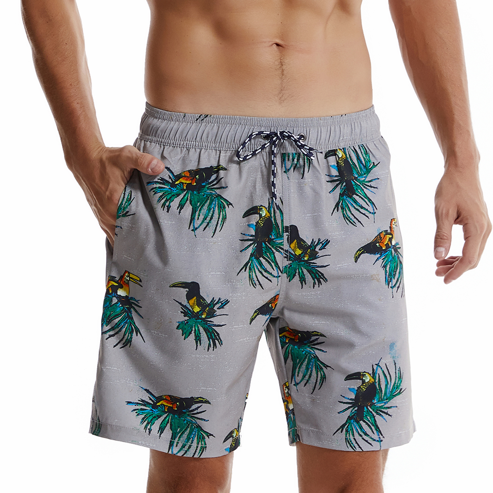 Men's Parrot Print Grey Quick Dry Beach Trunks Swim Trunks